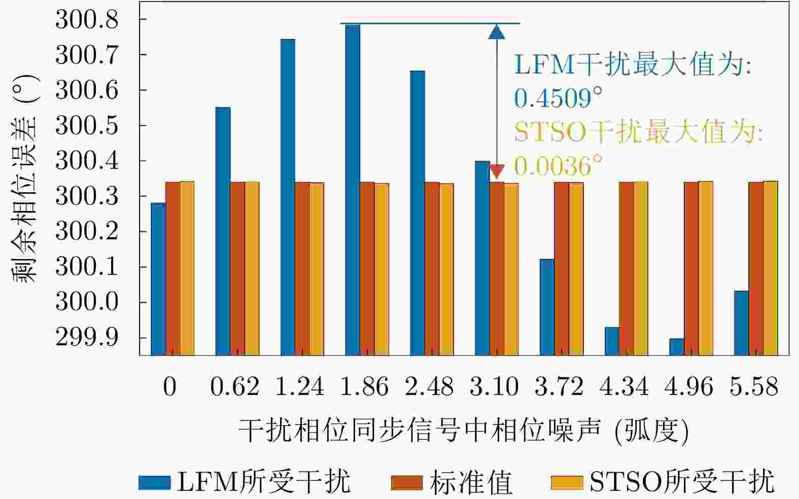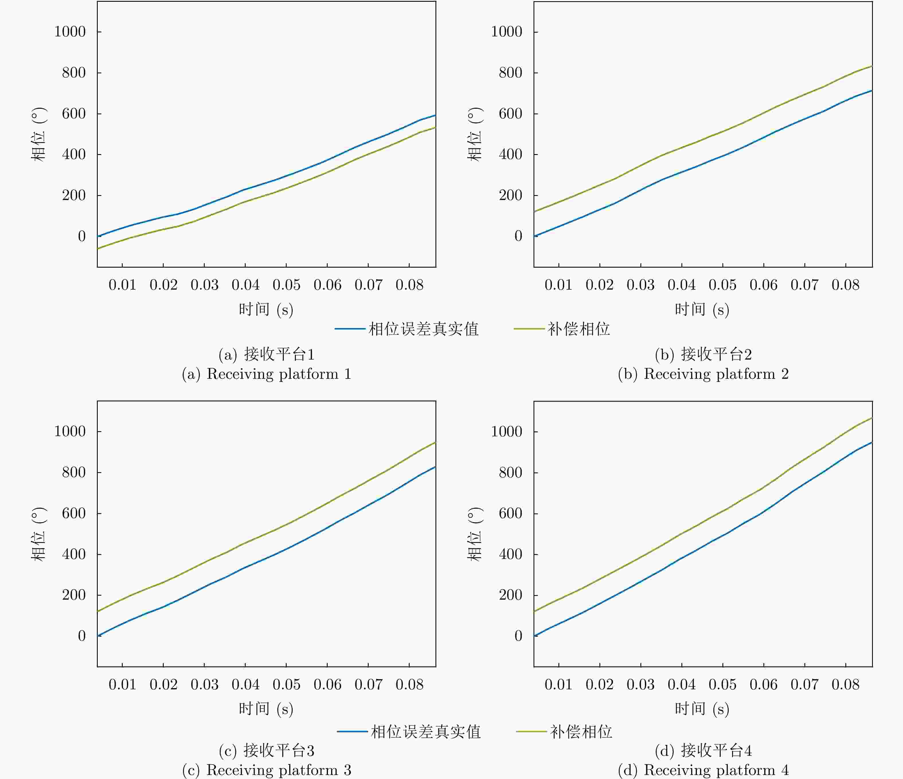 参数 数值 相位同步信号带宽 800 MHz 相位同步信号脉冲宽度 10 μs 发射平台频率偏移 1 Hz 接收平台频率偏移 2 Hz 雷达载频 9.7 GHz 同步频率 525 Hz 收发平台间距 2 km 相位同步信号信噪比 60 dB -
