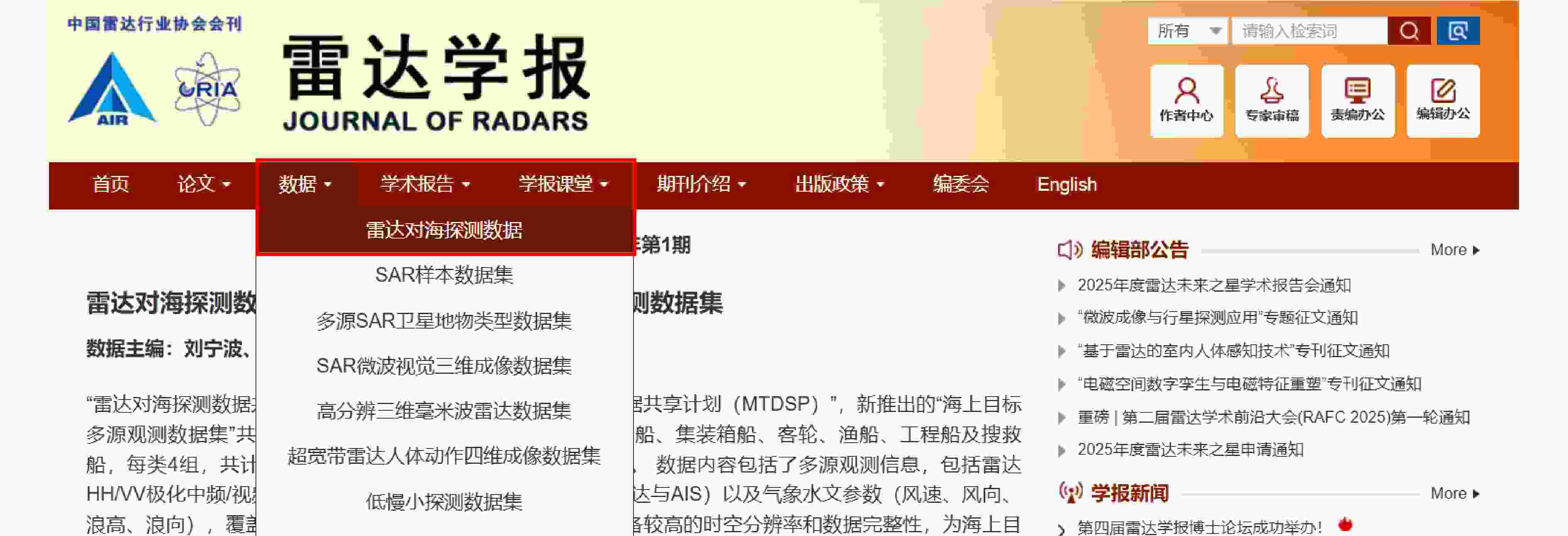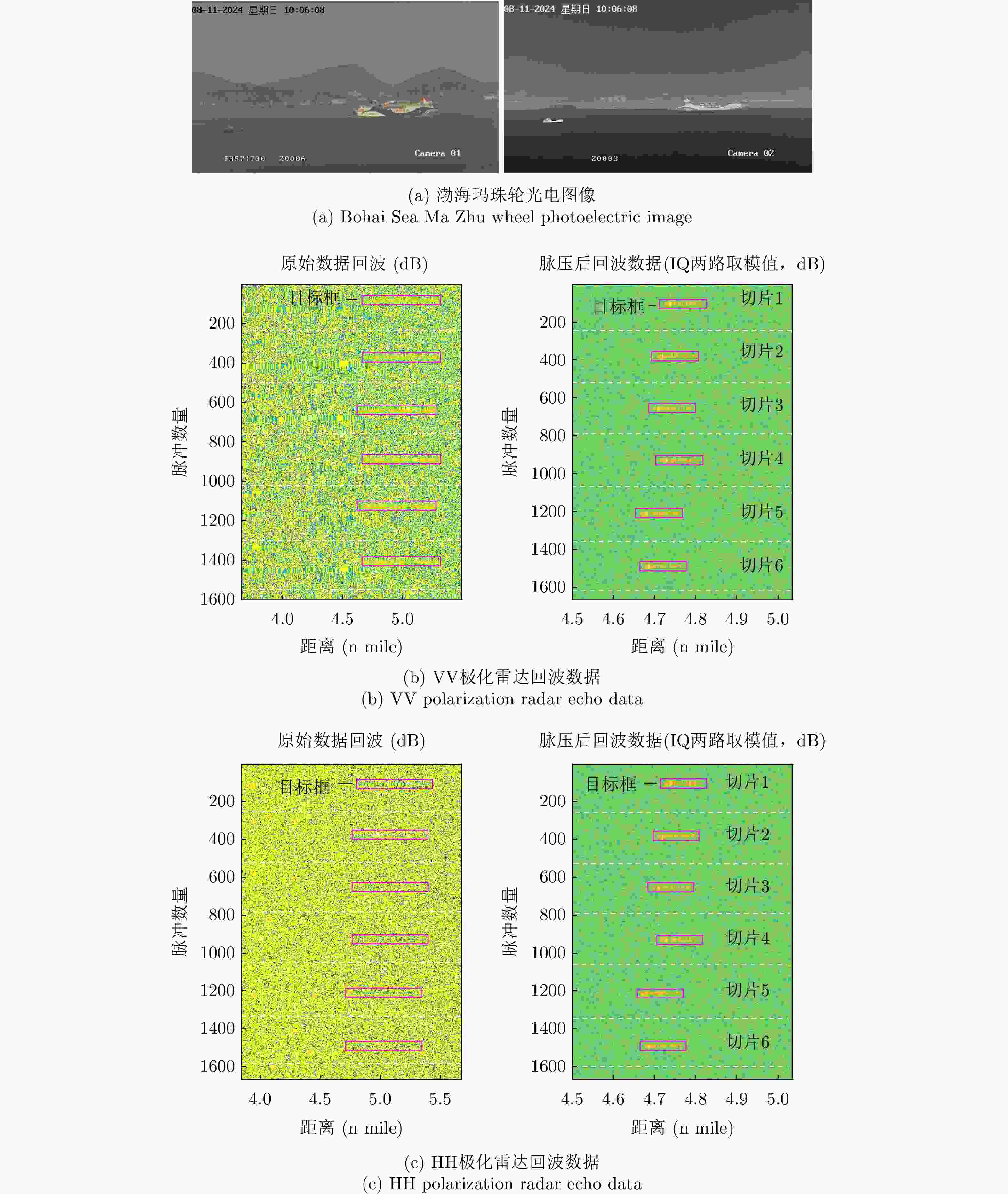 摘要: 海上目标检测识别技术发展需要大量高质量的海上目标多传感器实测数据。针对这一需求,“雷达对海探测数据共享计划(SDRDSP)”升级为“海上目标数据共享计划(MTDSP)”,利用HH极化雷达、VV极化雷达、光电设备、AIS设备开展海上船只目标多源观测试验,获取雷达中频/视频回波切片数据、可见光与红外图像数据、AIS静态与动态报文数据、气象水文数据,覆盖典型海况和多种船型,构建涵盖多种类型海上目标的多源观测数据集,完成同一目标多种模态数据的匹配和标注,并实现目标数据的自动入库管理、条件检索和批量导出,为海上目标特性数据自动获取、长期积累与使用奠定基础。在此基础上,基于实测数据对比分析了不同海况、姿态、极化条件下同一船只目标的时域/频域特征、不同类型船只目标的时域/频域特征,形成了目标特征变化的统计结论。Abstract: Maritime target detection and identification technology are developed using large-scale, high-quality multi-sensor measurement data. Therefore, the Sea Detection Radar Data Sharing Program (SDRDSP) was upgraded to the Maritime Target Data Sharing Program (MTDSP), integrating multiple observation modalities, such as HH-polarized radar, VV-polarized radar, electro-optical devices, and Automatic Identification System (AIS) equipment to conduct multisource observation experiments on maritime vessel targets. The program collects various data types, including radar intermediate frequency/video echo slice data, visible and infrared imagery, AIS static and dynamic messages, and meteorological and hydrological data, covering representative sea conditions and multiple vessel types. A comprehensive multisource observation dataset was constructed, enabling the matching and annotation of multimodal data for the same target. Moreover, an automated data management system was implemented to support data storage, conditional retrieval, and batch export, providing a solid foundation for the automated acquisition, long-term accumulation, and efficient use of maritime target characteristic data. Based on this system and measured data, the time/frequency domain features of the same and different vessel targets under different sea states, attitudes, polarization conditions are compared and analyzed, and the statistical conclusion of the change in target features is obtained.