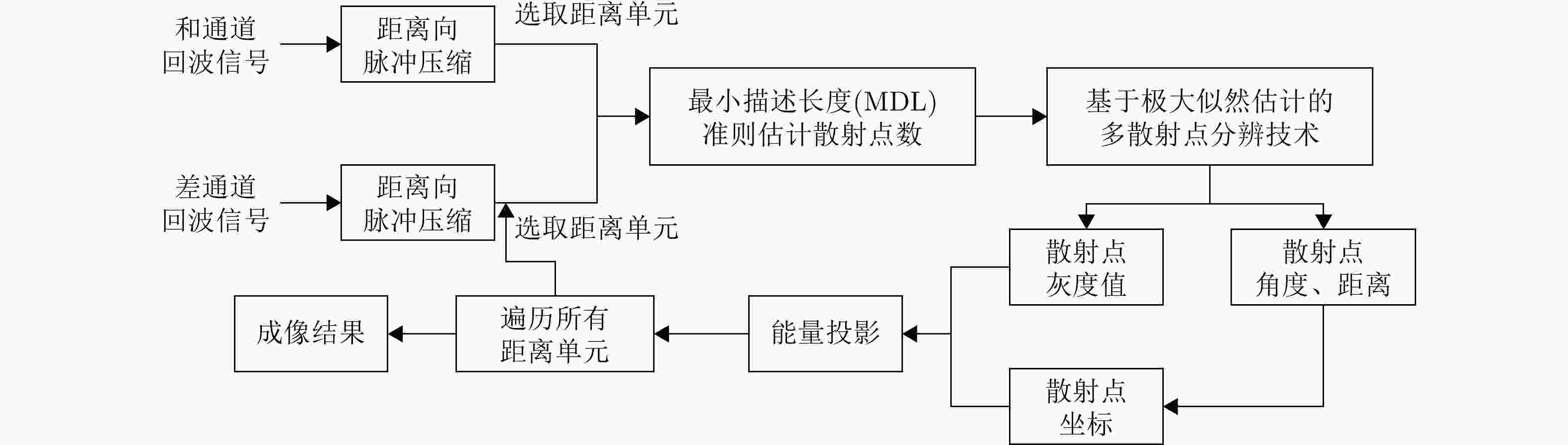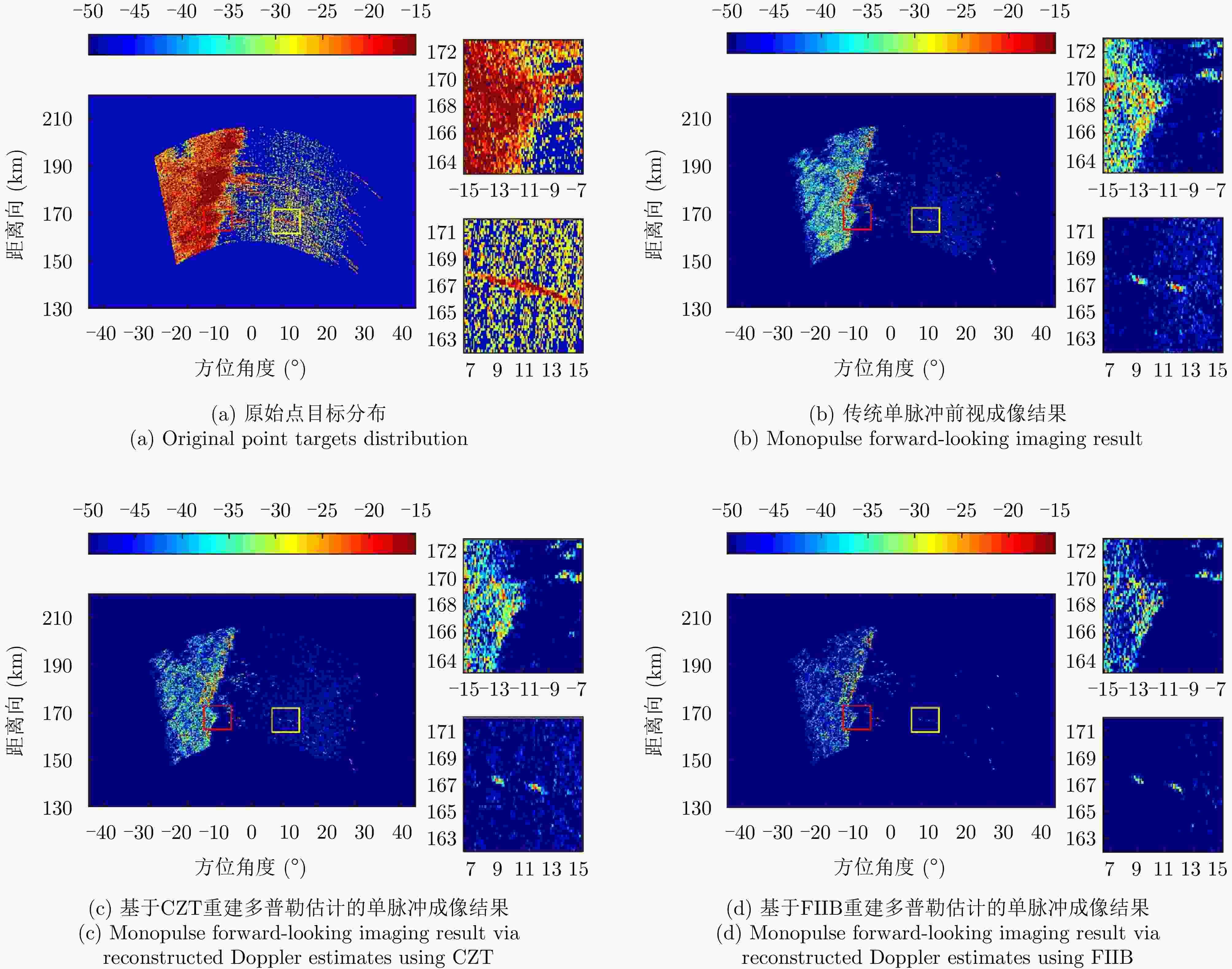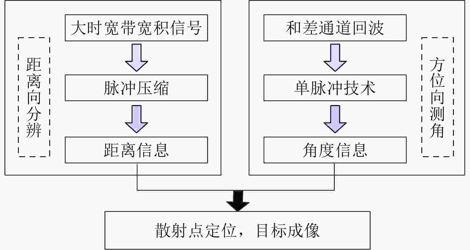 方法名称 优点 局限性 传统单脉冲成像 角闪烁抑制成像 计算复杂度低,实时性高 分辨能力差,易筛除组成关键结构的散射点 空域预分辨成像 计算复杂度低,实时性高,成像效果较好 需工作于扫描模式,且需要较窄的波束 距离域高分辨单脉冲成像 成像效果优于传统单脉冲成像 计算量大且未利用相位信息,成像效果改善有限 频域预分辨