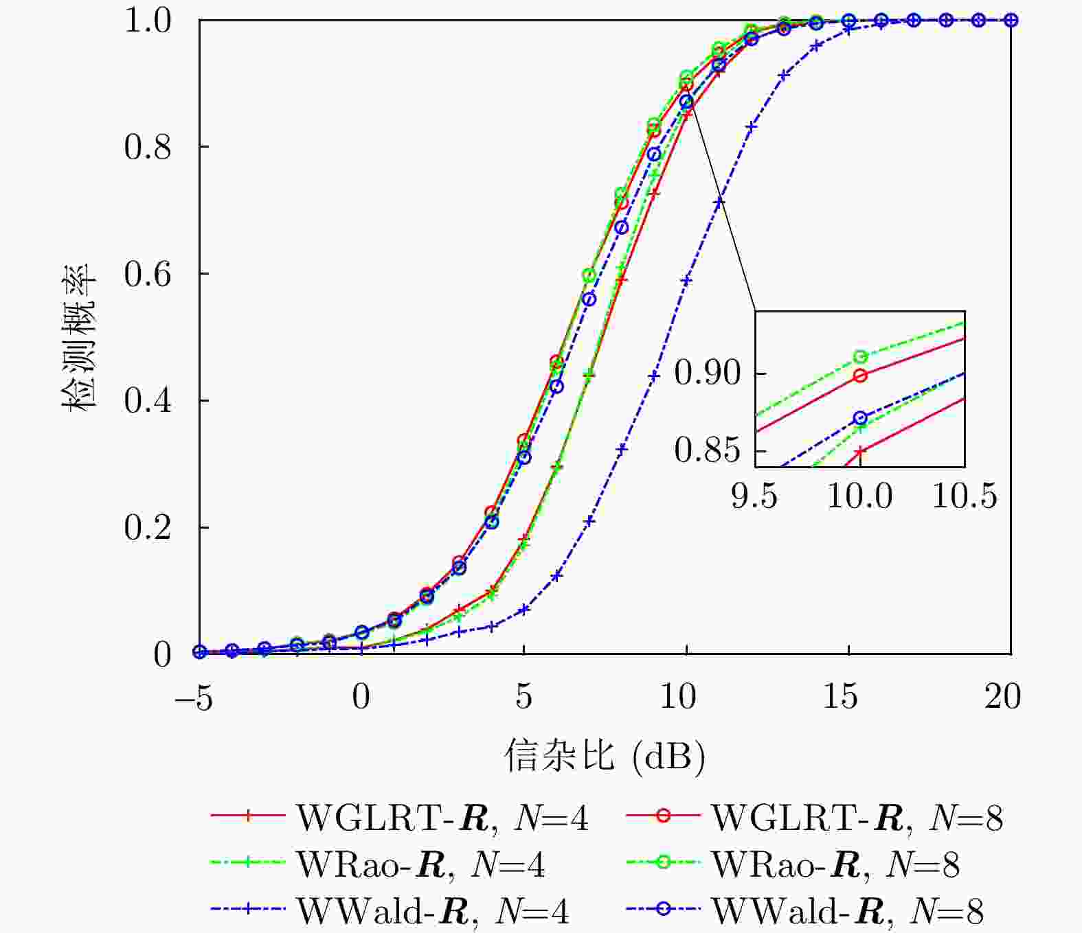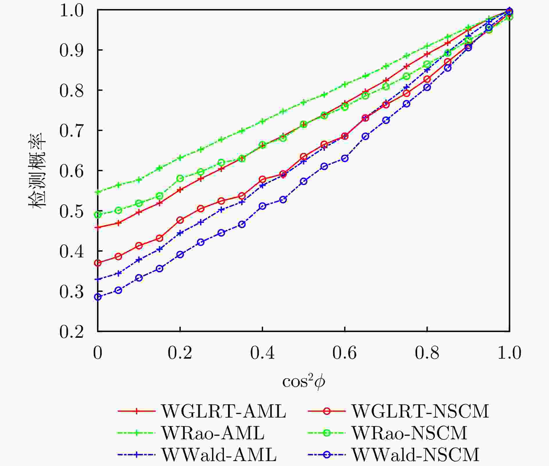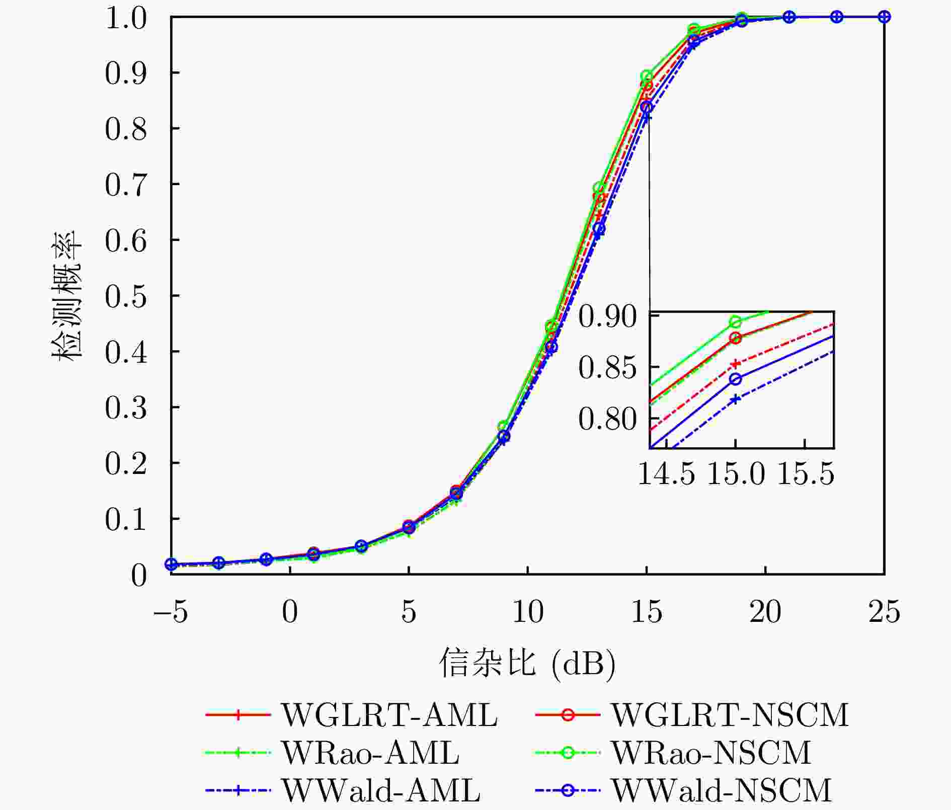 摘要: 该文研究了复合高斯杂波中距离扩展目标的自适应检测问题,其中杂波纹理分量服从加权广义逆高斯(WGIG)分布。该文基于两步Rao, Wald, Durbin和Gradient检验分别设计加权广义逆高斯杂波下的自适应检测器。针对未知协方差矩阵,分别采用近似最大似然(AML)和归一化采样协方差矩阵(NSCM)两种方法进行估计。由于纹理分量的最大后验(MAP)估计难以解析求解,因此在Rao, Wald和Durbin检验的检测器设计中,采用纹理分量的倒数期望的MAP进行替代;而在Gradient检验的检测器设计中,则基于后验概率密度函数推导检验统计量。理论分析表明,基于Rao, Durbin和Gradient检验所得到的检测器具有一致性。在性能评估方面,通过仿真数据和实测数据,分别对无信号失配和存在信号失配两种情况下的检测性能进行了系统评估。实验结果表明:(1)该文提出的基于AML的检测器均具有恒虚警率(CFAR)特性;(2)在无信号失配情况下,基于Rao准则和Wald准则的检测器在两种实测数据集上分别表现出最优的检测性能,并且相较于两步GLRT检测器的检测性能分别提升0.1~0.5 dB和0.7~0.8 dB;(3)在信号失配情况下,基于Rao准则与AML估计的检测器具有最佳的稳健性,而基于Wald准则的检测器对失配信号表现出最强的抑制能力。Abstract: In this paper, we investigate the adaptive detection of range-distributed targets in compound-Gaussian clutter, where the texture component follows a Weighted Generalized Inverse Gaussian (WGIG) distribution. We propose adaptive detectors for WGIG-distributed clutter based on two-step Rao, Wald, Durbin, and Gradient tests. The unknown covariance matrix is estimated using Approximate Maximum Likelihood (AML) and the Normalized Sample Covariance Matrix (NSCM). To address the analytical intractability of Maximum A Posteriori (MAP) estimation for the texture component, we adopt an alternative approach: The MAP estimator of the reciprocal expectation of the texture component, which is used in designing adaptive detectors based on the Rao, Wald, and Durbin tests. For the Gradient test-based detector, the test statistic is derived directly from the posterior probability density function. Our theoretical analysis confirms the consistency of the detectors derived from the Rao, Durbin, and Gradient tests. Extensive evaluations on both simulated and real data yield three key findings: (1) The proposed AML-based detectors maintain the constant false alarm rate property; (2) Under matched signal conditions, the detectors based on the Rao and Wald tests achieve the best performance on both the IPIX radar dataset and the Journal of Radar’s maritime surveillance dataset—specifically, they outperform the two-step generalized likelihood ratio test-based detector, requiring 0.1~0.5 dB and 0.7~0.8 dB lower Signal-to-Clutter Ratio (SCR) to achieve the same detection probability, respectively; and (3) Under mismatched signal conditions, the Rao test-based detector with AML estimation exhibits superior robustness, while the Wald test-based detector demonstrates the strongest suppression capability against mismatched signals.
