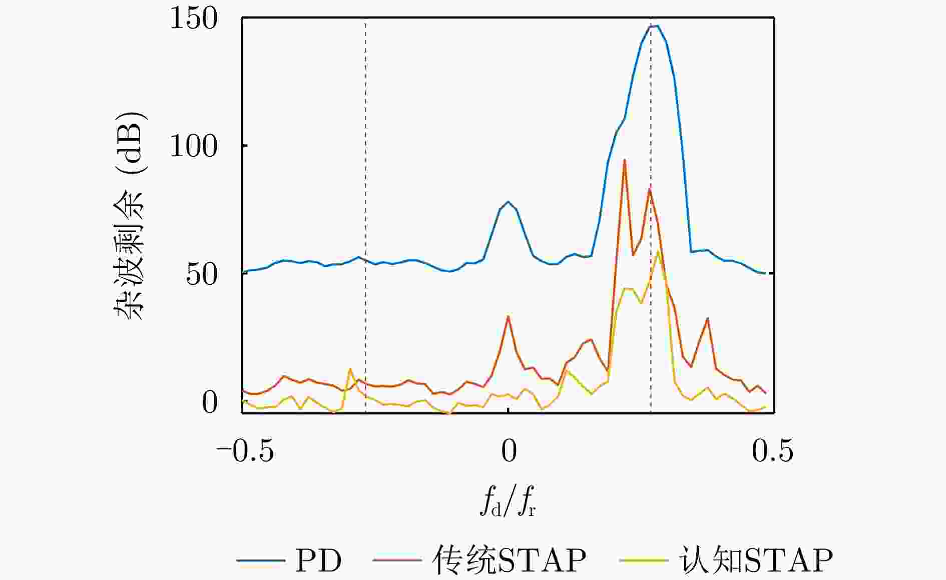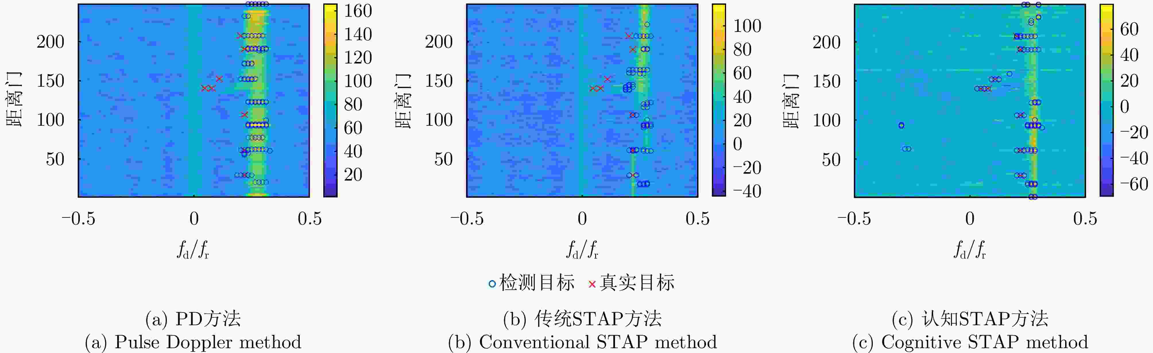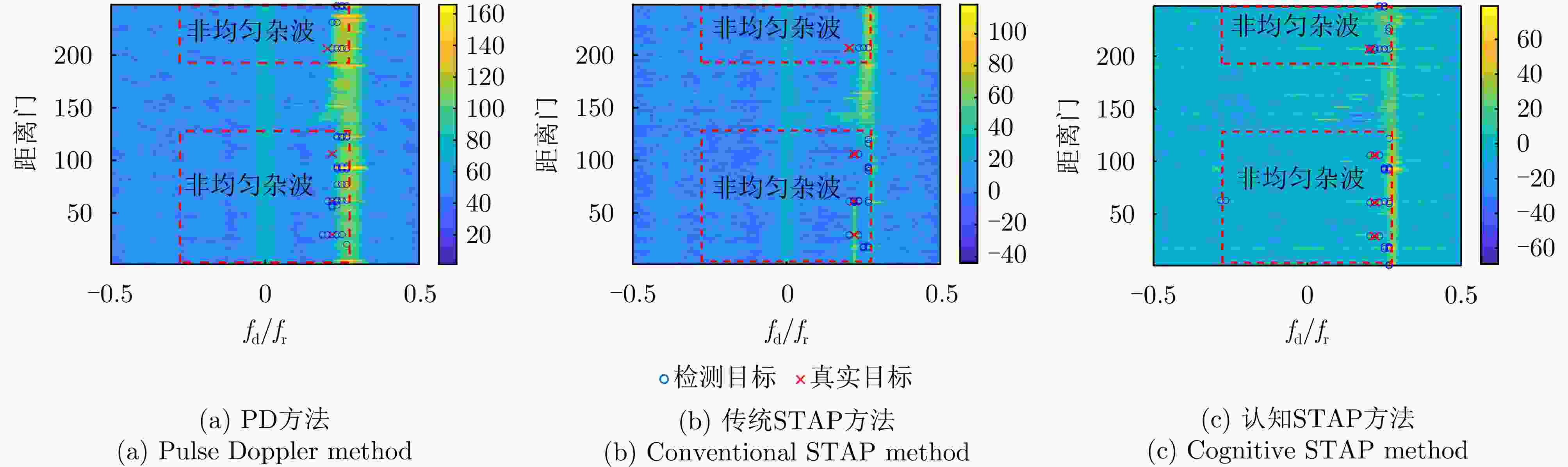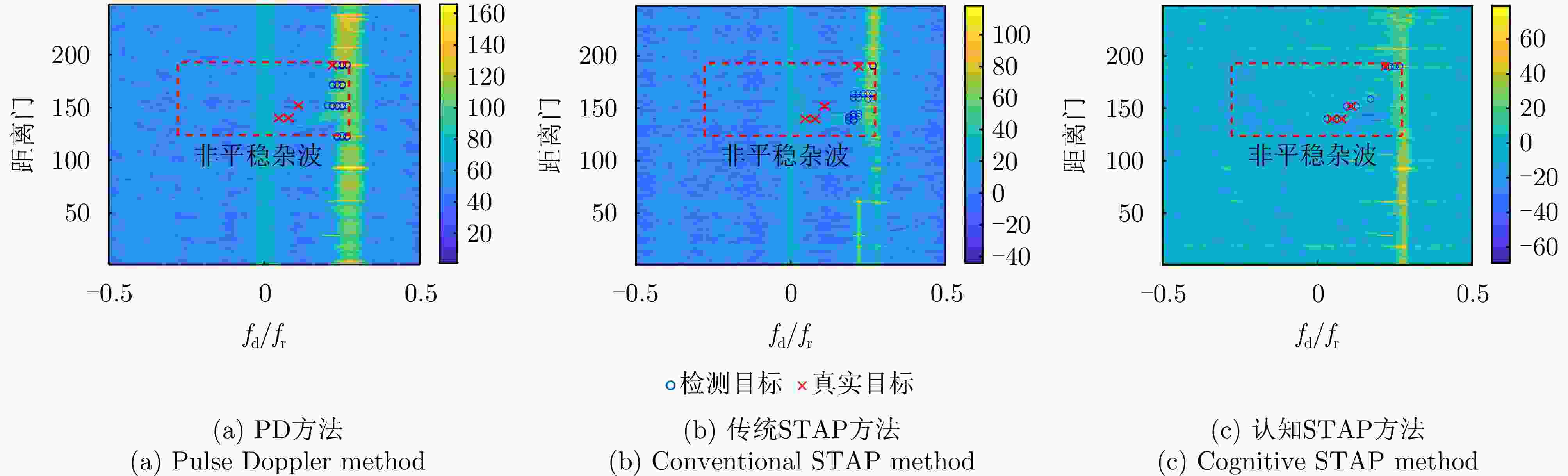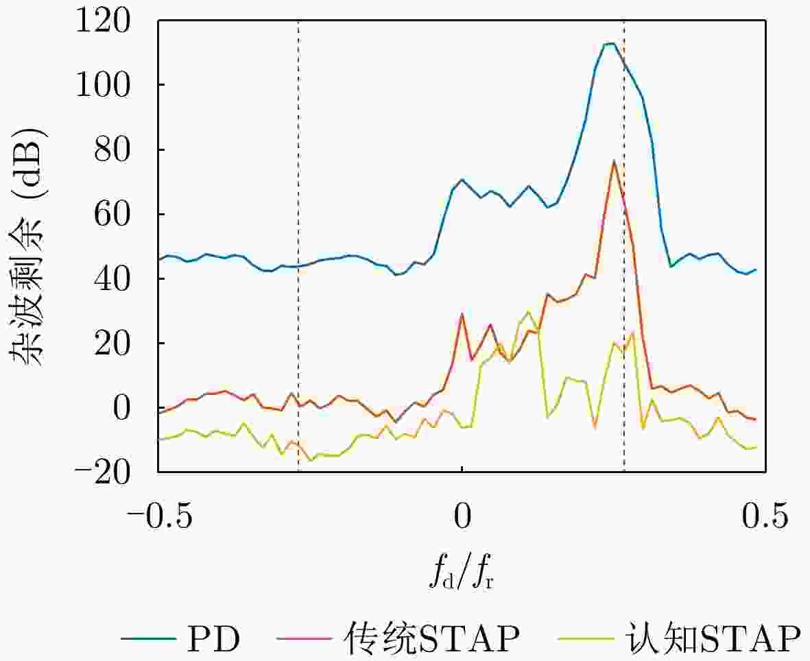 方法 虚警点数 虚警占比 PD方法 67 0.037 传统STAP方法 47 0.026 认知STAP方法 25 0.013 -