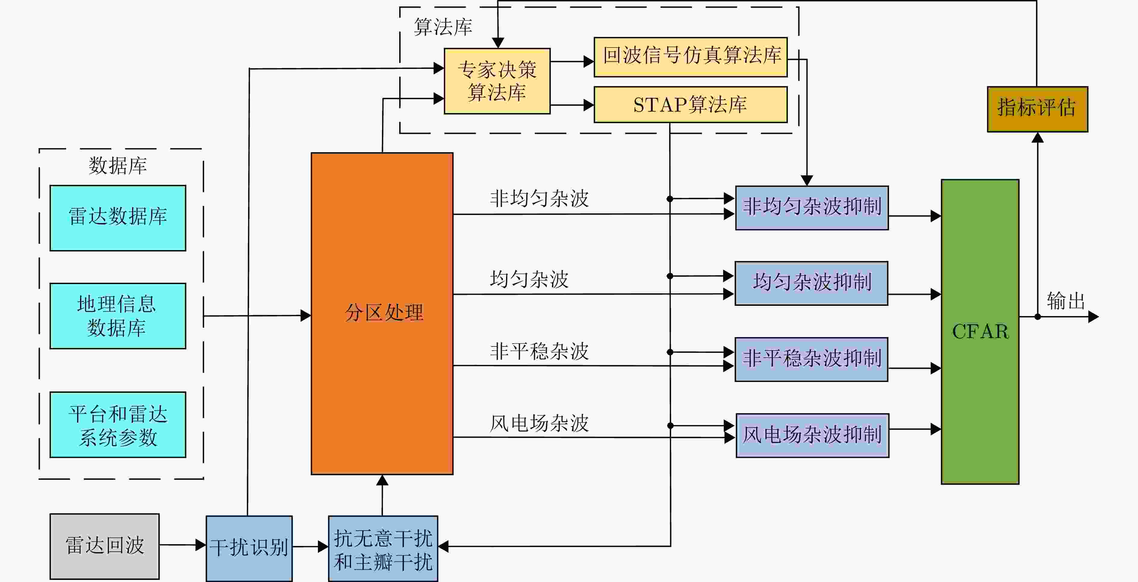 摘要: 中国边境线地貌类型丰富,电磁信号密布,导致机载雷达在实际工作中面临的环境非常复杂。机载雷达在复杂地形环境和复杂电磁环境下探测性能严重下降,无法满足作战需求。认知空时自适应处理是一种有效的技术途径。该文提出了认知空时自适应处理架构,并在该架构基础上分别介绍了数据库、算法库、认知STAP技术和反馈控制等。仿真数据分析表明,相对于传统STAP技术,认知空时自适应处理技术可显著提升机载雷达在复杂环境下的运动目标检测性能。Abstract: China has one of the longest land borders in the world and features a diverse range of terrain types and a dense electromagnetic environment. Therefore, in practical applications, airborne radar faces complex environments. The efficacy of detecting airborne radar is severely deteriorated in regions with complex terrains and electromagnetic environments, limiting the ability to meet military operational requirements. Cognitive Space-Time Adaptive Processing (STAP) is an effective technical approach for addressing this problem. In this study, a cognitive STAP architecture is proposed, and based on this architecture, the database, algorithm library, cognitive STAP technology, and feedback control are introduced. Analysis of the simulated data reveals that compared to traditional STAP technology, cognitive space-time adaptive processing technology can significantly enhance the efficacy of detecting moving targets using airborne radar in complex environments.