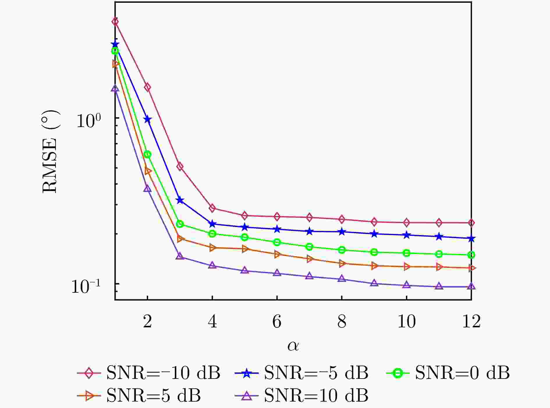 图  8  角度跟踪RMSE受信噪比影响对比
