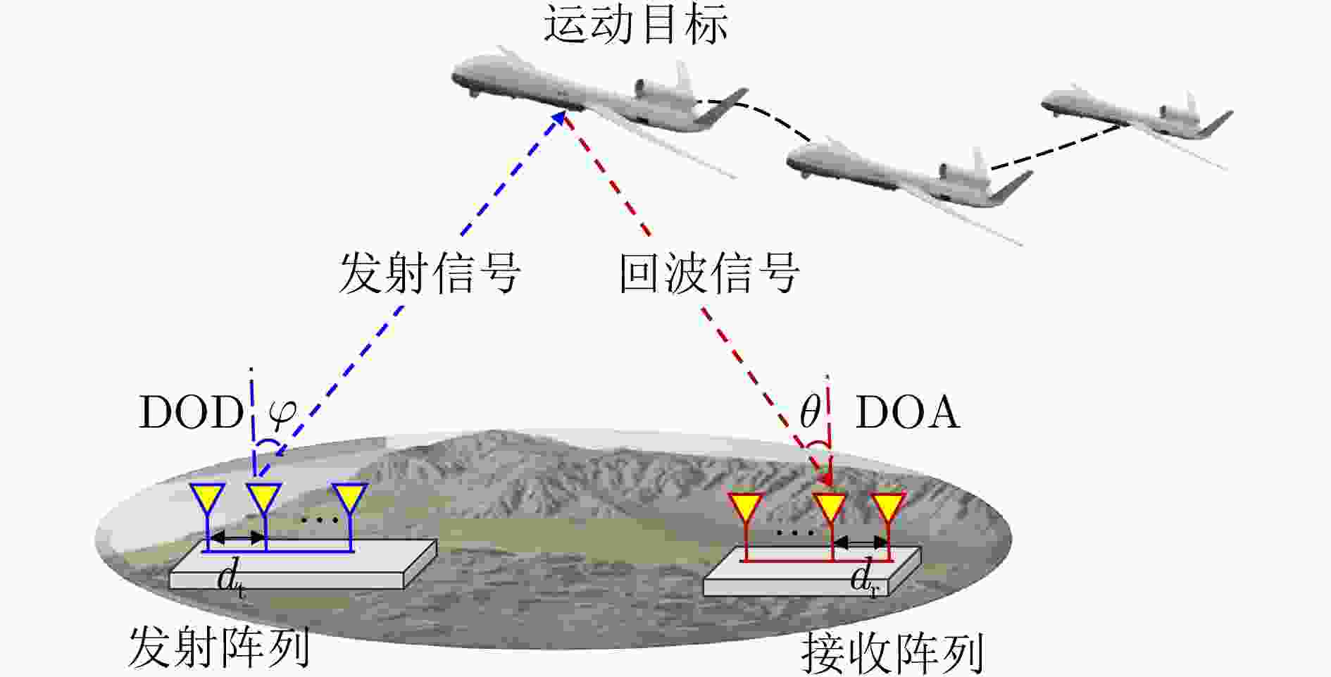 • 图  1  双基地MIMO雷达动目标跟踪示意图