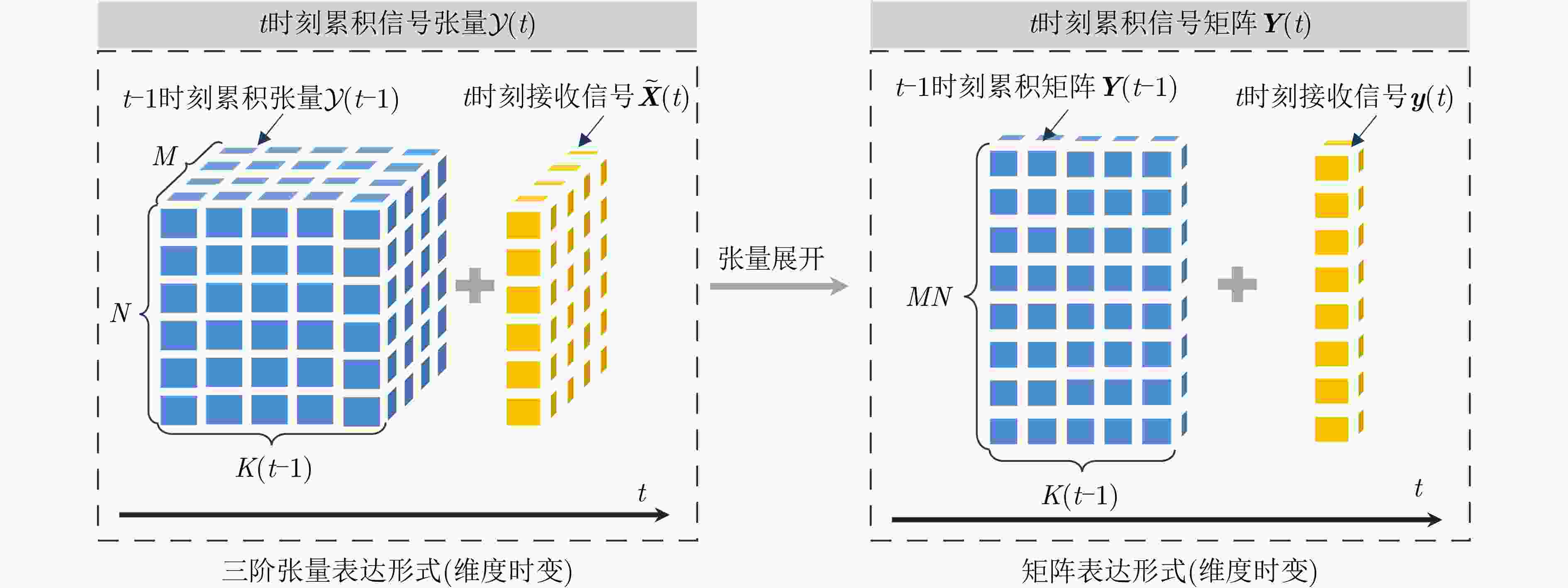 根据式(10)和式(11)对$ {\boldsymbol{X}}(t) $匹配滤波和矢量化,得到接收信号$ {\boldsymbol{y}}(t) $。
