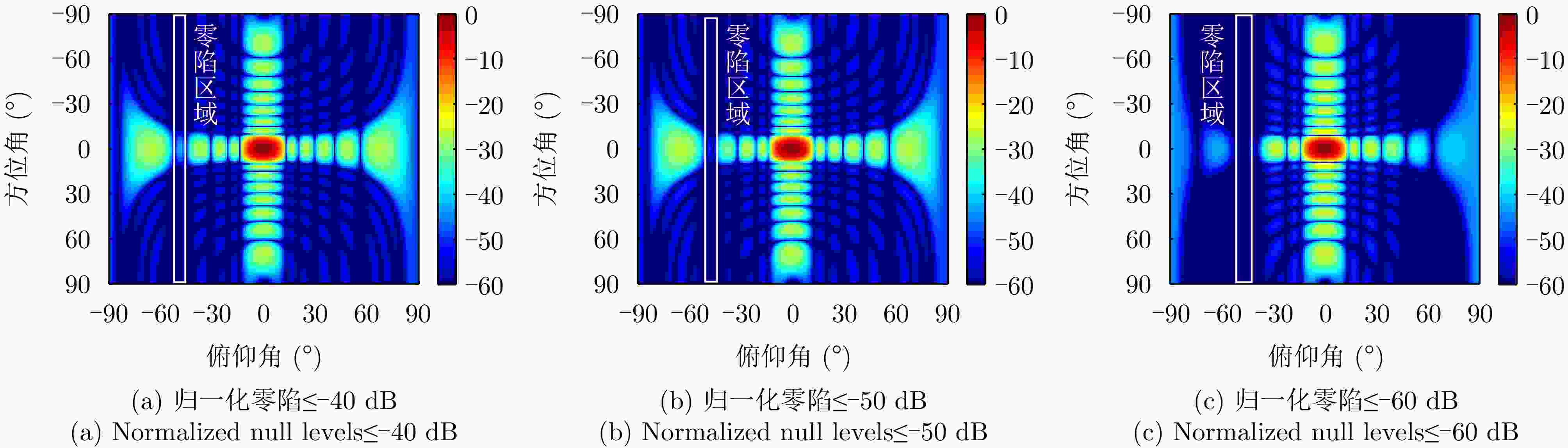 算法 归一化零陷(dB) 归一化PSL (dB) 计算时间(s) 所提方法 ≤–61.8 –30.9 32.1 ADMM ≤–61.9 –30.3 112.1 FOICA ≤–61.4 –24.2 21698 -
