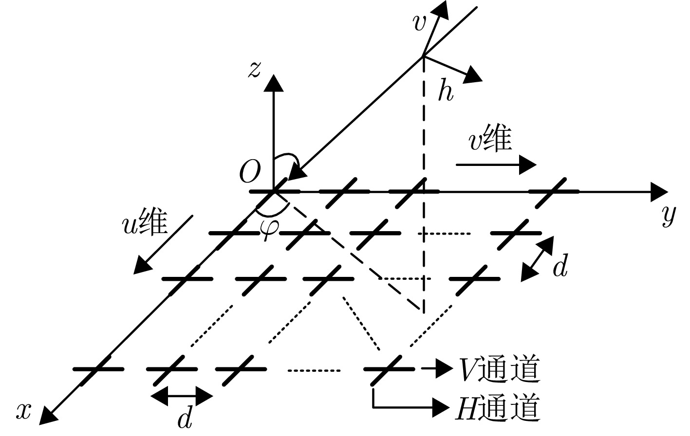 摘要: 针对数字阵列天线自适应对抗主瓣内的自卫式和伴飞式干扰时引起的波束畸变和单脉冲测角性能下降等问题,该文提出了一种基于分维的空域-极化域联合主瓣干扰抑制算法( SPJS-DD)。针对双极化矩形平面阵列天线,推导了空域-极化域联合阵列接收信号导向性矢量的方位维与俯仰维正交性。在此基础上,将方位维/俯仰维依次设置为测角维,另一维度为非测角维,SPJS-DD算法分为两级进行处理:第一级在非测角维进行,对波束方向图进行波束指向的空域-极化域联合约束,通过自适应处理完成非测角维的主瓣干扰抑制;第二级在测角维进行静态和、差波束形成。通过二维分级处理能够在测角维保持单脉冲波束形状不失真,并且在非测角维利用空域-极化域联合自由度抑制主瓣干扰。仿真结果表明,SPJS-DD算法能够有效抑制主瓣干扰,同时获得了良好的单脉冲测角性能。Abstract: To address beam pattern distortion and monopulse angle estimation precision degradation associated with adaptive beamforming processing in the presence of mainlobe self-defense or escort jamming, a joint space–polarization jamming suppression algorithm based on dimensional decomposition (SPJS-DD) is proposed for digital phased array antennas. In SPJS-DD, the orthogonality between the spatial array steering vectors in the azimuth and elevation dimensions of a dual-polarized rectangular planar array antenna is derived first. The azimuth and elevation dimensions of the rectangular array are then alternately selected as the angle estimation dimension (AED), with the other serving as the non-angle estimation dimension (NAED). The adaptive beamforming process in SPJS-DD is divided into two stages. The first-stage processing is applied in the NAED, where mainlobe jamming is adaptively suppressed using the degrees of freedom available in the joint spatial–polarized domain subject to a constraint on the desired steering direction. In the second stage, quiescent sum and difference weights are applied in the AED to preserve the monopulse beam pattern required for accurate angle estimation. Through this two-stage decomposition, SPJS-DD suppresses mainlobe jamming in the NAED while maintaining an undistorted monopulse beam pattern in the AED. Simulation results verify that the proposed SPJS-DD method effectively suppresses mainlobe jamming and achieves high-precision angle estimation.