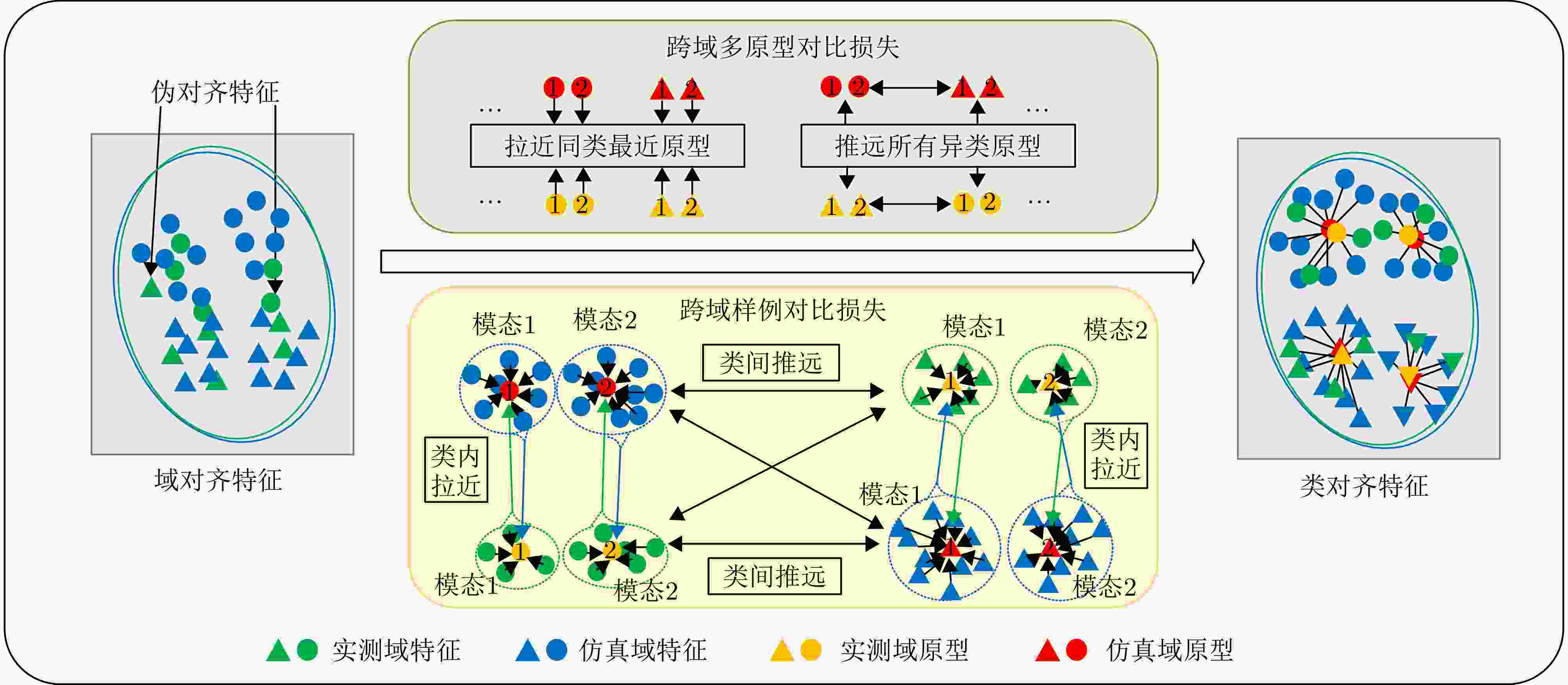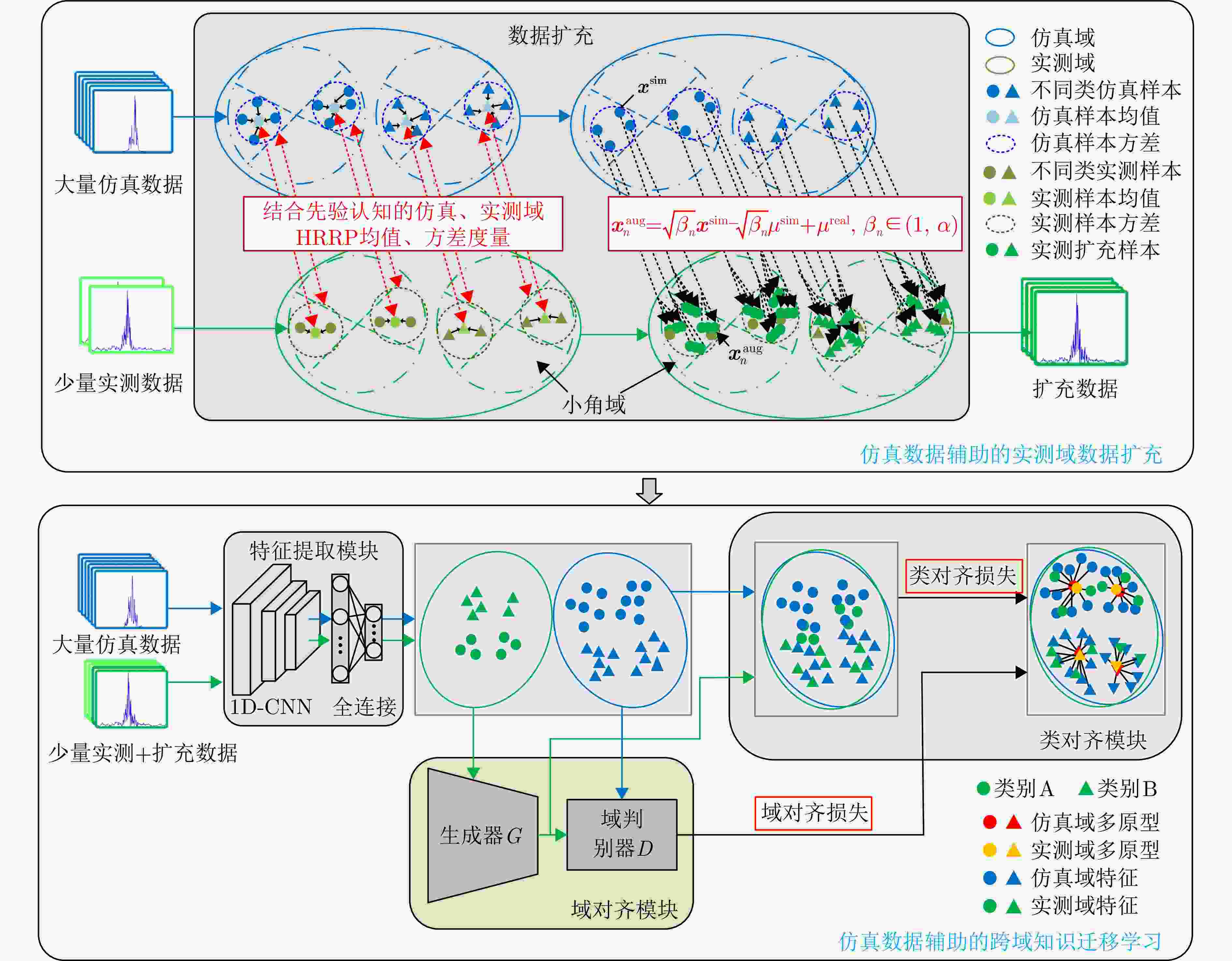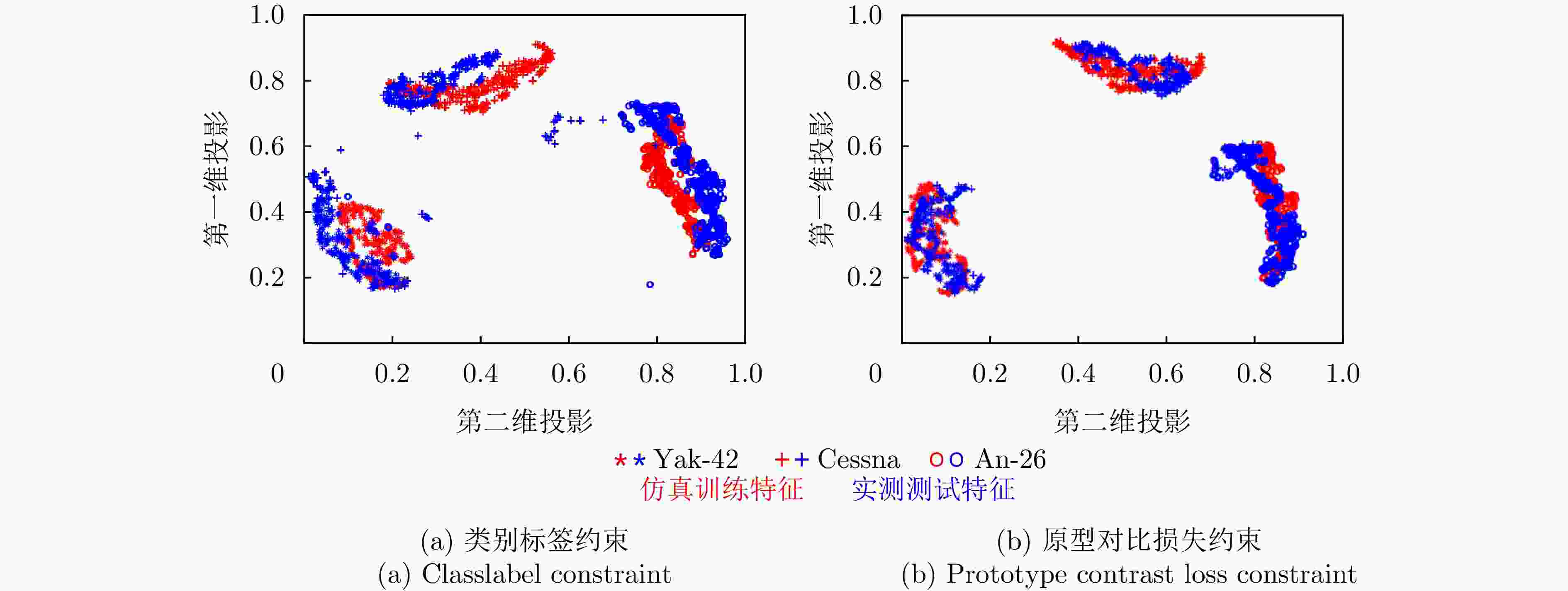 摘要: 雷达高分辨距离像(HRRP)目标识别研究广泛、方法众多,特别是深度学习在雷达HRRP识别领域的应用与发展,为直接利用雷达回波实现高效、精确的目标感知提供了技术支撑。然而,深层识别网络依赖大量训练数据。对于非合作目标,受雷达系统参数、目标快速机动等因素限制,实际很难提前获取姿态完备的HRRP训练样本,深层识别网络面临学习过拟合、泛化能力显著下降的问题。针对上述问题,考虑关注目标的全姿态电磁仿真数据易获取,该文以仿真数据为辅助,从数据扩充和跨域知识迁移学习两方面来缓解小样本问题。数据扩充方面,结合一定姿态角角域范围内仿真、实测HRRP在均值和方差特性两方面的差异分析,对与少量实测HRRP同角域的大量仿真HRRP样本进行线性变换,使其均值、方差满足实测域HRRP特性,实现可表征真实HRRP分布特性的数据扩充。跨域知识迁移学习方面,考虑数据扩充策略仅能实现临近姿态角的样本扩充,对仿真数据知识的利用仍不充分,所提方法利用基于生成对抗约束的域对齐策略和基于对比学习约束的类对齐策略,将具有强可分性与泛化性的仿真域全姿态数据特征和实测域特征按类拉近,进一步辅助实测域数据的学习,实现小样本识别性能的更大提升。基于3类飞机目标以及10类地面车辆目标电磁仿真和实测HRRP数据的实验表明,所提方法相较于现有小样本识别方法具有更优的识别稳健性。Abstract: Research on target recognition using radar High-Resolution Range Profiles (HRRPs) is extensive and diverse in methodology. In particular, the application and development of deep learning to radar HRRP target recognition have enabled efficient, precise target perception directly from radar echoes. However, deep learning-based recognition networks rely on large amounts of training data. For non-cooperative targets, due to limited radar system parameters and rapid target attitude variations, acquiring adequate HRRP training samples that comprehensively cover target attitudes in advance is difficult in practice. Consequently, deep recognition networks are prone to overfitting and exhibit considerably degraded generalization capability. To address these issues, and given the ease of obtaining full-attitude electromagnetic simulation data for the target, this paper leverages simulated data as auxiliary information to mitigate the small-sample-size problem through data augmentation and cross-domain knowledge-transfer learning. For data augmentation, based on the analysis of differences in mean and variance between simulated and measured HRRPs within a given attitude-angle range, a linear transformation is applied to a set of simulated HRRPs spanning the same angular domain as a small set of measured HRRPs. This adjustment ensures that the simulated data’s mean and variance match the characteristics of the measured HRRPs, thereby achieving data augmentation that approximates the true distributional properties of HRRPs. Meanwhile, for cross-domain knowledge transfer learning, the proposed method introduces a domain alignment strategy based on generative adversarial constraints and a class alignment strategy based on contrastive learning constraints. These approaches draw the domain features of full-attitude simulation—strong discriminability and generalizability—closer to the measured domain features on a class-by-class basis, thereby further aiding learning from the measured domain data and leading to substantial improvements in few-shot recognition performance. Experimental results based on electromagnetic simulated and measured HRRP data for three and ten types of aircraft and ground vehicle targets, respectively, demonstrate that the proposed method yields superior recognition robustness compared with existing few-shot recognition methods.