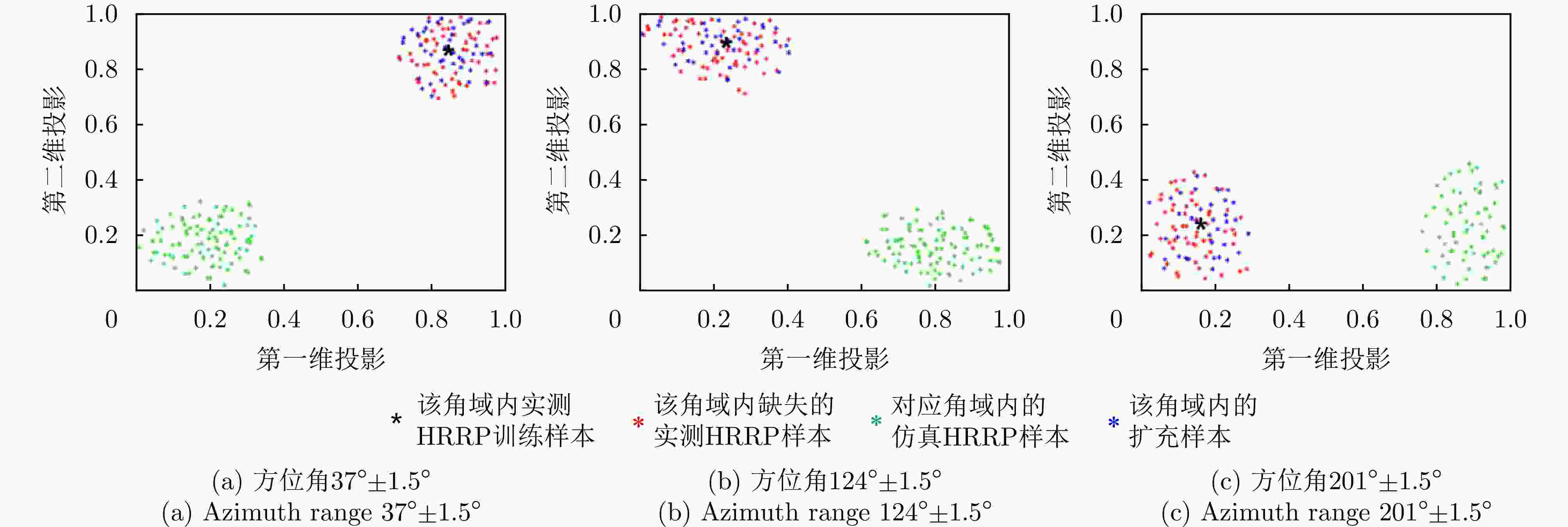 表 1 仿真HRRP信噪比为30 dB、实测HRRP信噪比为30 dB, 20 dB, 10 dB, 5 dB情况下所提方法的识别性能(每类10个实测HRRP训练样本)