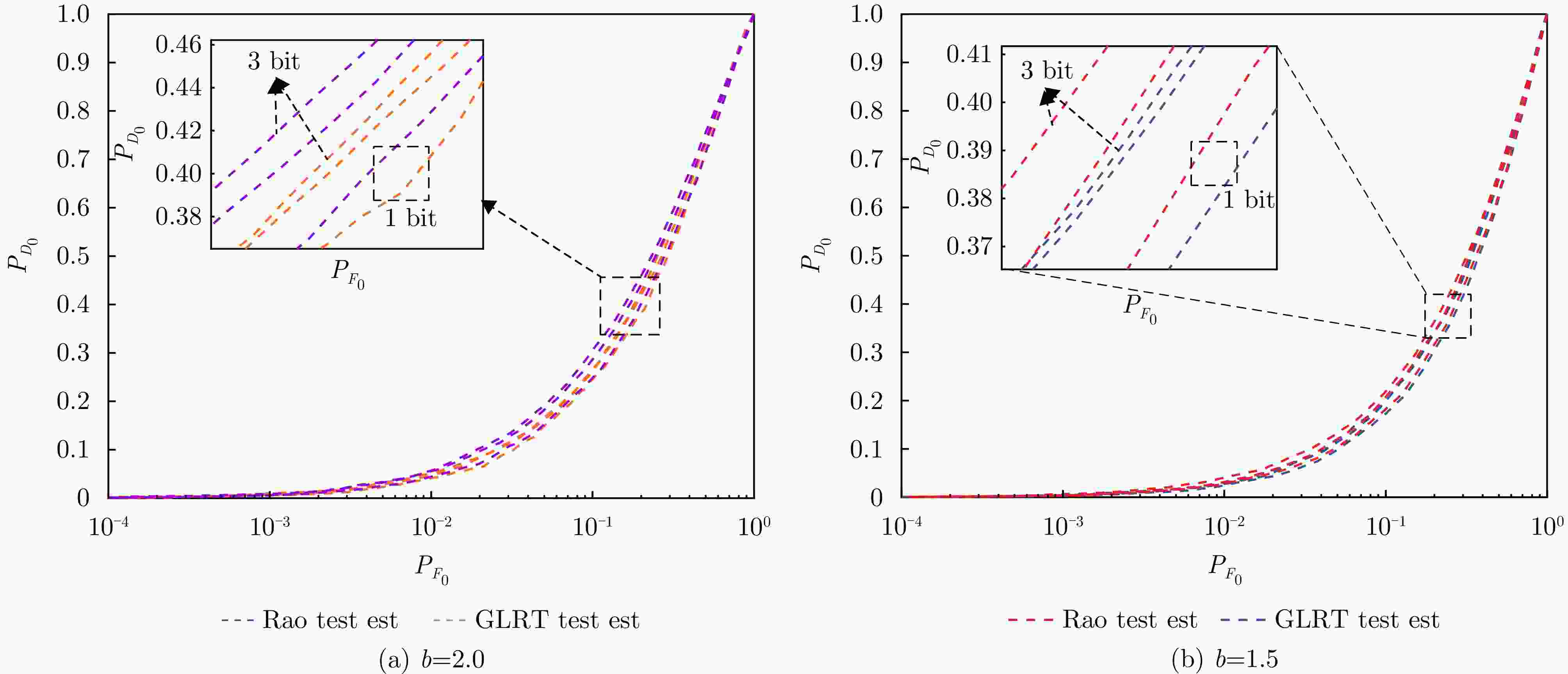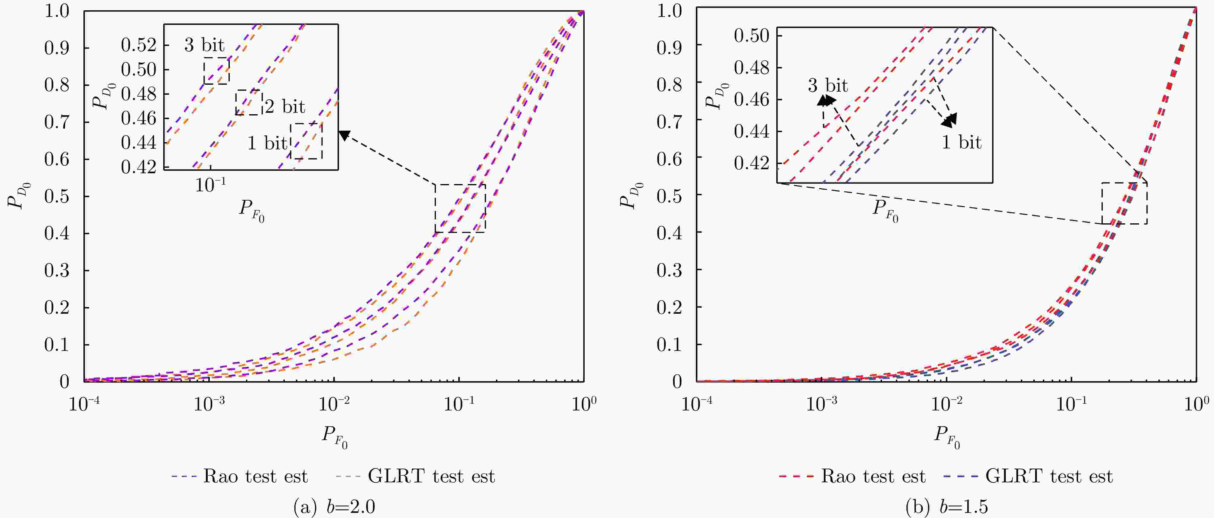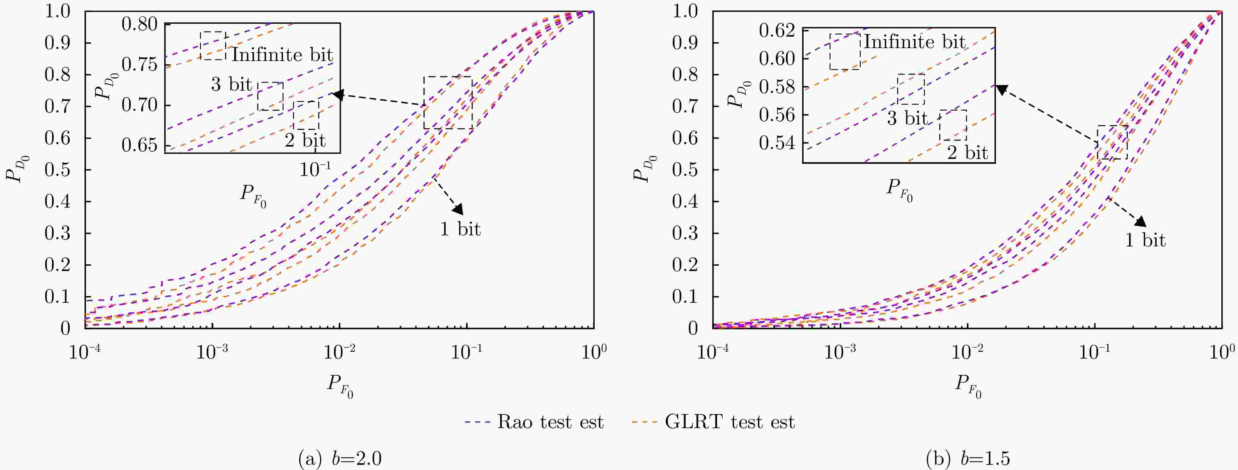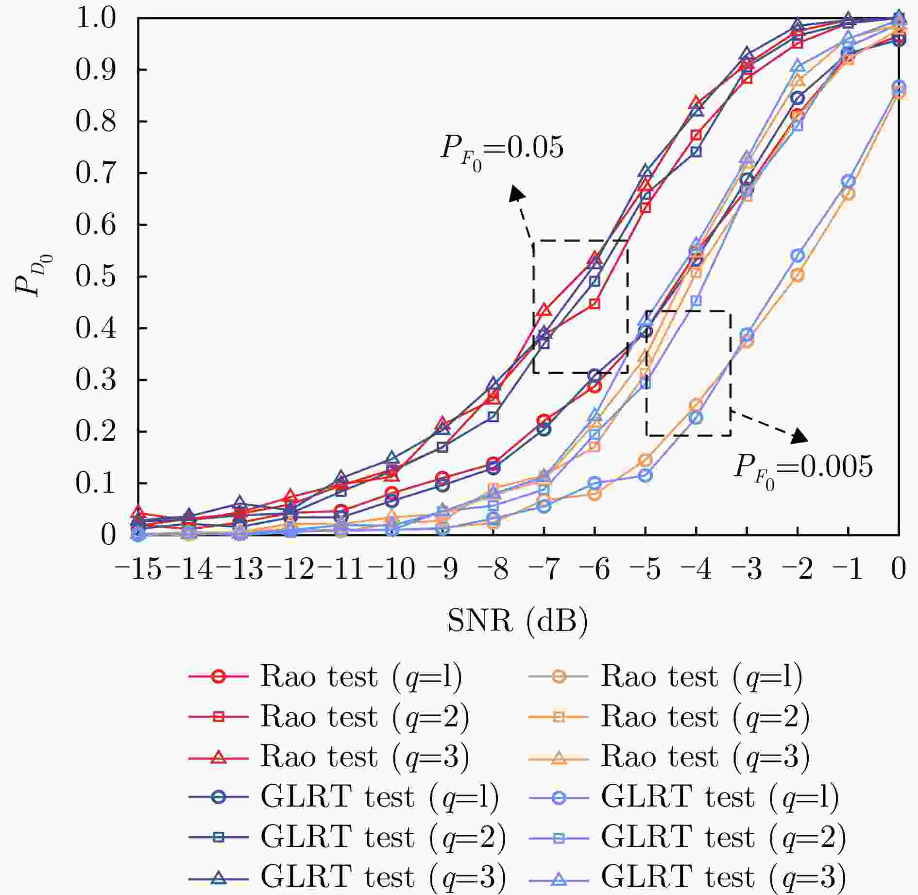 摘要: 多通道观测数据信号级协同检测是分布式MIMO雷达目标检测的关键技术之一,但该技术在实施过程中需消耗大量系统资源用于数据计算与传输,使其在实际工程应用中面临诸多挑战。鉴于低比特量化技术可显著降低分布式系统的通信传输代价和计算资源消耗,该文研究了广义高斯噪声背景下基于低比特量化的MIMO雷达目标检测问题。分别基于广义似然比检验(GLRT)与广义Rao (G-Rao)检验设计了相应的检测器:前者需要对目标反射系数与多普勒频率进行最大似然估计;后者基于得分函数直接构造统计量,避免冗余参数搜索,有效降低计算复杂度。此外,为改善检测性能,运用动态规划(DP)算法对量化门限进行优化。实验结果表明:与GLRT方法相比,G-Rao检测器的计算效率更高;与均匀量化门限相比,门限优化可有效提高对目标的检测性能;与粒子群优化等现有算法( PSOA)相比,DP的计算复杂度更低。Abstract: Signal-level cooperative detection based on multichannel observations is a pivotal technique in distributed Multiple-Input Multiple-Output (MIMO) radar for probing targets via the joint processing of multiple echo channels. However, such cooperative processing imposes substantial demands on computational and communication resources. To address this challenge, moving target detection using distributed MIMO radar with low-bit quantization in the presence of generalized Gaussian noise was investigated herein. In particular, the detectors were designed based on the Generalized Likelihood Ratio Test (GLRT) and the Generalized Rao (G-Rao) test. The maximum likelihood of the target reflection coefficient and Doppler frequency is estimated using the GLRT, whereas the G-Rao test directly constructs statistics based on a score function. These methods avoid redundant parameter searches and effectively reduce computational complexity. A Dynamic Programming (DP) algorithm was used to optimize the quantization threshold and improve the detection performance. Experimental results demonstrate that the G-Rao test is more computationally efficient than the GLRT method. In addition, threshold optimization considerably improves target detection performance compared with a uniform quantization threshold, and DP exhibits lower computational complexity than existing algorithms, such as Particle Swarm Optimization (PSOA).