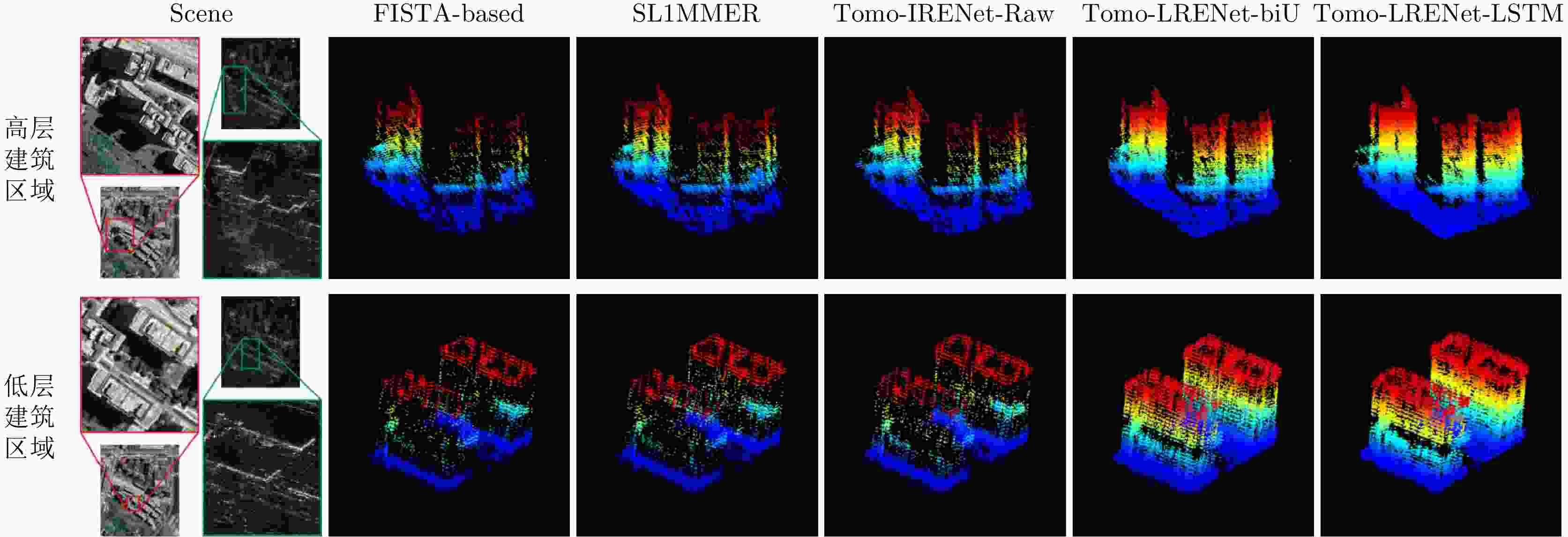 Figure  6.  A comparative analysis of algorithm performance based on multi-pass UAV SAR 3D imaging experiments with large synthetic apertures, as presented in Ref. [43]
