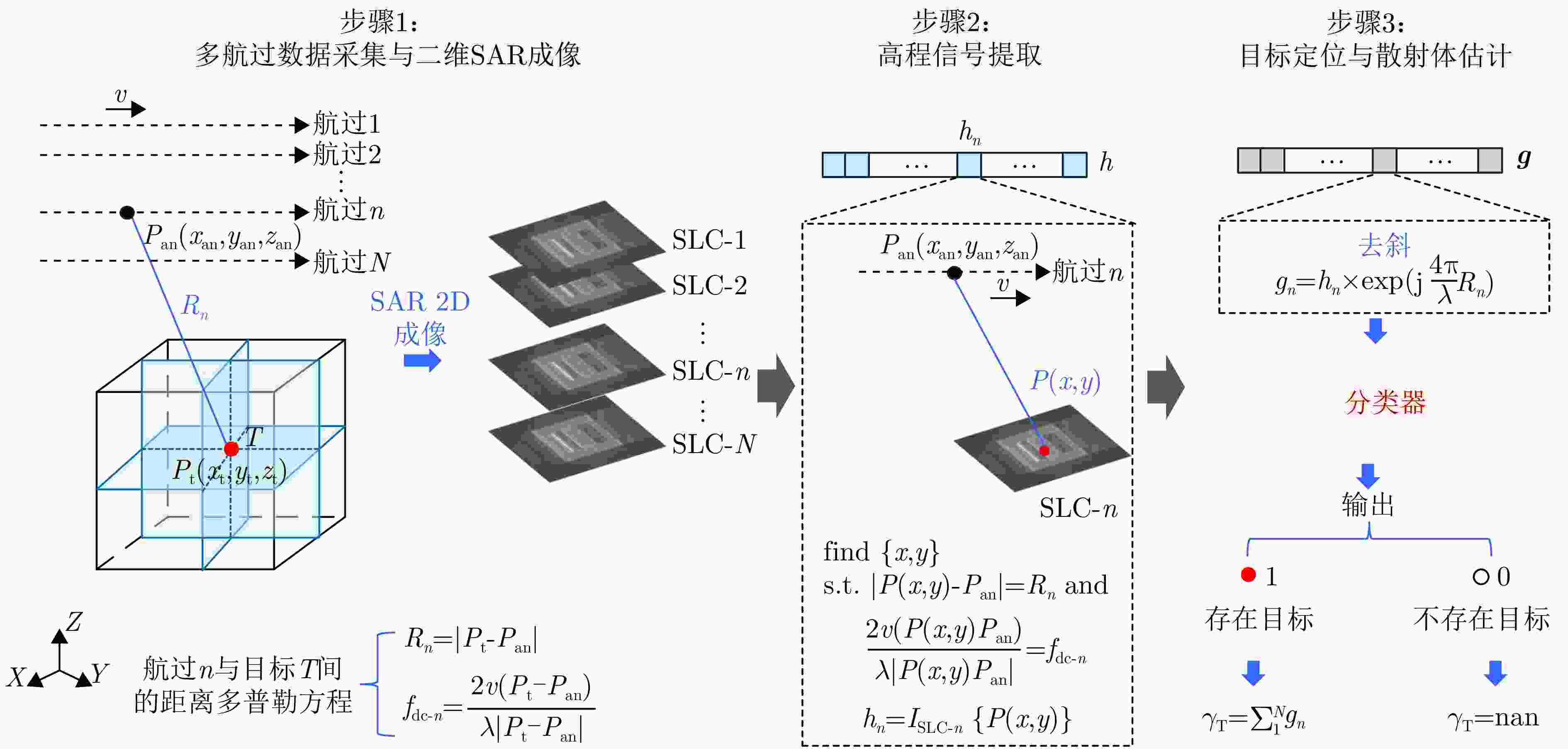 图  5  文献[43]多航过无人机大合成孔径角SAR三维成像方法原理图