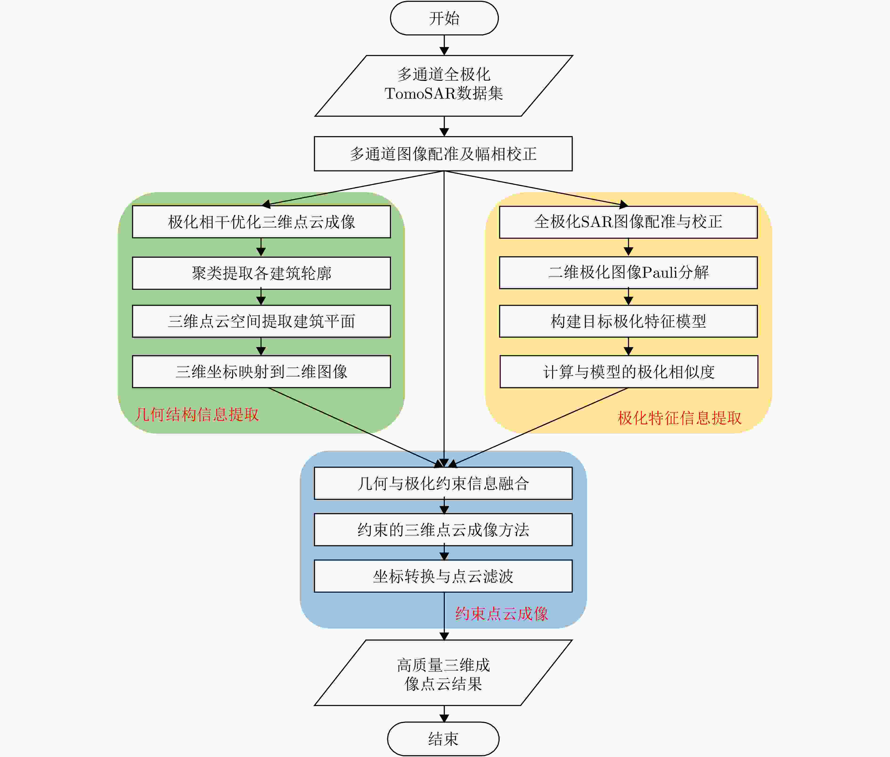 图  3  极化与几何联合约束层析SAR三维成像处理流程图