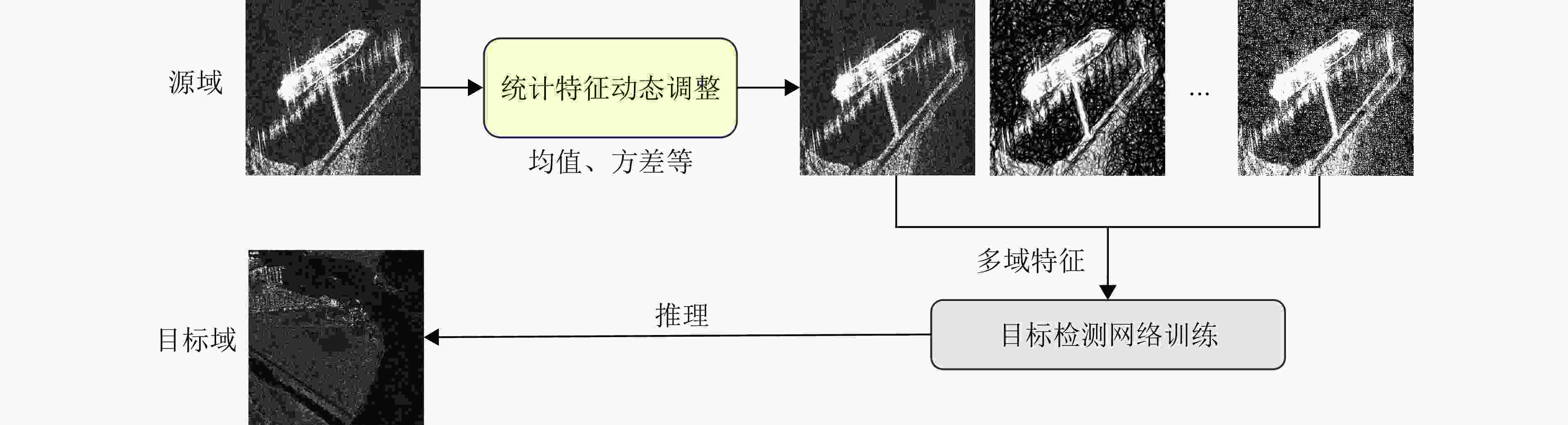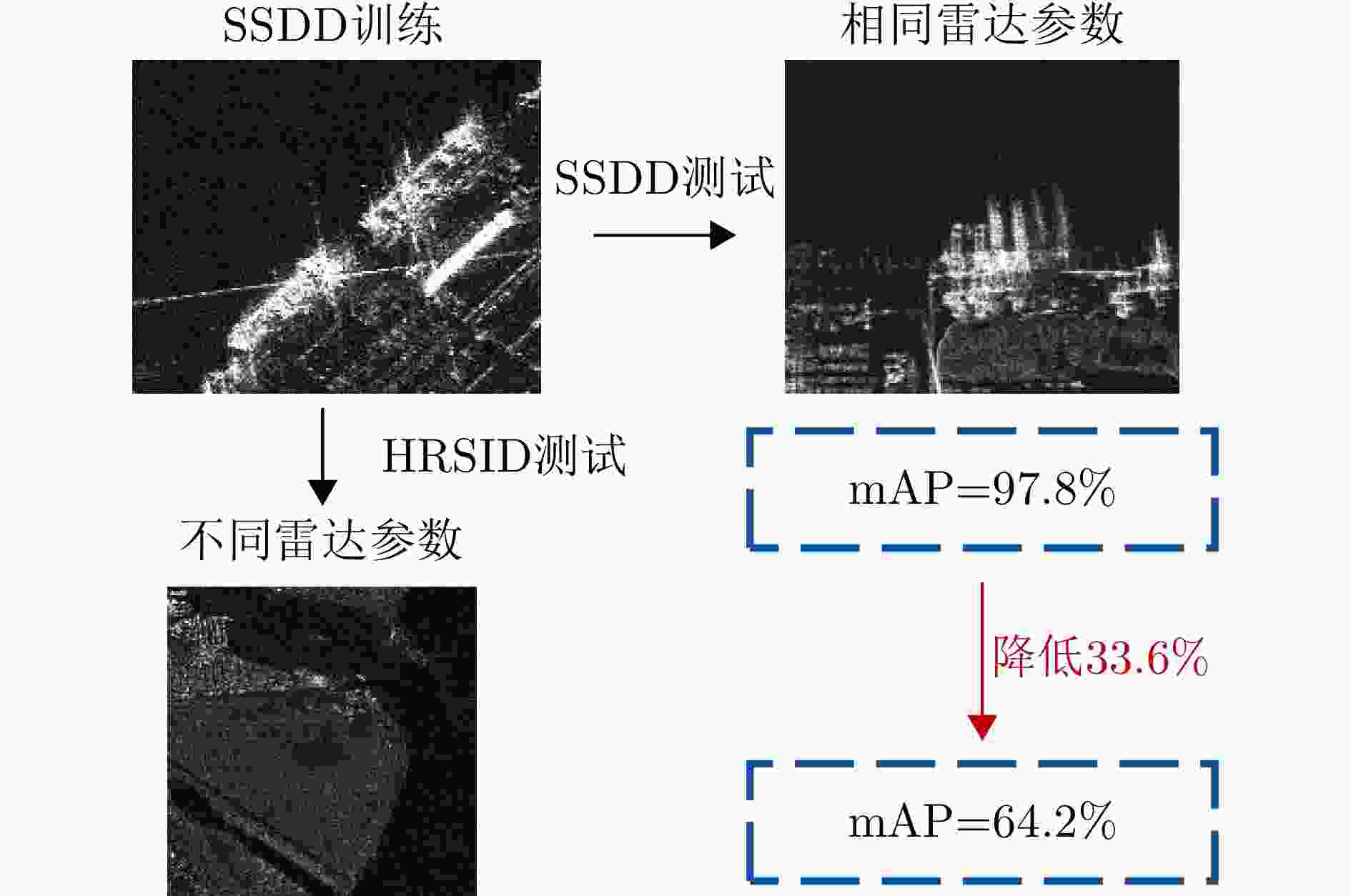 摘要: 深度学习虽已成为合成孔径雷达(SAR)图像目标检测领域主流方法,但其性能高度依赖于大规模标注数据集。在测试不同分布的SAR数据时,模型的检测性能会出现一定程度下降,难以直接迁移应用,且人工标注成本高昂。针对此瓶颈,学术界开始探索基于多源信息的跨域学习策略,通过整合不同来源(传感器)的光学遥感图像或异源SAR图像等先验信息,辅助检测模型实现跨域知识迁移。该文聚焦深度学习框架下的跨域学习技术,系统梳理该领域最新研究进展,分析该领域的核心问题,从方法论层面分析现有技术的核心优势与适用场景,并基于技术演进规律提出未来发展方向,旨在为提升SAR图像目标检测的泛化能力提供理论支撑与方法论参考。Abstract: Deep learning is primarily used for target detection in Synthetic Aperture Radar (SAR) images; however, its performance heavily relies on large-scale labeled datasets. The detection performance of deep learning models degrades when applied to SAR data with varying distributions, hindering their real-world applicability. In addition, manual labeling of SAR data is costly. Hence, cross-domain learning strategies based on multisource information are being explored to address these challenges. These strategies can assist detection models in realizing cross-domain knowledge migration by integrating prior information from optical remote sensing images or heterogeneous SAR images acquired from different sensors. This paper focuses on cross-domain learning technologies within the deep learning framework. In addition, it provides a systematic overview of the latest research progress in this field and analyzes the core issues, advantages, and applicable scenarios of existing technologies from a methodological perspective. It outlines future research directions based on the law of technological evolution, aiming to offer theoretical support and methodological references to enhance the generalizability of target detection in SAR images.
