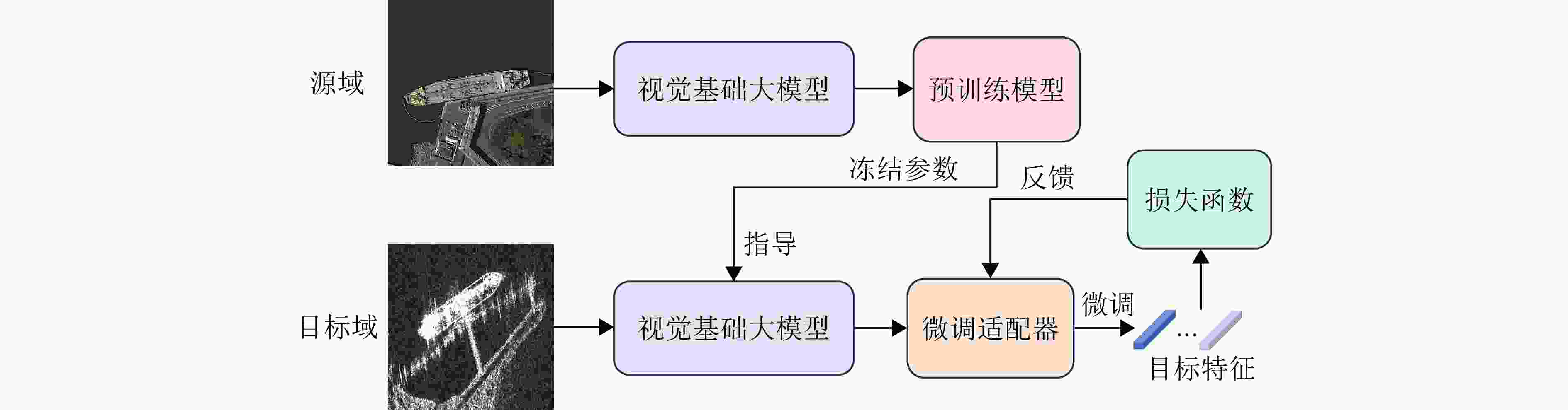增加训练成本适用于模拟复杂未知环境或需要处理多个域数据的任务;[SAR→SAR] 视觉基础大模型微调 利用预训练大模型学习源域