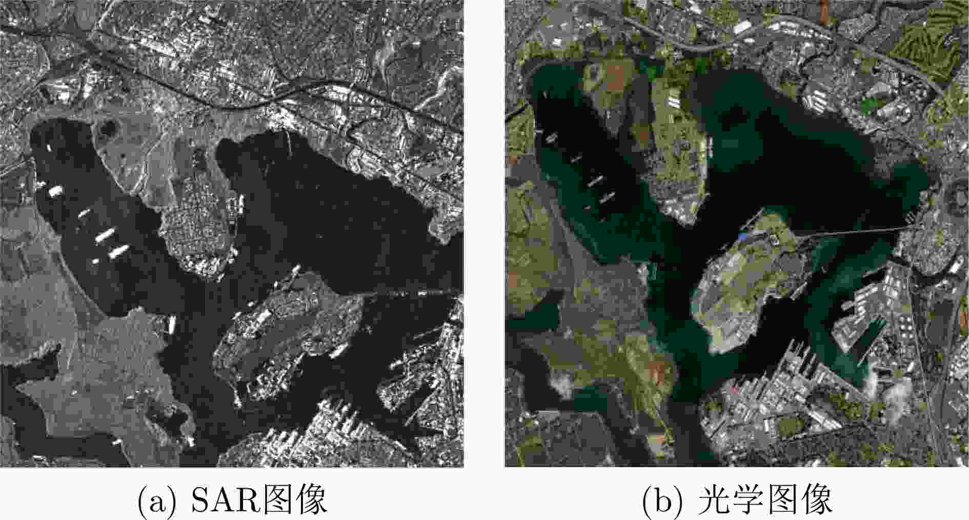 • 图  1  某港口的高分辨率SAR图像与对应的光学遥感图像对比
