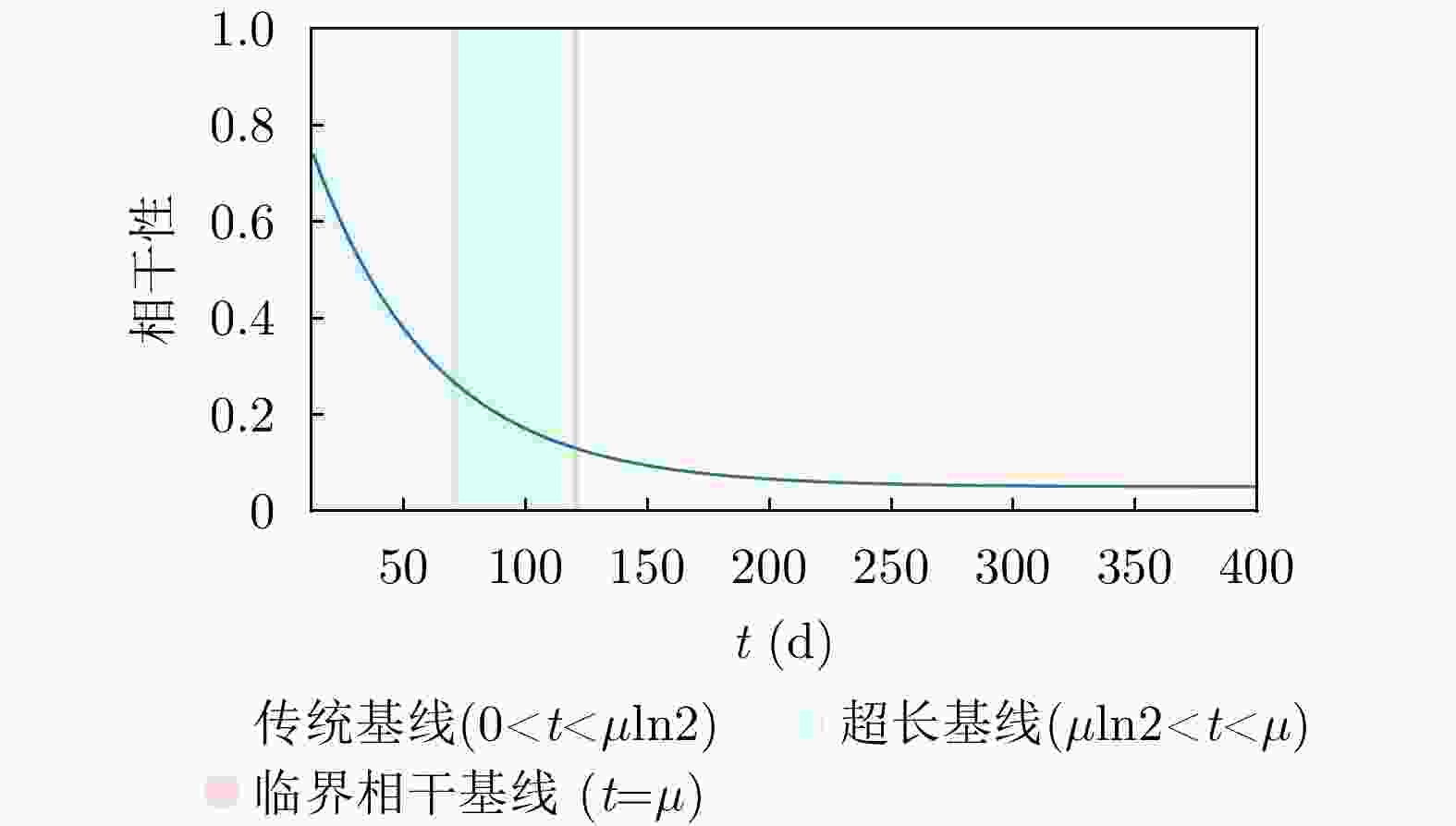 定义 基线类型 物理意义 $ t \gt \mu $ 无效时间基线 超出临界相干时间基线,相干性趋近长期值且变化极缓,继续增加基线无显著增益且浪费资源 $ t=\mu $ 临界相干时间基线 相干性衰减速率由快转缓的临界转变点,标志向长期稳定态过渡的理论分界 $ \mu \ln 2 \lt t \lt \mu $ 超长时间基线 长期相干性主导衰减过程,散射体长期统计特性为主要控制因素 $ t=\mu \ln 2 $ 超长时间基线临界点 相干性从短期初始状态主导向长期稳定特性主导过渡的关键节点 $ 0 \lt t \lt \mu \ln 2 $ 传统时间基线 即传统短基线和长基线。初始相干性主导衰减过程,系统参数设计为主要控制因素,