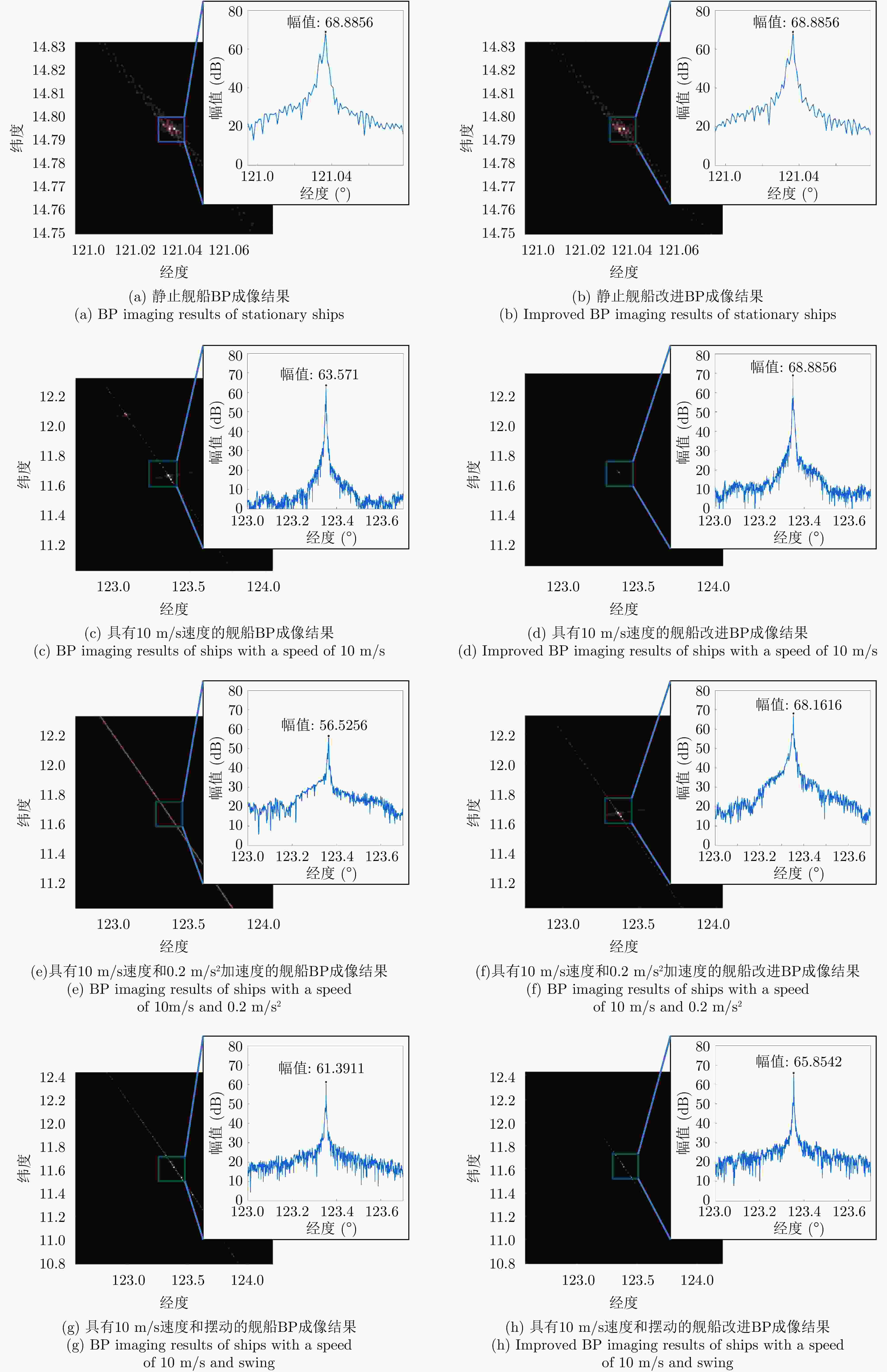 Figure  13.  The simulation imaging results of moving ship detection by BP and the proposed improved imaging method