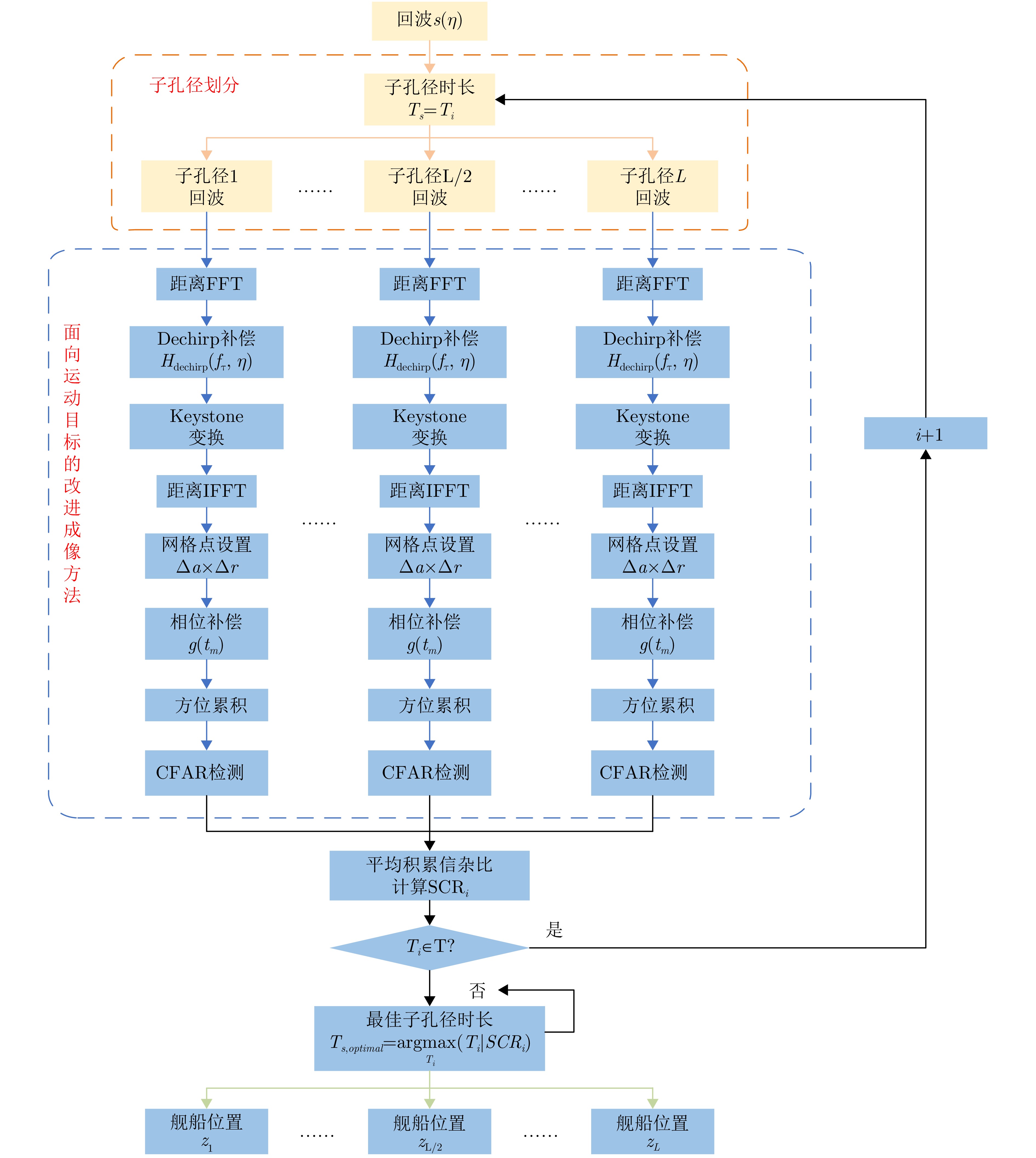 图  3  基于子孔径处理的GEO SAR运动舰船成像探测方法流程图