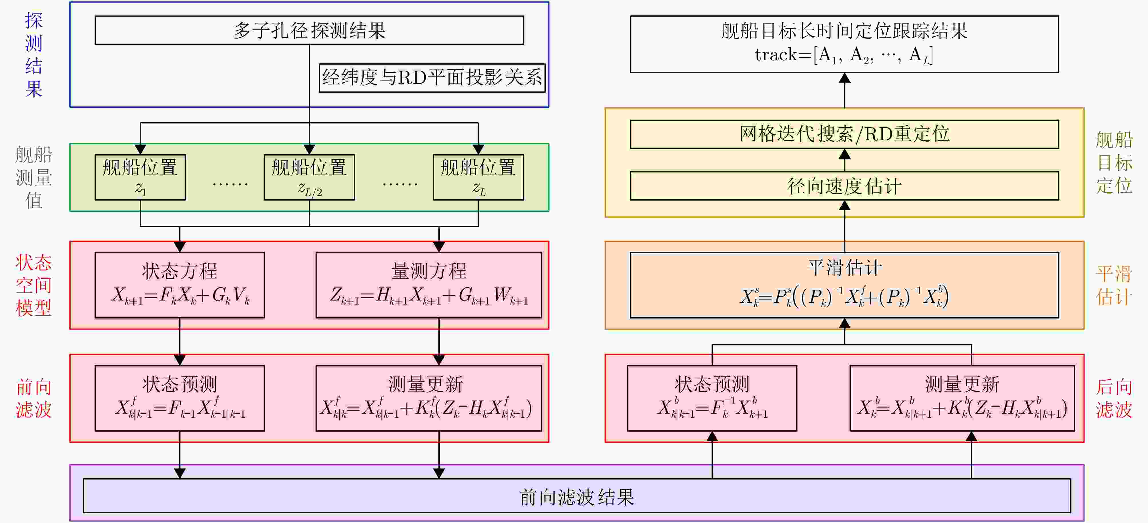 • 摘要: 地球同步轨道(GEO)合成孔径雷达(SAR)具有对大区域进行连续观测的优势,但由于探测距离远、合成孔径时间长、大视场杂波累加和非平直观测几何的特点,导致利用GEO SAR对运动舰船探测存在成像聚焦困难、信杂比低、位置偏移大等巨大技术挑战。该文提出一种面向GEO SAR的运动舰船探测-跟踪-定位一体化处理新方法,可有效解决上述难题。该文首先建立了GEO SAR对运动舰船的观测信号模型,深入分析了超长合成孔径时间内运动舰船的回波特性,提出了基于最优子孔径处理实现目标成像探测和长时间跟踪定位方法,该方法通过改进BP成像算法在孔径内实现了低信杂比下非合作舰船能量良好积累聚焦,获得了GEO SAR非平直几何观测下复杂运动舰船目标偏移位置与距离多普勒关系;然后,基于舰船短时匀速运动假设,利用双向平滑滤波方法对多子孔径探测结果进行航迹跟踪,并基于长时间跟踪结果获得运动舰船速度估计,在此基础上利用偏移位置与实际位置距离多普勒关系实现了运动舰船重定位。最后,通过仿真数据和在轨GEO SAR卫星实测数据验证了所提方法的正确性。