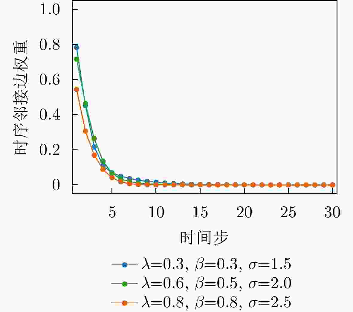 参数 物理意义 搜索范围 最优值 $ \lambda $ 时序衰减权重系数,控制指数衰减与高斯衰减的相对重要性 [0.2, 0.8] 0.46 $ \beta $ 指数衰减速率,决定时序相关性随距离衰减的速度 [0.1, 1.2] 0.10 $ \sigma $ 高斯核宽度,控制高斯衰减函数的平滑程度 [1.0, 3.5] 2.40 $ \alpha $ 特征权重分配系数,调节特征相似边权重的分配比例 [0.1, 0.6] 0.33 $ \eta $ 边权融合系数,控制时序边与特征边融合时的次要权重增强 [0.2, 0.7] 0.59 表 6 不同模型分类性能对比