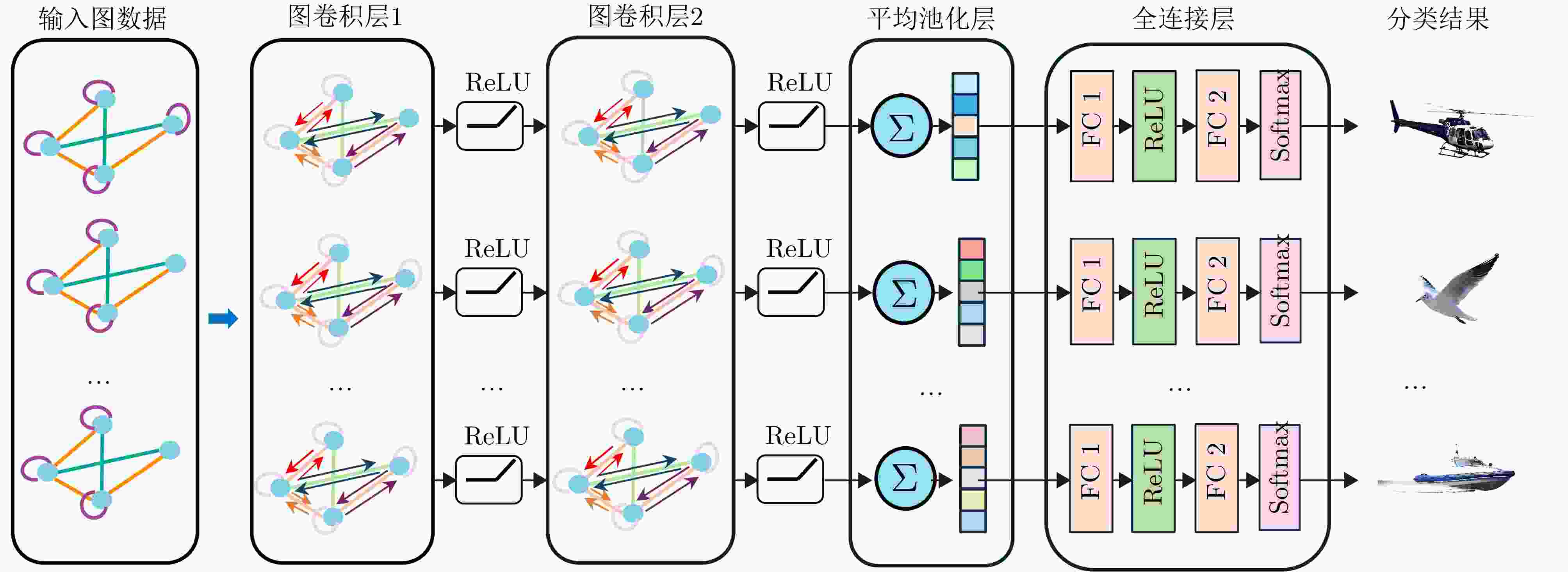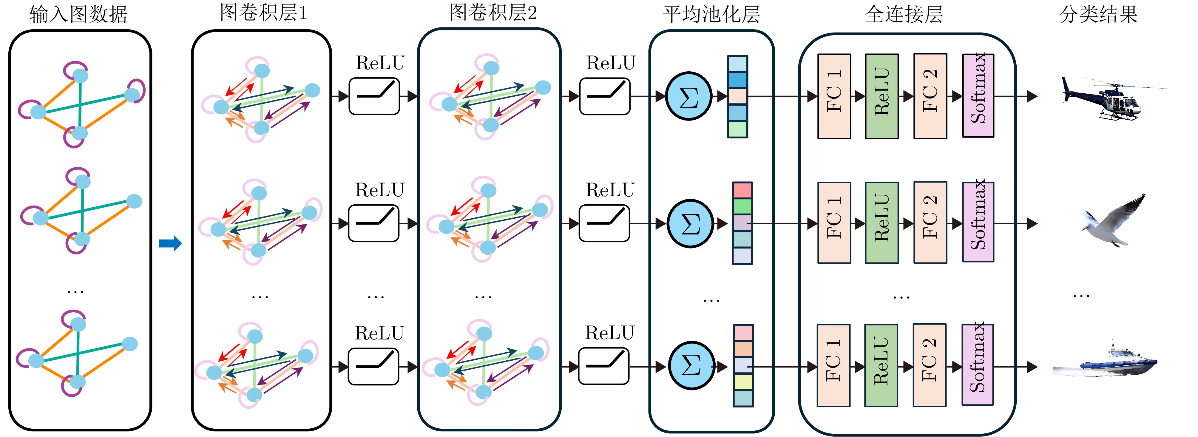 摘要: 针对低慢小(LSS)目标雷达分类中存在的特征提取不充分、时空关联建模能力薄弱及分类性能欠佳等问题,本文围绕图网络特征提取和分类技术开展研究。首先,聚焦数字阵泛探雷达,构建了雷达低慢小目标探测数据集LSS-DAUR-1.0,包含客轮、快艇、直升机、旋翼无人机、鸟类与固定翼无人机6类目标的多普勒和航迹数据。其次,基于该数据集分析了目标的多域多维特性,通过相关性和余弦相似度分析,验证了多普勒特征与物理运动特征的互补性。在此基础上,提出融合双特征的动态图图卷积网络(DG-GCN)分类方法设计自适应窗口调整、混合衰减函数和动态阈值机制,构建时空关联自适应动态图,结合图卷积特征学习和分类模块,实现对低慢小目标的精细化分类。LSS-DAUR-1.0数据集验证表明,DG-GCN分类准确率达99.66%,较ResNet和Transformer模型分别提升6.78%和17.97%,总处理时间仅4.98 ms,较对比模型降低80%以上,兼顾高精度与高效性。此外,噪声环境测试其鲁棒性良好。消融实验验证,动态边权机制可弥补纯时序连接的空间特征关联上不足,提升模型泛化能力。Abstract: To address issues such as insufficient feature extraction, limited spatiotemporal correlation modeling, and poor classification performance in radar classification of low, slow, and small targets, this paper investigates on graph network-based feature extraction and classification methods. First, focusing on digital array ubiquitous radar, a radar detection dataset for LSS targets, named LSS-DAUR-1.0, is constructed; it contains Doppler and track data for six types of targets: passenger ships, speedboats, helicopters, rotor drones, birds, and fixed-wing drones. Second, based on this dataset, the multidomain and multidimensional characteristics of the targets are analyzed, and the complementarity between Doppler and physical motion features is verified through correlation and cosine similarity analyses. On this basis, a Graph Convolutional Network with Dynamic Graph Construction (DG-GCN) classification method fusing dual features is proposed. An adaptive window adjustment, a hybrid attenuation function, and a dynamic threshold mechanism are designed to construct an adaptive dynamic graph based on spatiotemporal correlation. Combined with graph convolution–based feature learning and classification modules, this approach achieves refined classification of low, slow, and small targets. Validation on the LSS-DAUR-1.0 dataset shows that the DG-GCN achieves 99.66% classification accuracy, which is 6.78% and 17.97% higher than that of ResNet and Transformer models, respectively. The total processing time is only 4.98 ms, which is more than 80% lower than that of the aforementioned comparison models. Hence, the DG-GCN achieves both high accuracy and efficiency. In addition, noise environment tests show good robustness. Ablation experiments verify that the dynamic edge weight mechanism compensates for the lack of spatial feature correlation in purely temporal connections and improves the model’s generalizability.