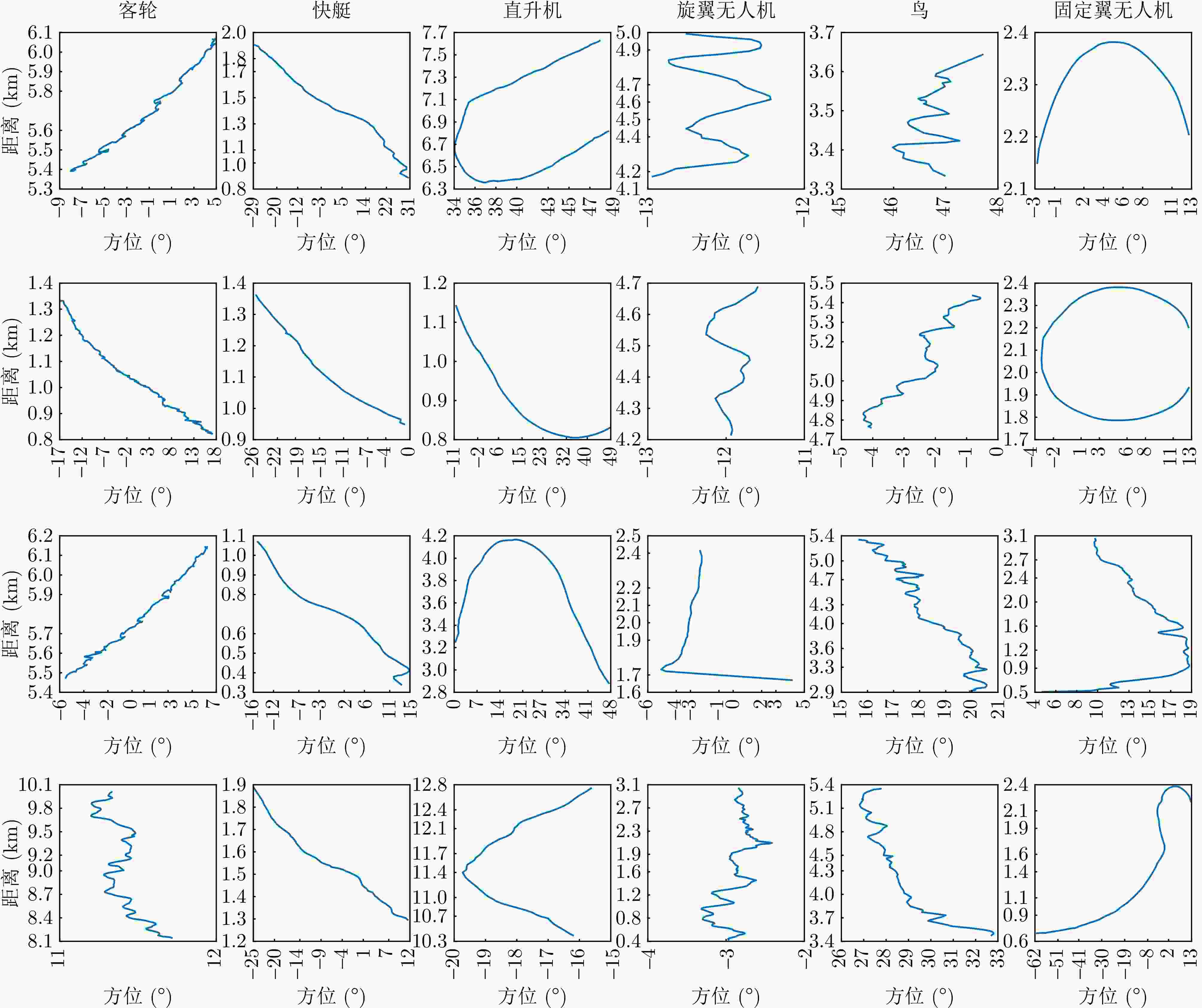 目标类别 总航迹数 训练集航迹编号 验证集航迹编号 总样本数 总样本占比 训练集样本数 验证集样本数 客轮 10 1, 2, 3, 4, 5, 8 6, 7, 9, 10 246 16.69% 196 50 快艇 11 1, 3, 7, 8, 11 2, 4, 5, 6, 9, 10 231 15.67% 184 47 直升机 10 1, 2, 3, 5, 6, 7, 8 4, 9, 10 217 14.72% 173 44 旋翼无人机 18 1, 2, 4, 5, 7, 13, 14, 15, 17 3, 9, 10, 11, 12, 16, 18 250 16.96% 200 50 鸟 17 2, 5, 6, 7, 8, 9, 10, 11, 13 1, 3, 4, 12, 14, 15, 16, 17 237 16.08% 189 48 固定翼无人机 11 2, 3, 4, 5, 6, 7, 8, 9, 10 1, 11 293 19.88% 234 59 总计 77 — — 1474 100.00% 1179 295 表 5 动态边权参数搜索空间