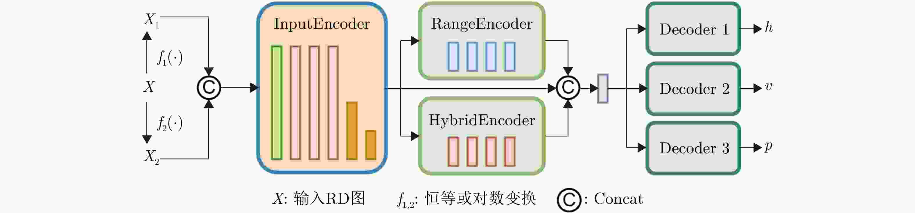 摘要: 脉冲多普勒雷达具备全天候工作能力,可通过距离-多普勒(RD)图像同时获取目标的距离与速度信息。在近垂直飞行场景下,RD图的几何结构中蕴含飞行平台的高度、速度及俯仰角等关键运动参数,但这些参数在 RD 域中呈现明显耦合,传统信号处理方法在复杂地形和近垂直入射条件下难以实现有效解耦。近年来,深度学习在运动信息感知领域展现出显著优势,但多任务学习在该场景下仍难以同时满足实时性与高精度要求。为此,本文提出一种新型的网络结构——RDMFNet,通过共享编码器与并行解码器实现多表征信息融合,并采用两阶段渐进式训练策略,以提高参数估计的精度。实验表明,RDMFNet在高度、速度及俯仰角估计上的误差分别降低至14.447 m, 4.635 m/s和0.755°,展现了其在高精度实时感知中的优势。Abstract: Pulse Doppler radar provides all-weather operational capability and enables simultaneous acquisition of target range and velocity through Range-Doppler (RD) maps. In near-vertical flight scenarios, the geometric structure of RD maps implicitly encodes key platform motion parameters, including altitude, velocity, and pitch angle. However, these parameters are strongly coupled in the RD domain, making effective decoupling difficult for traditional signal-processing-based inversion methods, particularly under complex terrain and near-vertical incidence conditions. Although recent advances in deep learning have shown strong potential for motion information sensing, multitask learning in this context still faces challenges in achieving both real-time performance and high estimation accuracy. To address these issues, this study proposes a novel network architecture, termed RDMFNet, that performs multirepresentation information fusion via shared encoders and parallel decoders, along with a two-stage progressive training strategy to enhance parameter estimation accuracy. Experimental results show that RDMFNet achieves estimation errors of 14.447 m for altitude, 4.635 m/s for velocity, and 0.755° for pitch angle, demonstrating its effectiveness for high-precision, real-time perception.