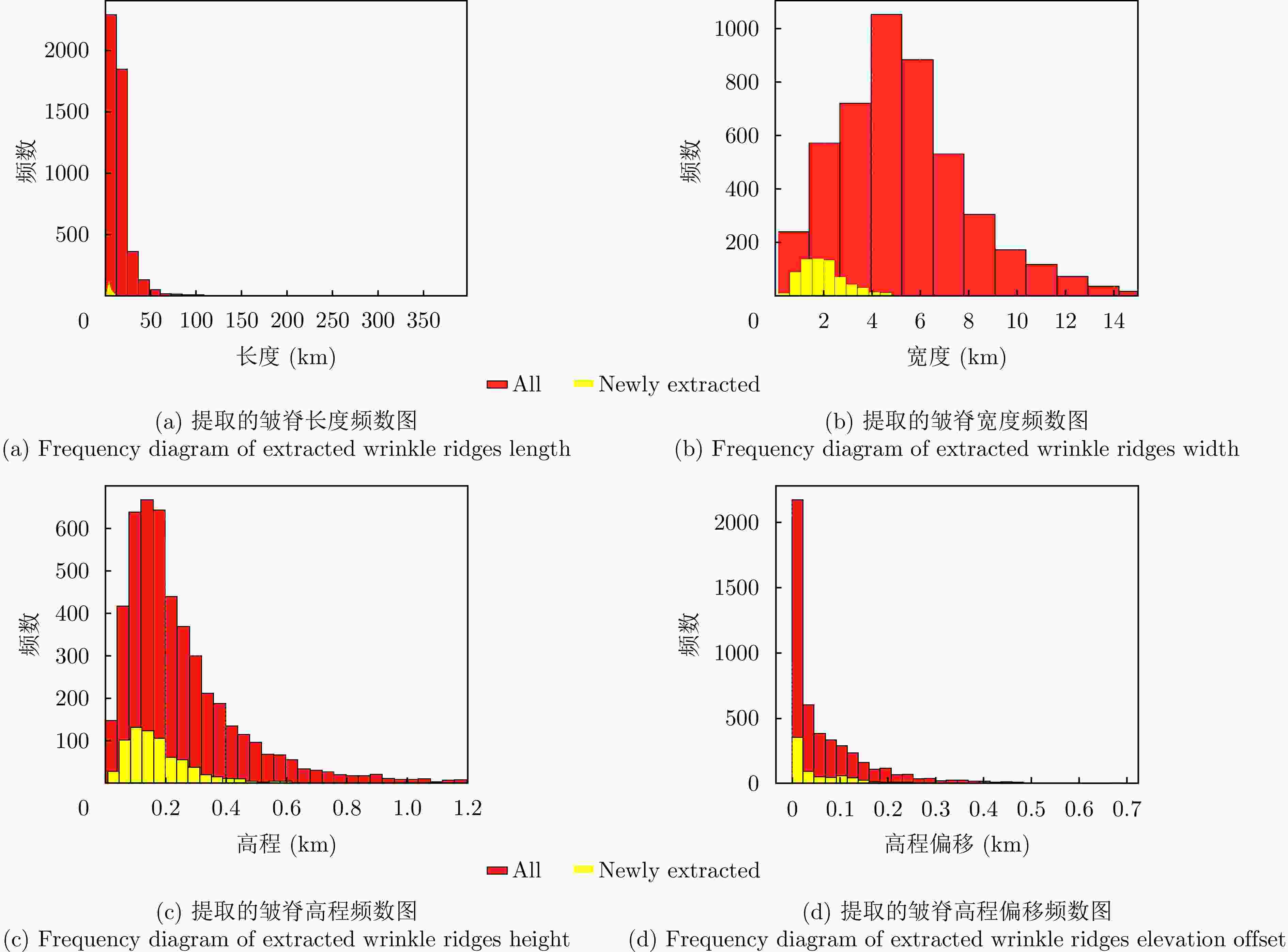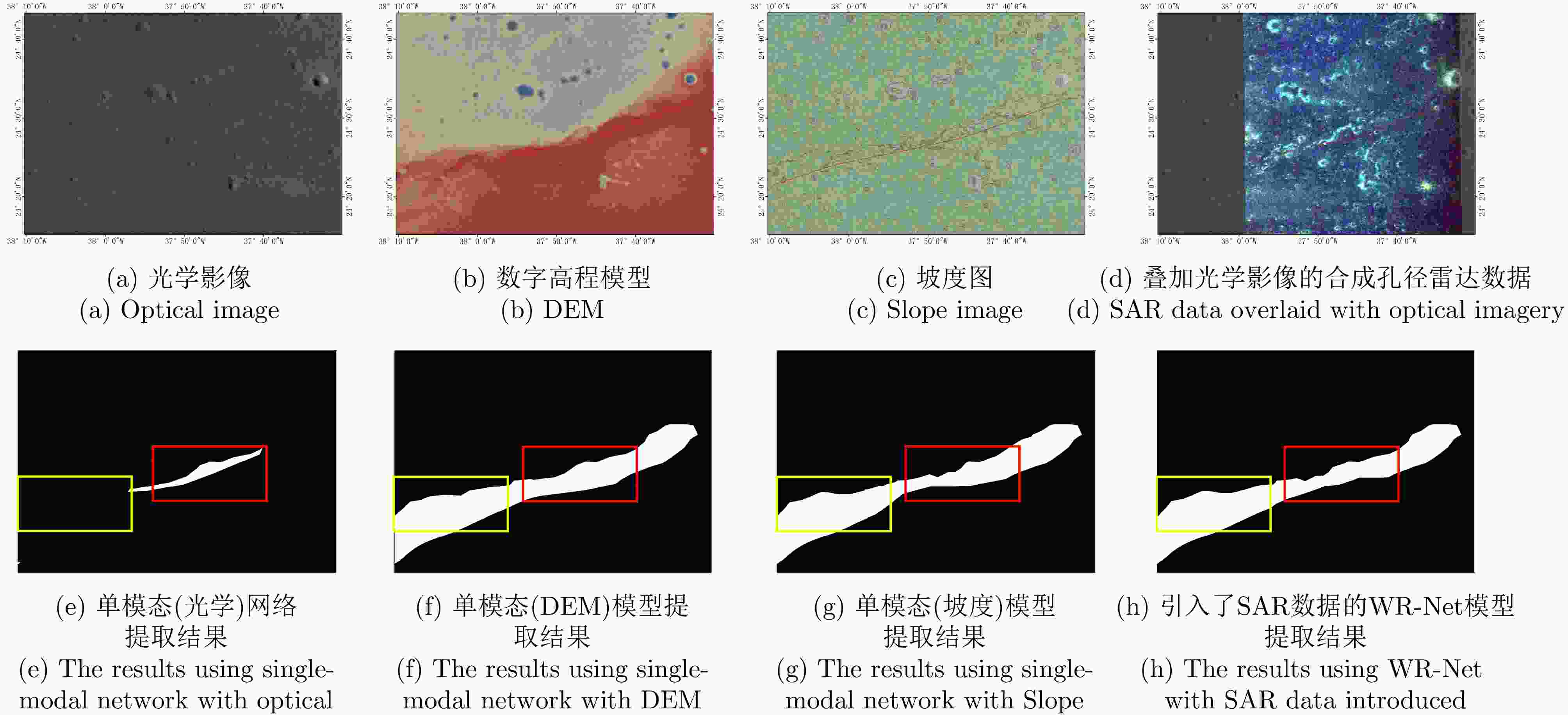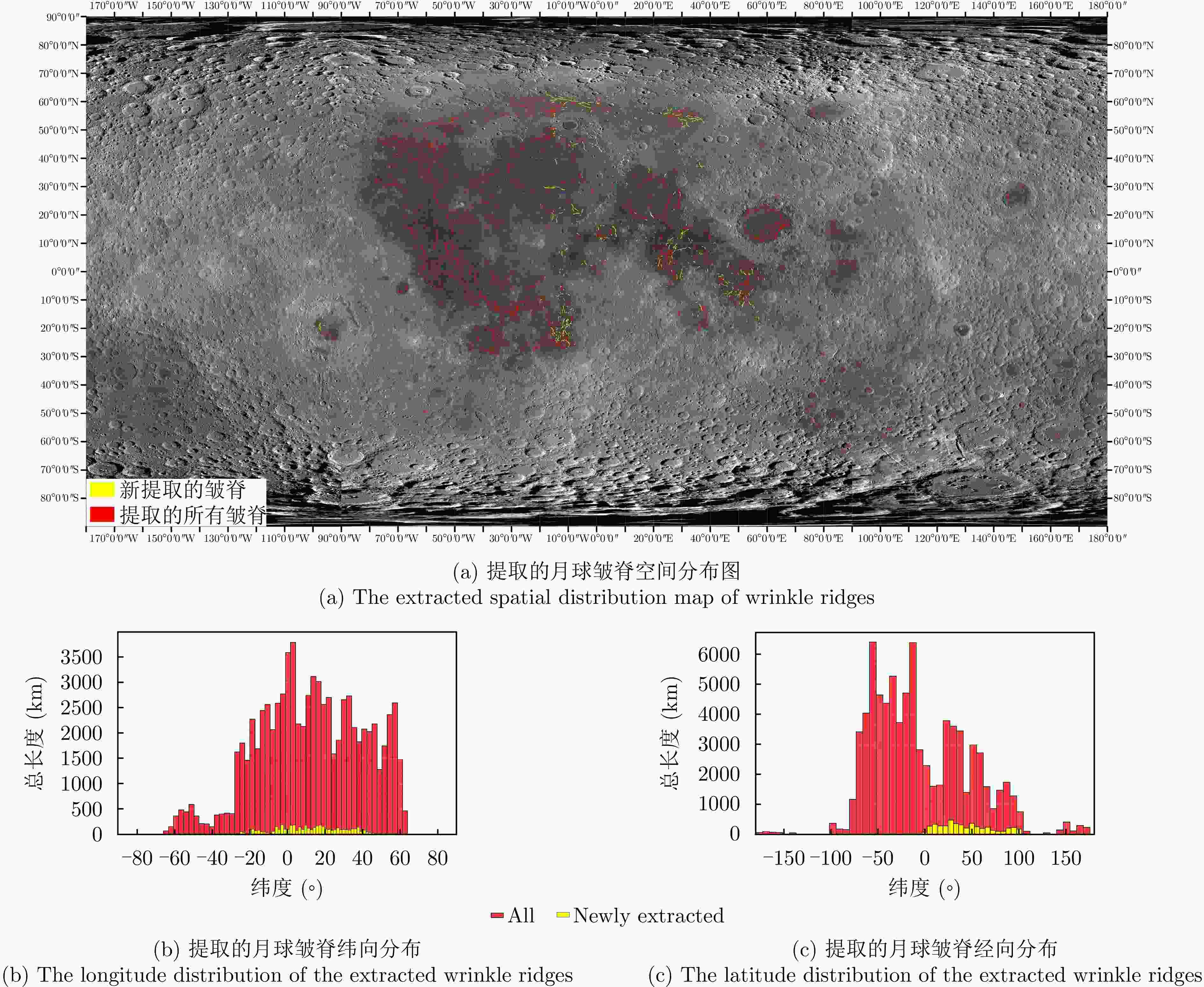 摘要: 月球皱脊是广泛分布于月表月海区域的重要线状构造,对研究月球应力场演化和火山活动历史具有重要意义。传统的皱脊识别与编目主要依赖人工解译,效率低且主观性强。该文提出了一种基于多模态语义分割的皱脊自动提取方法,通过构建高质量的皱脊遥感图像标注数据集,并引入合成孔径雷达(SAR)数据,通过迭代训练构建了基于DeepLabv3+的多模态语义分割网络WR-Net。该网络引入动态融合模块和注意力机制,有效优化了多模态图像的特征提取与融合过程,显著提升了模型的稳健性与精度。在多模态皱脊测试集上,WR-Net取得了优异的性能(Precision=95.516%, Recall=89.963%, F1-Score=92.657%, MIoU=92.944%)。进一步地,该团队利用WR-Net完成了月球南纬70度至北纬70度范围内皱脊的自动识别与提取,并对结果进行了编目与统计。该文提出的方法不仅适用于皱脊的识别,也为月球及其他行星体上类似线状结构的自动提取提供了有效范式。Abstract: Lunar wrinkle ridges are important linear structures that are widely distributed in the mare regions on the lunar surface and are of great importance for studying the evolution of the lunar stress field and the history of volcanic activities. Traditional lunar wrinkle ridge recognition and cataloging mainly rely on manual interpretation, which is inefficient and subjective. In this paper, an automatic lunar wrinkle ridge extraction method based on multimodal semantic segmentation is proposed. By constructing a high-quality lunar wrinkle ridge remote sensing image annotation dataset and introducing synthetic aperture radar data, a DeepLabv3+-based multimodal semantic segmentation network (WR-Net) is constructed through iterative training. A dynamic fusion module and an attention mechanism were introduced into WR-Net, which effectively optimized the feature extraction and fusion process of multimodal images and markedly improved the robustness and accuracy of the model. On the multimodal lunar wrinkle ridge test set, WR-Net achieved excellent performance (Precision = 95.516%, Recall = 89.963%, F1-Score = 92.657%, and MIoU = 92.944%). Furthermore, we used WR-Net to automatically identify and extract the lunar wrinkle ridges from the 70° south latitude to the 70° north latitude of the moon and cataloged and statistically analyzed the results. The proposed method is suitable for the recognition of lunar wrinkle ridges and provides an effective paradigm for the automatic extraction of similar linear structures on the moon and other planetary bodies.