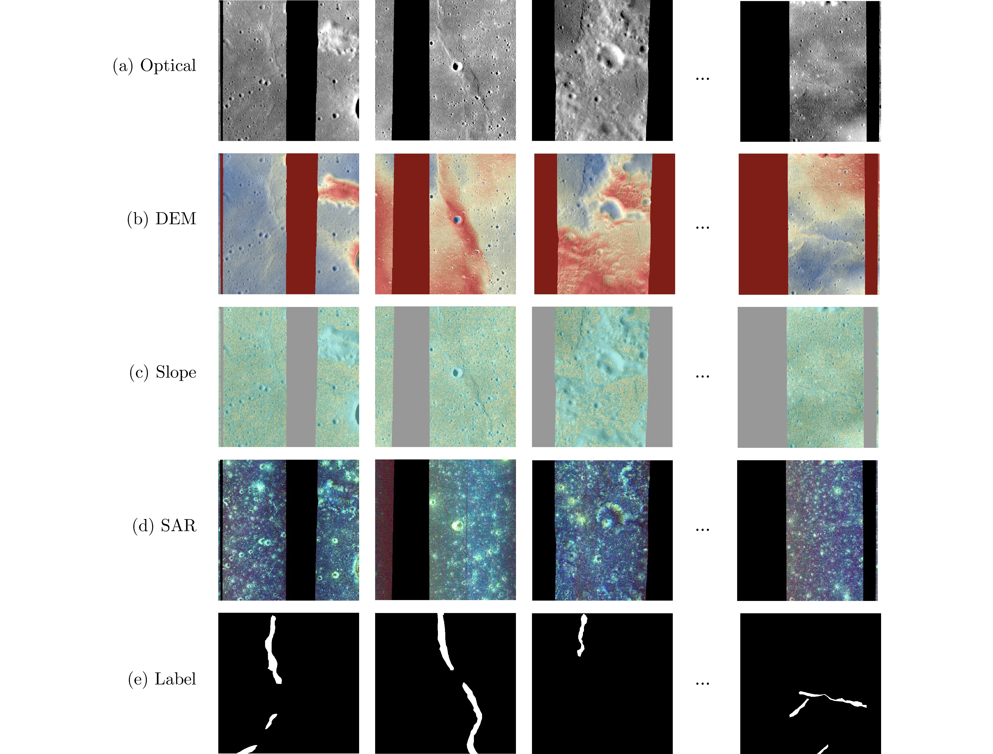 [1] BINDER A B. Post-imbrian global lunar tectonism: Evidence for an initially totally molten Moon[J]. The Moon and the Planets, 1982, 26(2): 117–133. doi: 10.1007/BF00929277. [2] LU Tianqi, ZHU Kai, CHEN Shengbo, et al. The 1:2,500,000-scale global tectonic map of the Moon[J]. Science Bulletin, 2022, 67(19): 1962–1966. doi: 10.1016/j.scib.2022.08.017. [3] WATTERS T R. Wrinkle ridge assemblages on the terrestrial planets[J]. Journal of Geophysical Research: Solid Earth, 1988, 93(B9): 10236–10254. doi: 10.1029/JB093iB09p10236. [4] SOLOMON S C and HEAD J W. Vertical movement in mare basins: Relation to mare emplacement, basin tectonics, and lunar thermal history[J]. Journal of Geophysical Research: Solid Earth, 1979, 84(B4): 1667–1682. doi: 10.1029/JB084iB04p01667. [5] YUE Zongyu, LI Wei, DI Kaichang, et al. Global mapping and analysis of lunar wrinkle ridges[J]. Journal of Geophysical Research: Planets, 2015, 120(5): 978–994. doi: 10.1002/2014JE004777. [6] SHARPTON V L and HEAD III J W. Stratigraphy and structural evolution of southern Mare Serenitatis: A reinterpretation based on Apollo Lunar Sounder Experiment data[J]. Journal of Geophysical Research: Solid Earth, 1982, 87(B13): 10983–10998. doi: 10.1029/JB087iB13p10983. [7] ANDREWS-HANNA J C, BESSERER J, HEAD III J W, et al. Structure and evolution of the lunar Procellarum region as revealed by GRAIL gravity data[J]. Nature, 2014, 514(7520): 68–71. doi: 10.1038/nature13697. [8] RAVAT D, PURUCKER M E, and OLSEN N. Lunar magnetic field models from lunar prospector and SELENE/Kaguya along-track magnetic field gradients[J]. Journal of Geophysical Research: Planets, 2020, 125(7): e2019JE006187. doi: 10.1029/2019JE006187. [9] WATTERS T R. Lunar wrinkle ridges and the evolution of the nearside lithosphere[J]. Journal of Geophysical Research: Planets, 2022, 127(3): e2021JE007058. doi: 10.1029/2021JE007058. [10] SPUDIS P D, MCGOVERN P J, and KIEFER W S. Large shield volcanoes on the Moon[J]. Journal of Geophysical Research: Planets, 2013, 118(5): 1063–1081. doi: 10.1002/jgre.20059. [11] MONTÉSI L G J and ZUBER M T. Clues to the lithospheric structure of Mars from wrinkle ridge sets and localization instability[J]. Journal of Geophysical Research: Planets, 2003, 108(E6): 5048. doi: 10.1029/2002JE001974. [12] WATTERS T R and JOHNSON C L. Lunar tectonics[M]. WATTERS T R and SCHULTZ R A. Planetary Tectonics. Cambridge: Cambridge University Press, 2010: 121–182. doi: 10.1017/CBO9780511691645.005. [13] THOMPSON T J, ROBINSON M S, WATTERS T R, et al. Global lunar wrinkle ridge identification and analysis[C]. The 48th Lunar and Planetary Science Conference, The Woodlands, USA, 2017: 2665. [14] VERMA N, BHATT M, DANGI M, et al. Exploring water-ice deposits in lunar polar craters with Chandrayaan-2 DFSAR data[J]. Icarus, 2025, 432: 116492. doi: 10.1016/j.icarus.2025.116492. [15] NOZETTE S, SPUDIS P, BUSSEY B, et al. The lunar reconnaissance orbiter miniature radio frequency (Mini-RF) technology demonstration[J]. Space Science Reviews, 2010, 150(1): 285–302. doi: 10.1007/s11214-009-9607-5. [16] ONO T, KUMAMOTO A, NAKAGAWA H, et al. Lunar radar sounder observations of subsurface layers under the nearside Maria of the moon[J]. Science, 2009, 323(5916): 909–912. doi: 10.1126/science.1165988. [17] CAHILL J T S, THOMSON B J, PATTERSON G W, et al. The Miniature Radio Frequency instrument’s (Mini-RF) global observations of Earth’s Moon[J]. Icarus, 2014, 243: 173–190. doi: 10.1016/j.icarus.2014.07.018. [18] TARIQ A, YAN Jianguo, DENG Qingyun, et al. Analysis and mapping of lunar wrinkle ridges (LWRs) using automated LWRs detection process with LROC-WAC and LOLA data[J]. Frontiers in Astronomy and Space Sciences, 2023, 10: 1037395. doi: 10.3389/fspas.2023.1037395. [19] ROBBINS S J, ANTONENKO I, KIRCHOFF M R, et al. The variability of crater identification among expert and community crater analysts[J]. Icarus, 2014, 234: 109–131. doi: 10.1016/j.icarus.2014.02.022. [20] ZHANG Sheng, LIU Jianzhong, MICHAEL G, et al. Detecting lunar linear structures based on multimodal semantic segmentation: The case of sinuous rilles[J]. Remote Sensing, 2024, 16(9): 1602. doi: 10.3390/rs16091602. [21] HUANG Liwei, JIANG Bitao, LV Shouye, et al. Deep-learning-based semantic segmentation of remote sensing images: A survey[J]. IEEE Journal of Selected Topics in Applied Earth Observations and Remote Sensing, 2024, 17: 8370–8396. doi: 10.1109/JSTARS.2023.3335891. [22] HU Yifan, XIAO Jun, LIU Lupeng, et al. Detection of small impact craters via semantic segmenting lunar point clouds using deep learning network[J]. Remote Sensing, 2021, 13(9): 1826. doi: 10.3390/rs13091826. [23] WAGNER R V, SPEYERER E J, ROBINSON M S, et al. New mosaicked data products from the LROC team[C]. The 46th Lunar and Planetary Science Conference, The Woodlands, USA, 2015: 1473. [24] BARKER M K, MAZARICO E, NEUMANN G A, et al. A new lunar digital elevation model from the Lunar Orbiter Laser Altimeter and SELENE Terrain Camera[J]. Icarus, 2016, 273: 346–355. doi: 10.1016/j.icarus.2015.07.039. [25] XU Zihan, ZHAO Fei, LU Pingping, et al. A robust digital elevation model-based registration method for Mini-RF/Mini-SAR images[J]. Remote Sensing, 2025, 17(4): 613. doi: 10.3390/rs17040613. [26] ZHAO Fei, LU Pingping, MENG Tingyu, et al. Selection of landing sites for the Chang’E-7 mission using multi-source remote sensing data[J]. Remote Sensing, 2025, 17(7): 1121. doi: 10.3390/rs17071121. [27] RANEY R K, CAHILL J T S, PATTERSON G W, et al. The m-chi decomposition of hybrid dual-polarimetric radar data with application to lunar craters[J]. Journal of Geophysical Research: Planets, 2012, 117(E12): E00H21. doi: 10.1029/2011JE003986. [28] PIZER S M, AMBURN E P, AUSTIN J D, et al. Adaptive histogram equalization and its variations[J]. Computer Vision, Graphics, and Image Processing, 1987, 39(3): 355–368. doi: 10.1016/S0734-189X(87)80186-X. [29] RAMPONI G. A cubic unsharp masking techniq