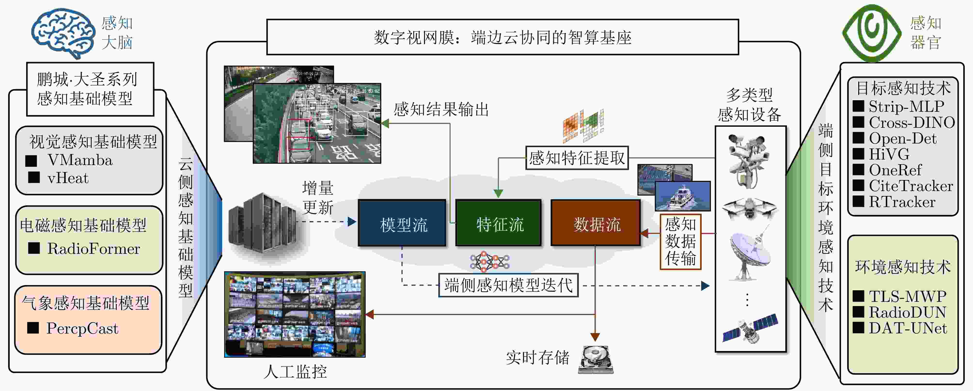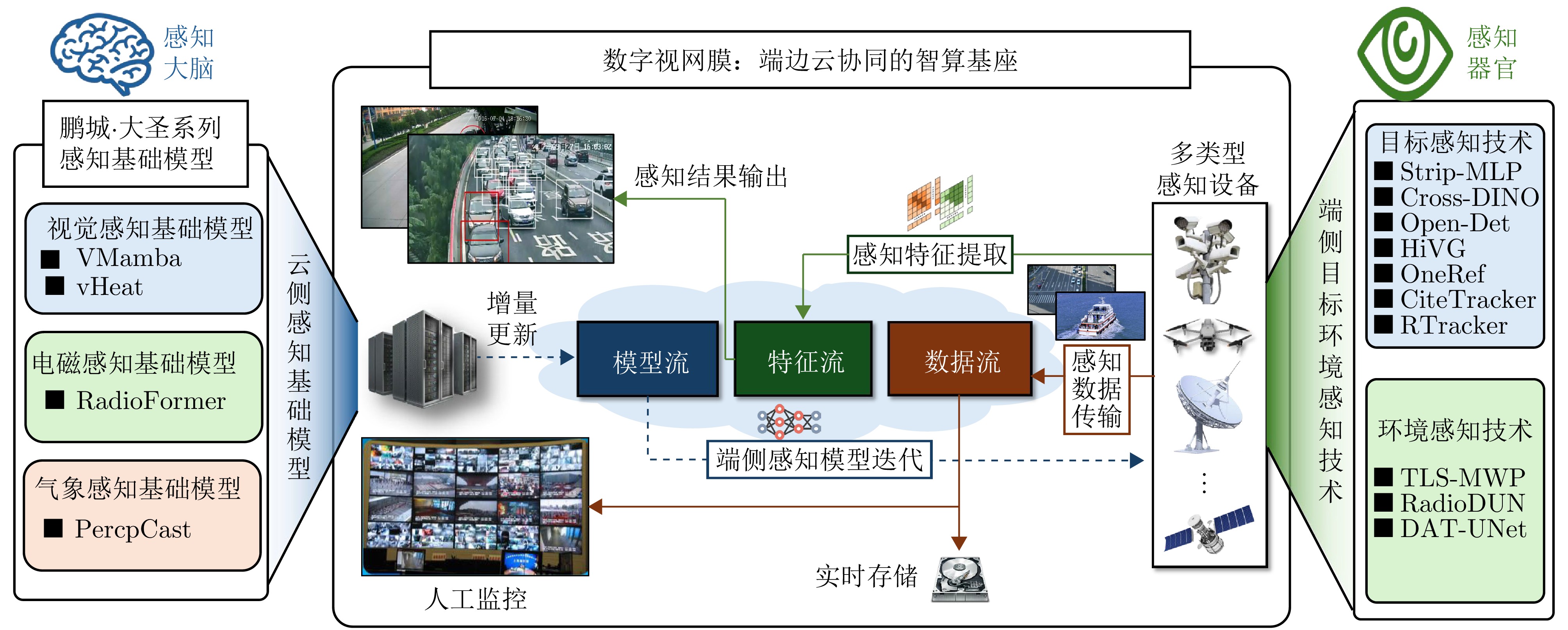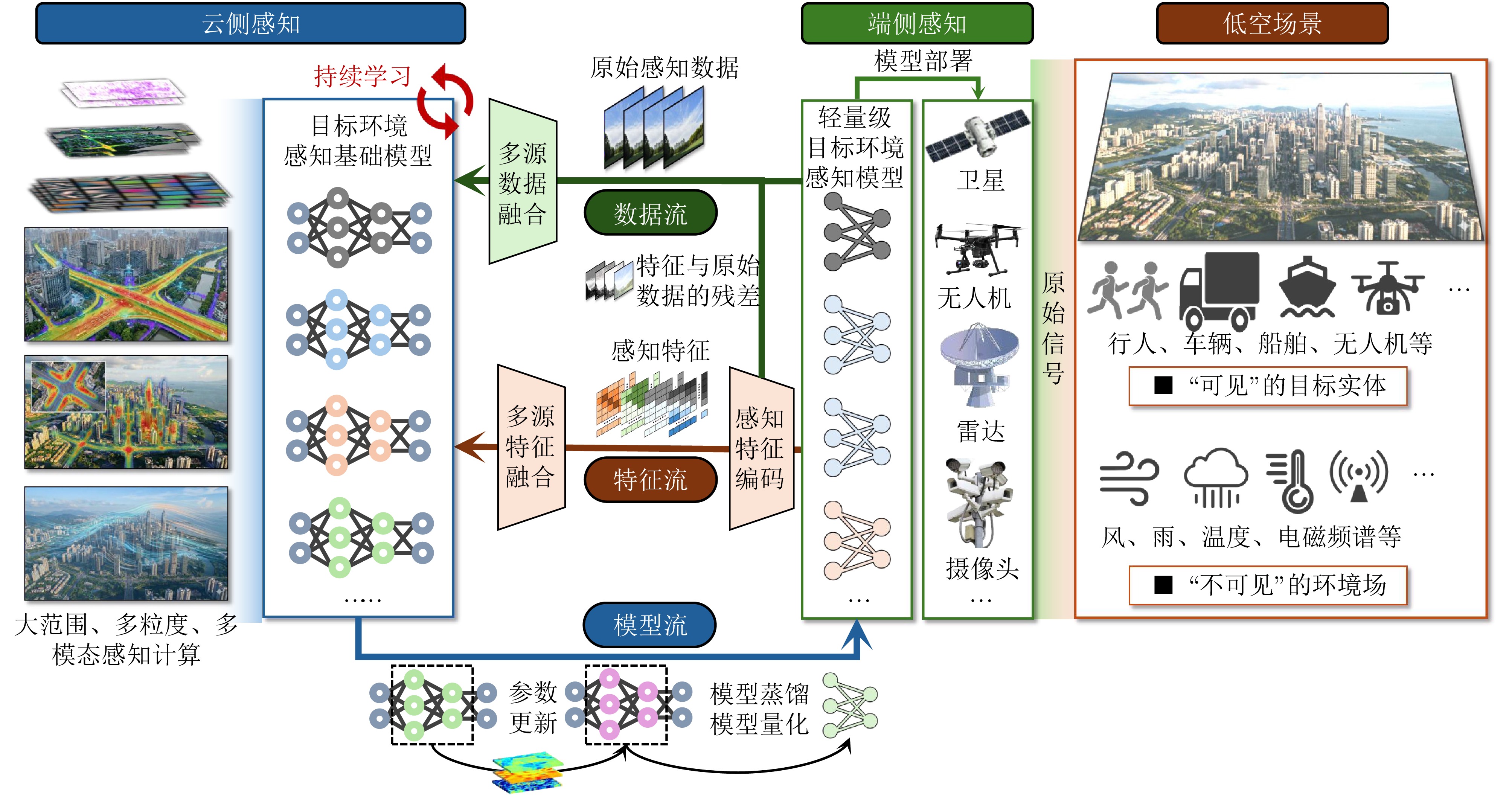 摘要: 低空智能感知技术旨在将低空目标与环境的物理空间转化为可计算的数字空间,是支撑低空经济活动安全有序开展的基础。该文系统分析了当前低空场景下大规模视觉感知、目标感知以及环境感知等技术的发展现状与面临的挑战。针对现有挑战,该文提出了基于数字视网膜端边云协同架构的低空主动感知网,并从整体网络架构、云侧基础模型底座、端侧目标与环境感知技术等维度,详细阐述了其核心机制与关键技术。最后,通过初步实验,验证了该文所提感知网络在空地带宽受限条件下实现高效协同感知计算的有效性。Abstract: Low-altitude perception technology aims to transform the physical space of low-altitude targets and environments into a computable digital space, providing a foundation for the safe and organized development of low-altitude economic activities. This paper systematically examines the current progress and challenges of technologies such as large-scale visual perception, object detection, and environmental sensing in low-altitude scenarios. To address these challenges, we introduce a low-altitude active perception network based on the digital retina featuring a collaborative architecture that integrates end, edge, and cloud computing. The key mechanisms and methods are outlined across various aspects, including the overall network structure, cloud-based foundation models, and end-based object and environmental perception technologies. Early applications and experimental results confirm the effectiveness of the proposed network in enabling efficient joint perception under bandwidth limitations.