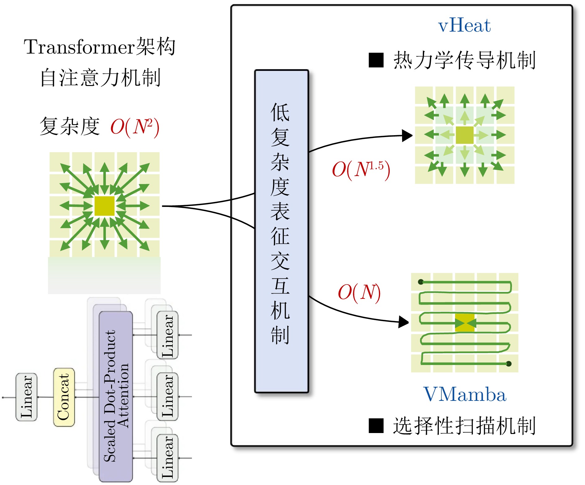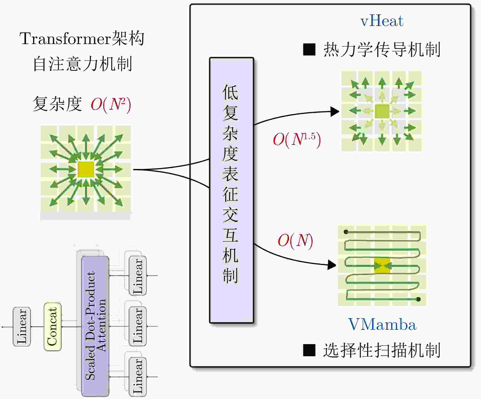 机制:VMamba引入二维选择性扫描(SS2D)实现O(N)复杂度;vHeat基于热传导算子(HCO)在频域内进行自适应特征扩散。电磁环境感知 RadioFormer 挑战:低空复杂环境下的电磁空间极度稀疏观测(如 1%000 采样率)。