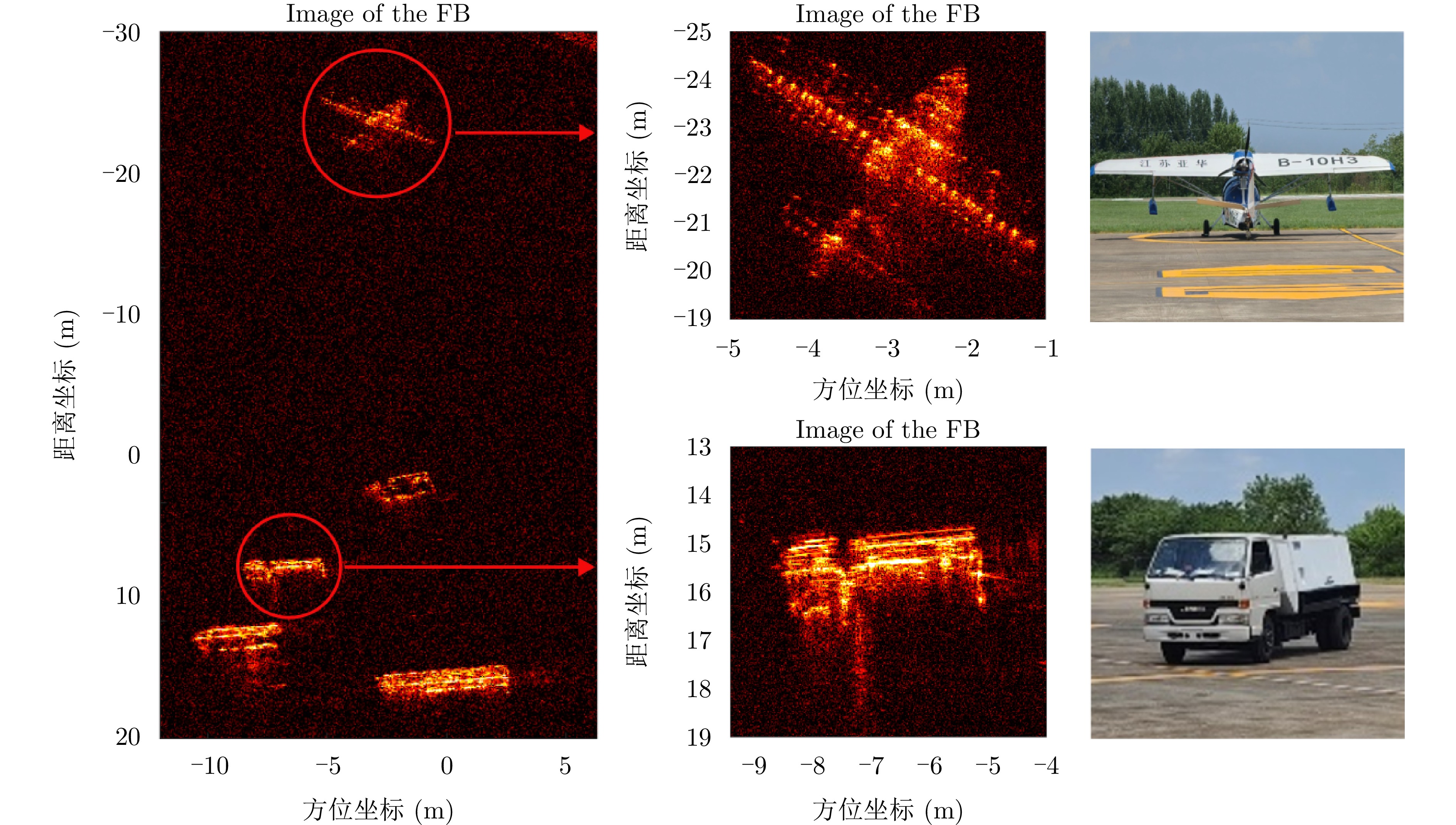 摘要: 多子带融合技术是突破雷达硬件带宽限制、提升图像分辨率的重要途径。相较于非参数化方法,基于散射模型的参数化方法在抑制噪声与实现超分辨成像方面优势显著;然而,现有基于几何绕射理论的模型由于缺乏对目标结构特性的描述,难以准确表征稀疏场景中的人造金属目标的频率响应特性。为此,该文提出一种面向稀疏场景中的人造金属目标的多子带融合方法。首先,构建了简化属性散射中心(SASC)模型,通过引入散射体长度等结构参数对频谱的影响,增强了对复杂结构散射特性的刻画能力。其次,针对该模型的阶数估计问题,提出一种改进的最大奇异值差分准则,以实现模型阶数的稳健判定。在此基础上,进一步设计了一种广义松弛算法,能够对 SASC 模型进行高精度参数估计,从而完成多子带信号的有效融合。实验结果表明,所提算法在的保持目标结构的清晰与完整的基础上,完成了相对于单子带分辨率的提升6.7倍提升。Abstract: Multiband fusion technology is essential for enhancing radar image resolution by overcoming the hardware bandwidth limits of radar systems. Compared with nonparametric approaches, parametric methods based on scattering models offer notable advantages in noise suppression and super-resolution imaging. However, models based on the geometric theory of diffraction (GTD) are inherently limited for analyzing scatterers with continuous structures, as GTD is an asymptotic high-frequency method suited primarily for discrete scattering centers. Consequently, it fails to adequately characterize the frequency response of such continuous scatterers. To address this issue, a multiband fusion method tailored for targets that can be sparsely represented by strong scattering centers is proposed. First, a simplified attributed scattering center (SASC) model is constructed, which improves the characterization of scattering properties by incorporating the influence of the scatterer length on the frequency spectrum. Second, to address the model order estimation problem, a modified maximum singular value difference criterion is introduced to robustly estimate the model order. Building on this, a generalized RELAX -based algorithm is designed to achieve high-precision parameter estimation for the SASC model, thereby enabling effective fusion of multiband signals. Experimental results demonstrate that the proposed algorithm achieves a 6.7-fold improvement in resolution relative to the single sub-band case, while preserving the clarity and integrity of the target structure.