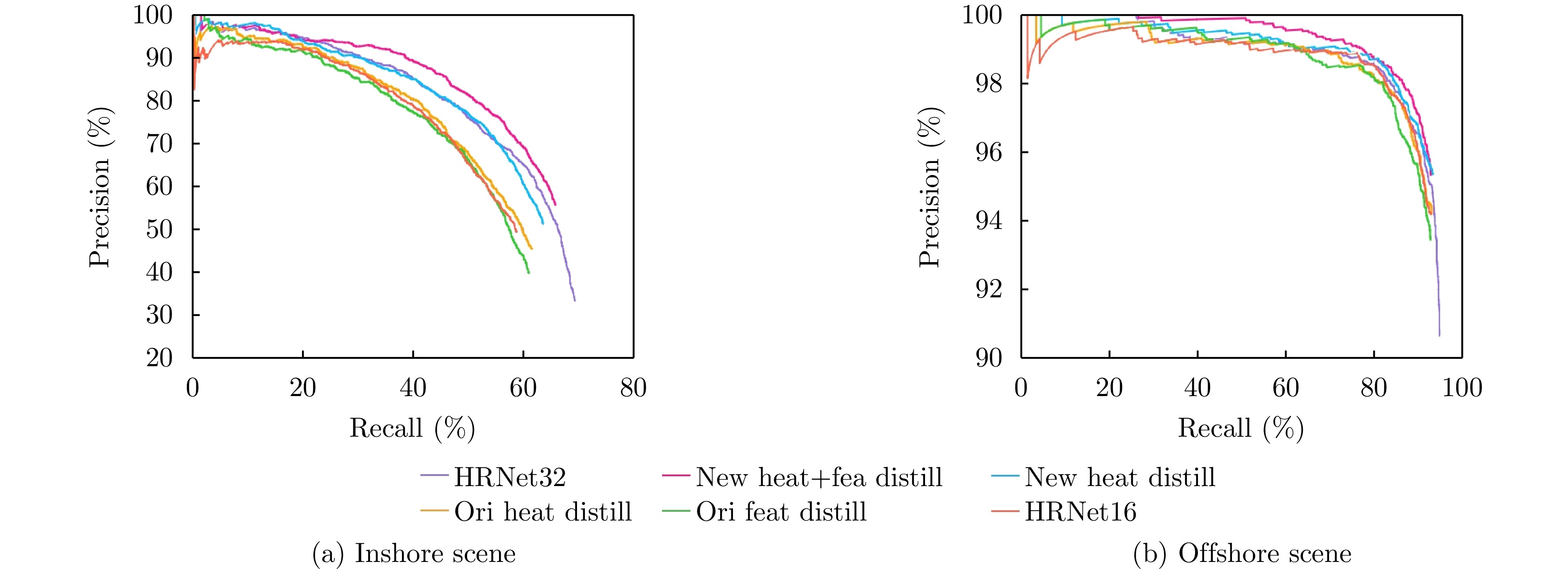 表  3  Detection performance comparison of different distillation methods under inshore and offshore scenes