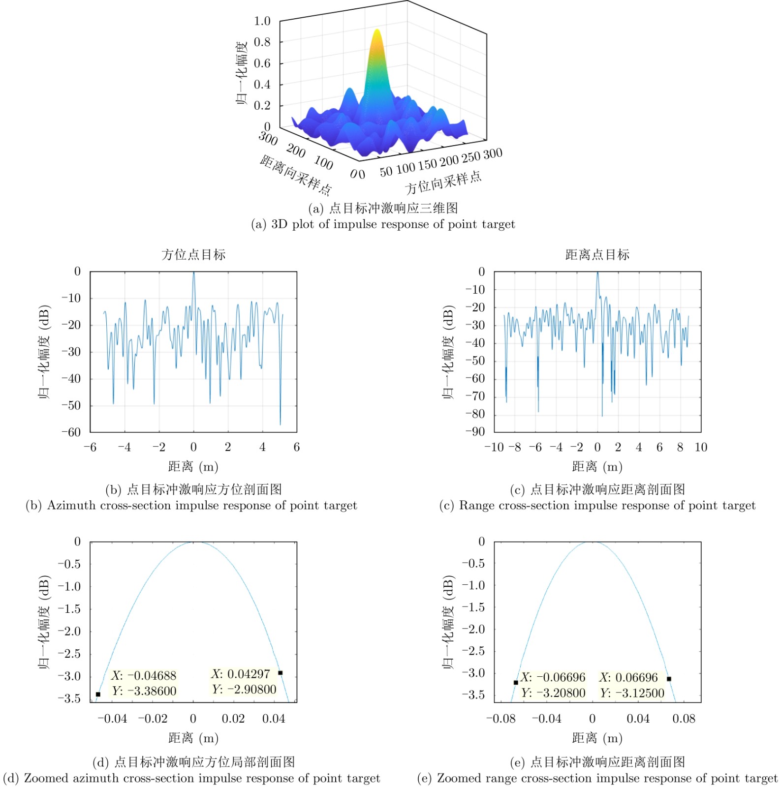 参数 数值 波段 Ku 方位向天线长度 0.5 m 子阵数 4 系统带宽 1.2 GHz 子阵发射信号带宽 300 MHz 各子阵发射峰值功率 200 W 发射信号脉冲宽度 30 μs 飞行平台速度 80 m/s 作用距离 25 km -
