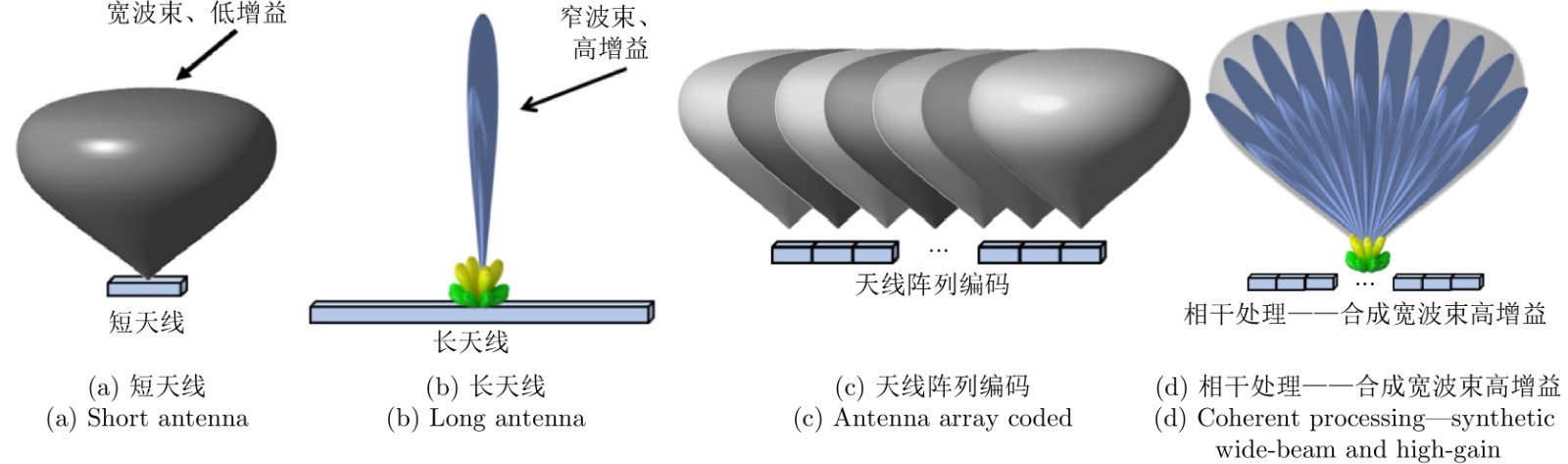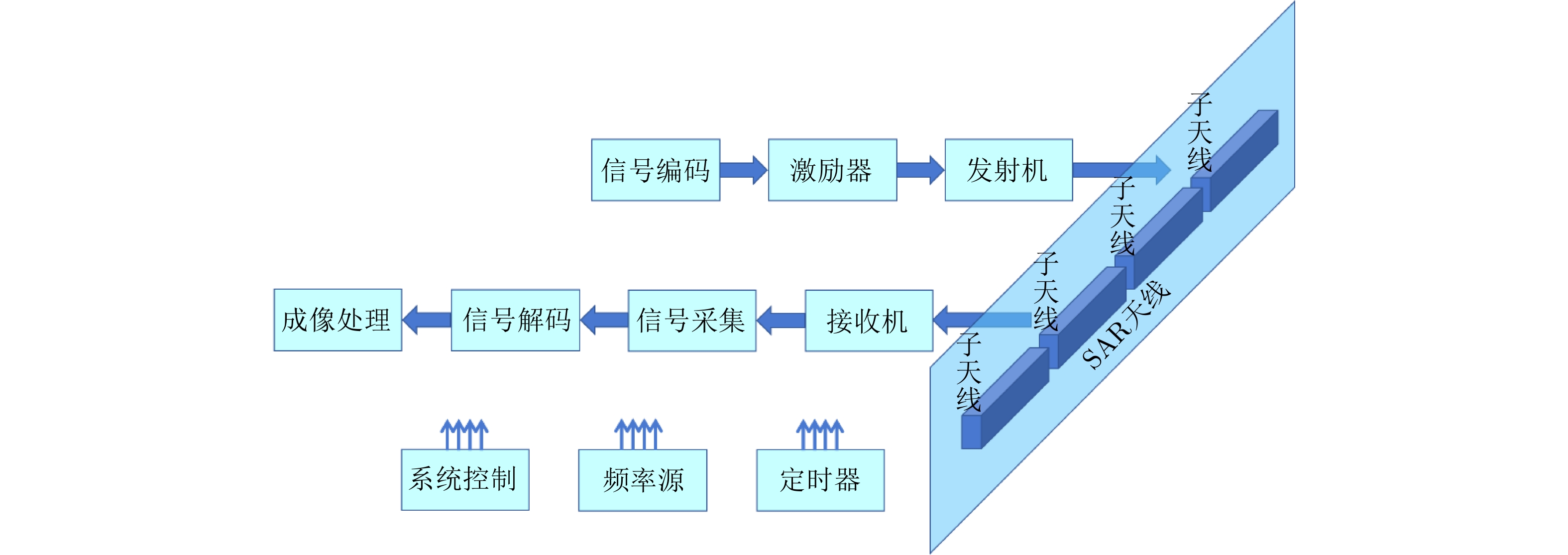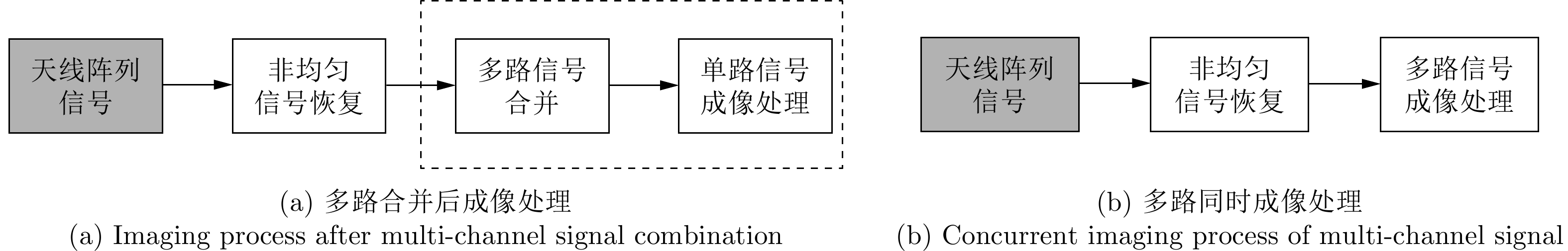 摘要: 合成孔径雷达(SAR)方位理论分辨率为天线长度的二分之一,使得SAR高分辨率、远距离成像对天线的要求相互矛盾。该文提出了对天线阵列编码的合成孔径成像方法,通过将长天线分解为子阵、发射不同的信号进行阵列编码、协同工作,提高空间能量利用率,实现子阵小天线的高分辨率以及全阵列长天线的高增益,从而解决了高分辨率与远距离成像难以同时兼顾的问题。在介绍阵列编码基本概念的基础上,给出了阵列编码雷达成像模型及处理流程,对系统的分辨率、信噪比、脉冲重复频率(PRF)及距离方位模糊等性能进行了理论分析与探讨。在飞行测试实验中,用4个子阵获取了方位分辨率优于0.1 m、幅宽超过8 km的连续条带图像,打破了传统SAR采用聚束模式实现高分辨率时只能小范围成像的制约,新方法为解决传统SAR的原理限制问题提供了有效的途径。同时,通过阵列编码扩展了信号维度,为雷达系统能力的增强提供了技术基础。理论分析及实验结果验证了该文天线阵列编码方法的显著优势及工程实现的可行性。Abstract: The theoretical azimuth resolution of Synthetic Aperture Radar (SAR) is half the antenna length, presenting conflicting requirements on the antenna for SAR high-resolution and long-distance imaging. In this paper, a method for antenna array coding synthetic aperture imaging is proposed. By dividing long antennas into subarrays to work together, the space energy utilization rate can be improved, a high resolution of the small antennas of the subarrays and a high gain of the long antennas of the whole array are achieved, and the problem that it is difficult to balance high-resolution and far-distance imaging is solved. On the basis of introducing the basic concept of array coding, the imaging model and processing flow of array coding radar are given, and the system performance metrics, such as resolution, signal-to-noise ratio, Pulse Repetition Frequency (PRF), and range-azimuth ambiguity, are theoretically analyzed and discussed. In a flight test experiment, a 0.5 m antenna is divided into four sub-arrays, and a strip-map image with a resolution of 0.1 m and a swath width of 8 km is obtained, which breaks the restriction of small-area imaging when traditional SAR adopts the spotlight mode to achieve high resolution. This new method effectively solves the limitations of traditional SAR and extends the signal dimension, providing a technical basis for enhancing radar system capability. Theoretical analysis and experimental results verify the considerable advantages and engineering implementation feasibility of the proposed method.