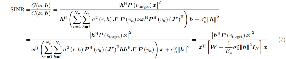 输入:干扰能量分布矩阵${\boldsymbol{\sigma }}$,噪声能量${{\boldsymbol{\sigma }}_n}$,目标散射系数${\alpha _{\rm target}}$ 输出:优化发射波形x,优化接收滤波器h 1 Initialization: 初始化发射波形${{\boldsymbol{x}}_0}$,初始化接收滤波器${{\boldsymbol{h}}_0}$,参