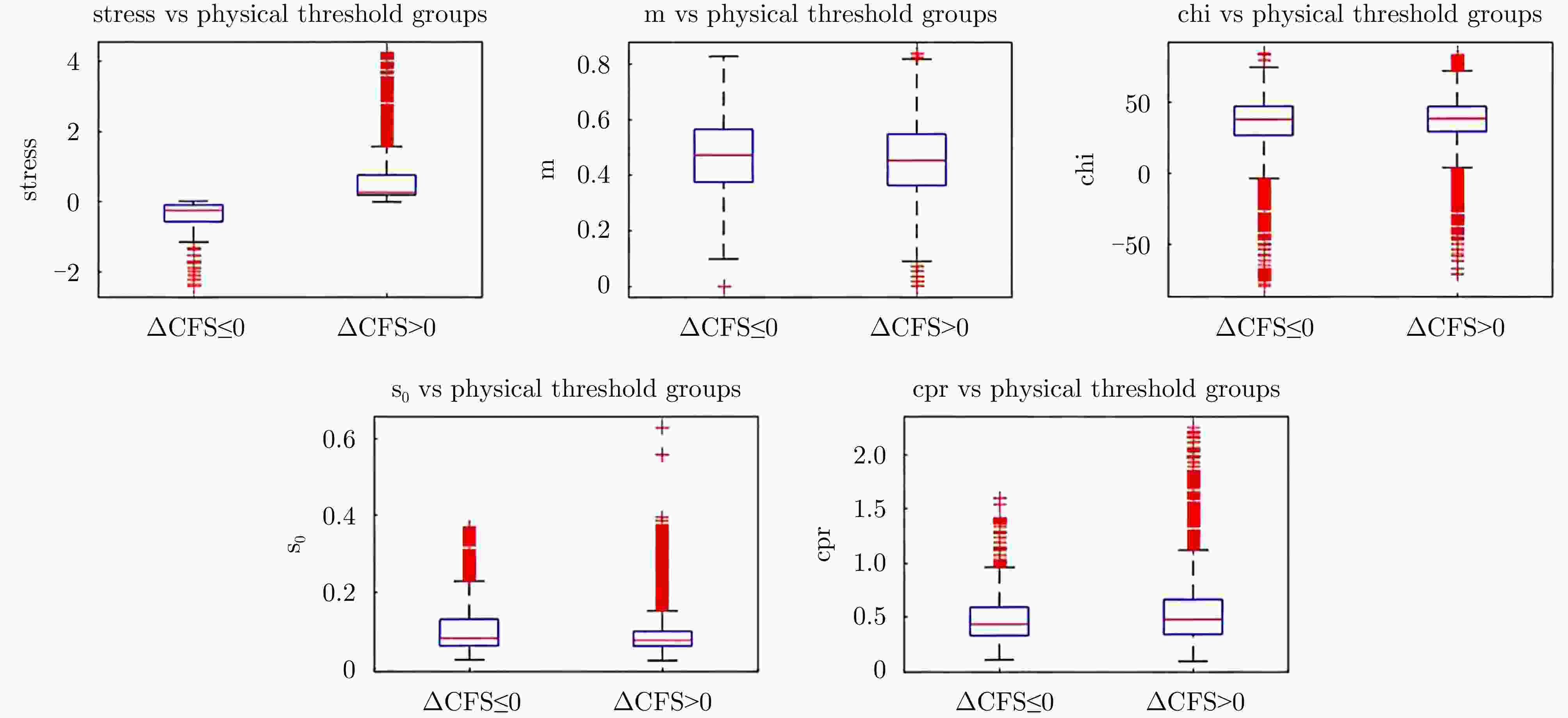 陡坎 ID 部位 S0均值 CPR均值 m均值 χ均值 1 下盘 0.077 0.506 0.489 38.918 2 上盘 0.057 0.469 0.342 37.813 下盘 0.075 0.439 0.528 44.549 3 上盘 0.065 0.564 0.452 36.077 下盘 0.075 0.432 0.503 42.140 4 上盘 0.074 0.512 0.469 39.509 下盘 0.106 0.392 0.554 40.286 5 上盘 0.102 0.370 0.543 38.980 下盘 0.126 0.502 0.544 43.609 6 上盘 0.087 0.449 0.518 37.791 下盘 0.089 0.379 0.572 39.166 7 上盘 0.069 0.534 0.459 39.438 下盘 0.079 0.186 0.533 38.118 8 上盘 0.064 0.593 0.425 34.996 下盘 0.175 0.438 0.550 32.211 9 上盘 0.094 0.398 0.544 38.526 下盘 0.116 0.406 0.559 36.884 10 上盘 0.052 0.758 0.369 30.306 下盘 0.071 0.579 0.427 35.291 11 上盘 0.065 0.732 0.377 27.730 下盘 0.071 0.671 0.410 31.471 12 上盘 0.086 0.571 0.449 34.133 下盘 0.080 0.618 0.430 33.592 13 上盘 0.089 0.594 0.439 34.137 下盘 0.095 0.644 0.405 32.008 14 上盘 0.065 0.887 0.348 17.569 下盘 0.064 0.910 0.327 18.737 均值 上盘 0.073 0.572 0.441 34.385 下盘 0.090 0.507 0.488 36.212 表 3 研究区域叶状陡坎形态参数与库仑应力统计结果