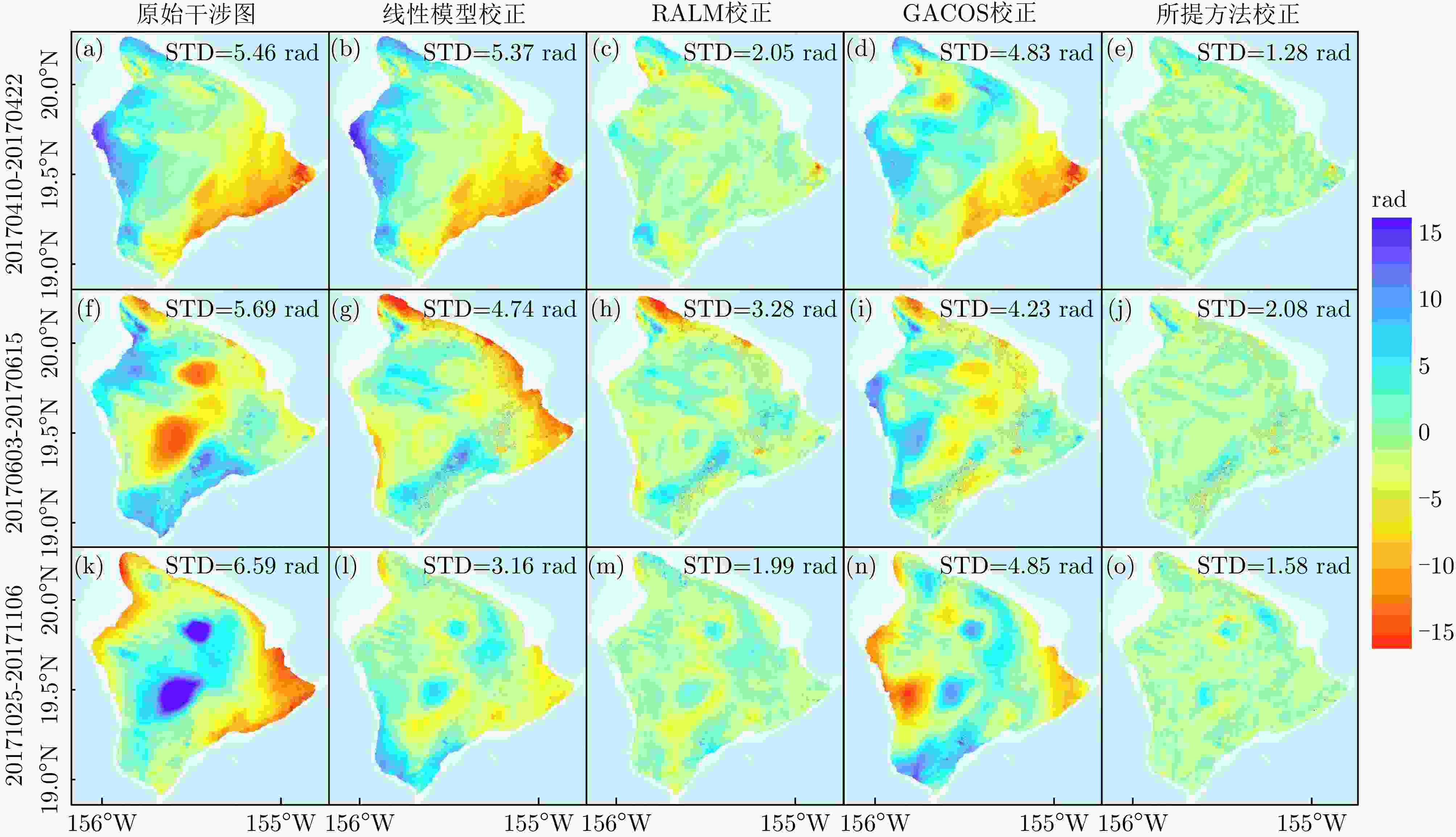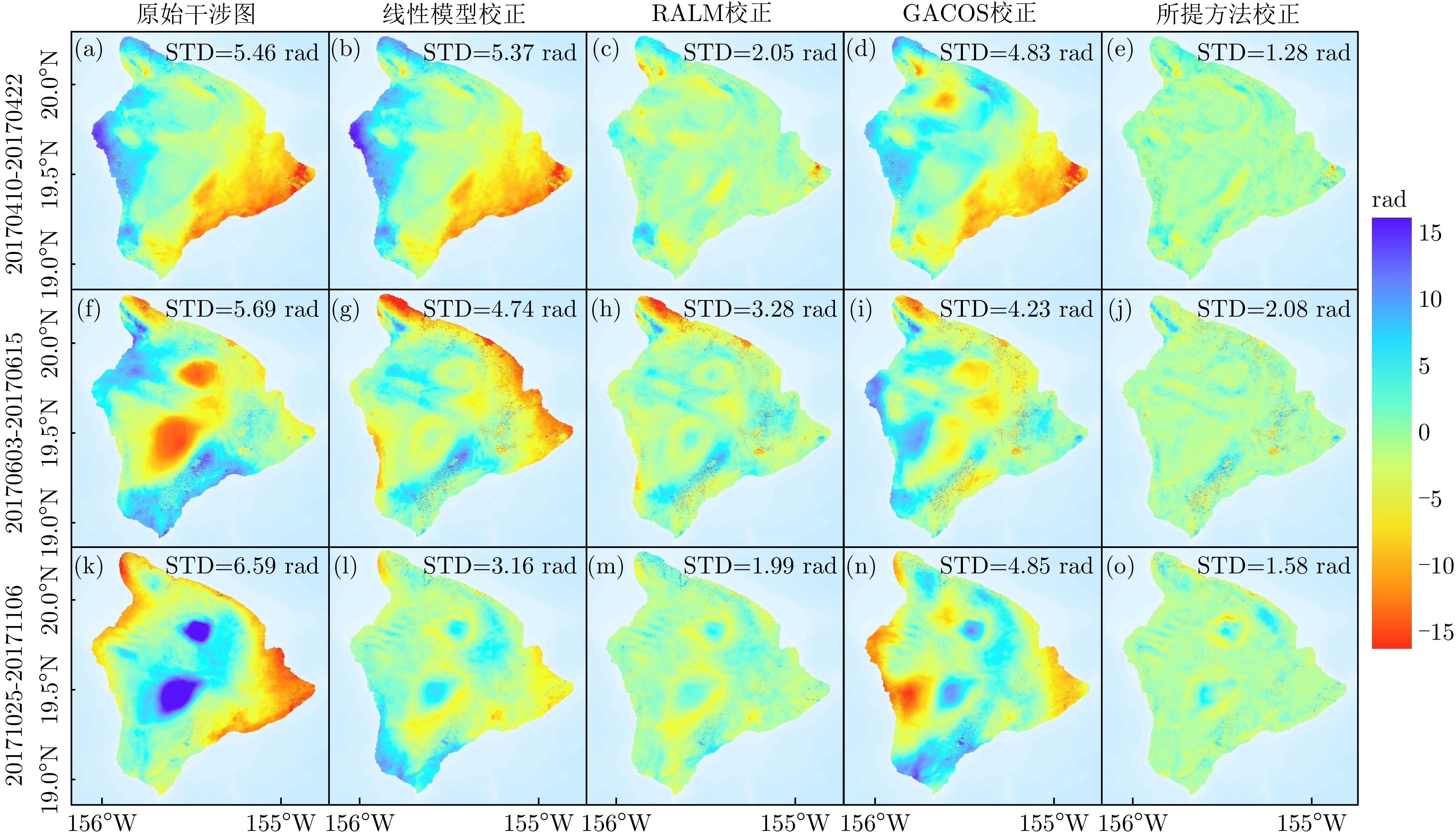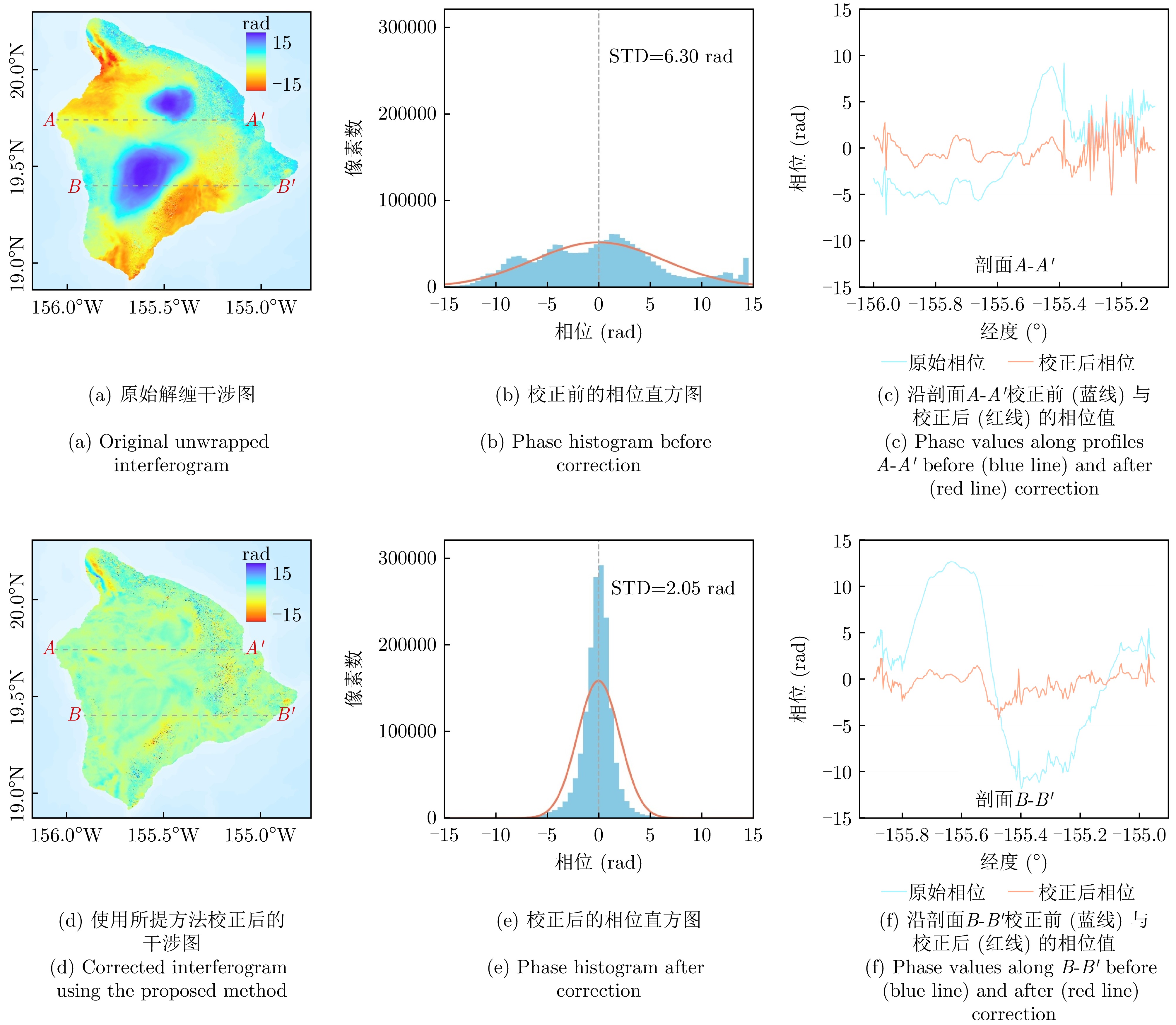 新为True (锁定)。9: 结束如果 10: 结束循环 11: 返回 最终锚点集合$ {S}_{A} $。 表 1 夏威夷不同校正方法的相位标准差统计对比