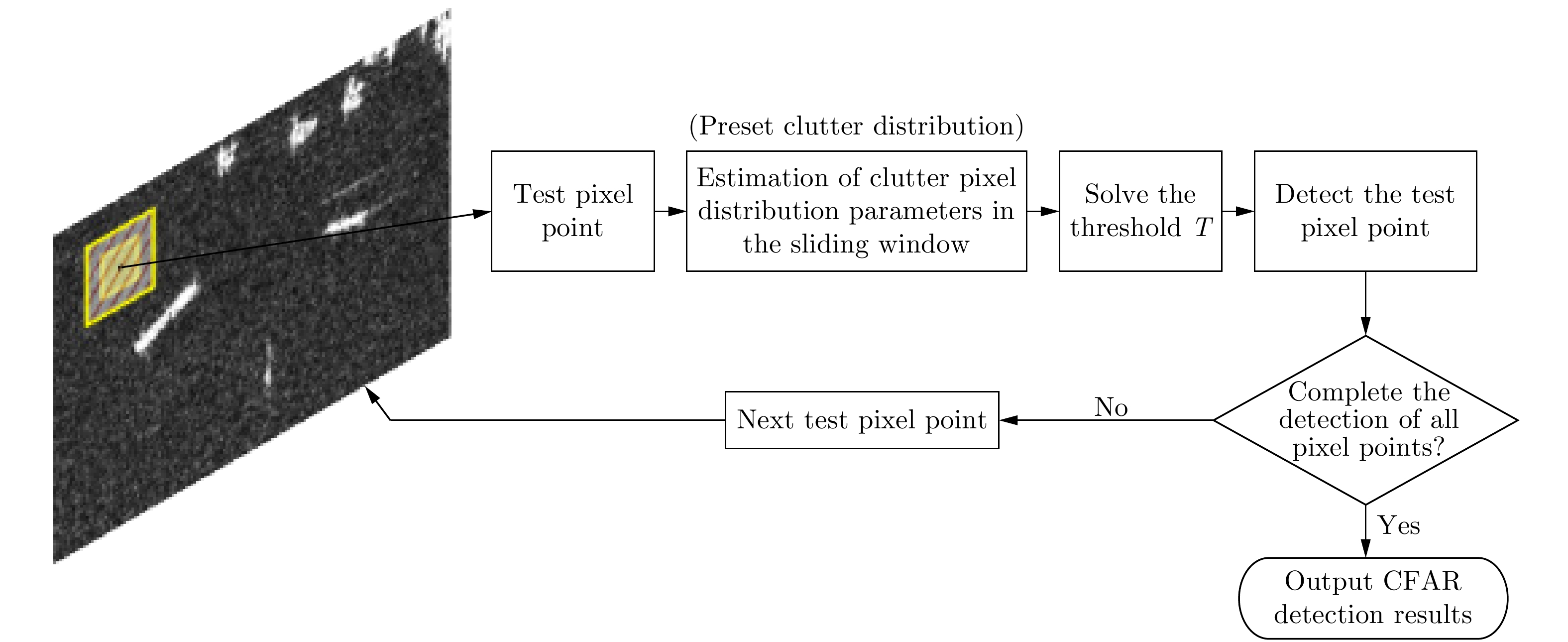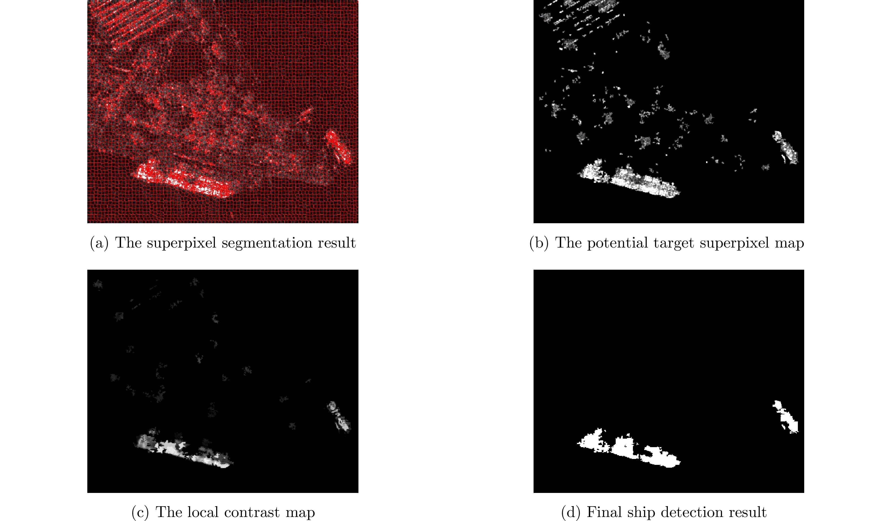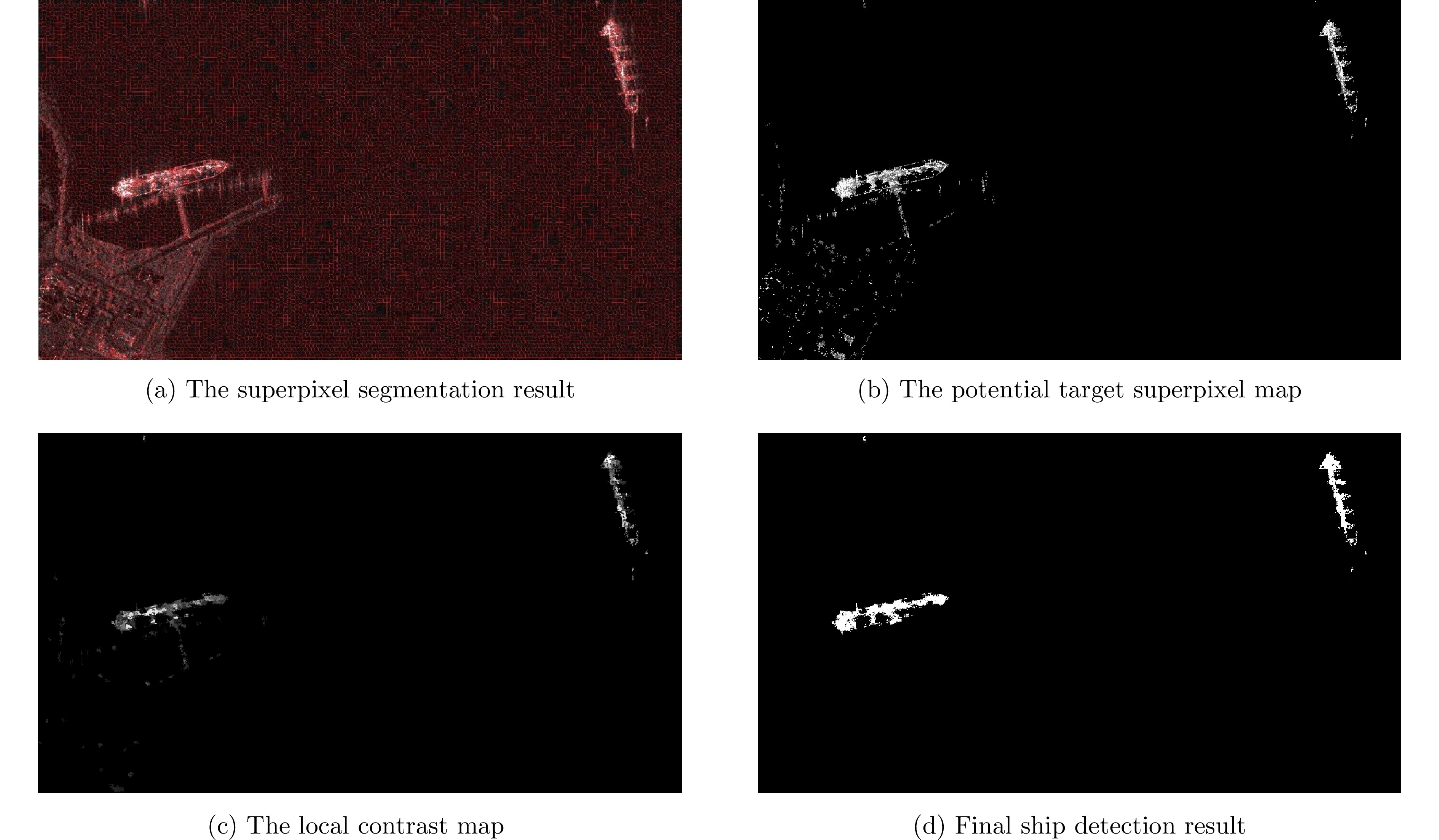 Synthetic Aperture Radar (SAR) image ship target detection has attracted considerable attention. As a state-of-the-art method, the Constant False Alarm Rate (CFAR) detection algorithm is often used in SAR image ship target detection. However, the detection performance of the classical CFAR is easily affected by speckle noise. Moreover, the detection results based on the sliding window are sensitive to the size of the sliding window. Thus, ensuring that there are no target pixels in the cluttered background is difficult, which easily leads to a high computational load. This study proposes a new ship target detection method for SAR images based on fast superpixel-based non-window CFAR to solve these problems. The superpixel generation method of Density Based Spatial Clustering of Applications with Noise is used to generate superpixels for SAR images. Under the assumption that SAR data obey the Rayleigh mixture distribution, we define a superpixel dissimilarity measure. Then, the clutter parameters of each pixel are accurately estimated using superpixels, which can avoid the shortcomings of the traditional CFAR sliding window even in the case of multiple targets. A local contrast based on the Coefficient of Variation (CoV) of the SAR image is proposed to optimize the CFAR detection result, which can eliminate a large number of false alarms from man-made targets in urban areas. The experimental results of five real SAR images show that the proposed method for ship target detection in SAR images with different scenes is robust compared with other state-of-the-art methods.