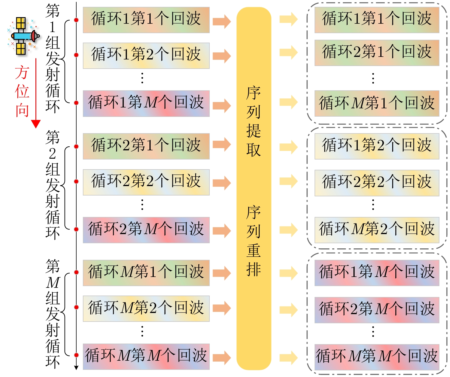 Clutter suppression is an important technology for moving target indication. However, for Bistatic Synthetic Aperture Radar (BiSAR) moving target indication, traditional space-time adaptive processing and displaced phase center antenna methods cannot achieve the expected clutter suppression because of the strong coupling nonlinearity and nonstationarity of clutter. To address the aforementioned challenge, this study proposes a dual-channel clutter cancellation processing method via space-time decoupling for airborne BiSAR. The core lies in establishing the space-time decoupling matrix, which converts the strongly coupled nonlinear two-dimensional space-time spectrum of airborne BiSAR into that with consistent spatial frequency. The proposed method mainly consists of the following steps: (1) To improve the signal-to-clutter-plus-noise ratio of moving targets, the first-order Keystone transformation and high-order range migration correction function are applied to concentrate the energy of moving targets in the same range cell. (2) To weaken the azimuth spectrum expansion effect caused by the motion of bistatic platforms, the Doppler frequency rate term is compensated for each range cell. (3) To achieve clutter cancellation, the space-time decoupling matrix is introduced. The normalized Doppler frequency remains unchanged, and the clutter atoms on the airborne BiSAR space-time plane are linearly transformed into atomic positions with the same normalized spatial frequency. Then, the echo signals of dual channels are subtracted for effective clutter suppression. The effectiveness of the proposed method for airborne BiSAR clutter suppression is demonstrated through simulation and real data processing.
