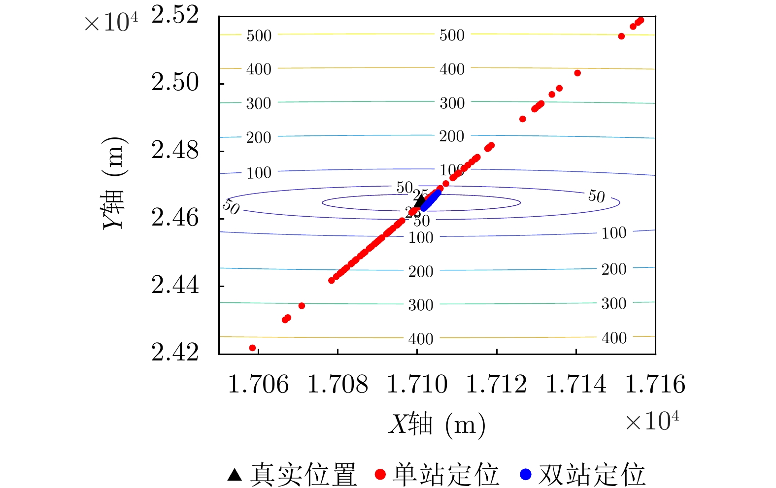 In locating ground moving radiating sources, traditional passive positioning methods, such as Direction of Arrival (DOA), often rely on long-term observation and filtering, resulting in low positioning efficiency. Existing synthetic aperture–based positioning methods are primarily designed for stationary radiating sources, making high-precision positioning of moving sources difficult. To address this limitation, this paper proposes synthetic aperture–based fast positioning and velocity estimation methods for moving radiating sources under single- and dual-station positioning systems, respectively. The proposed methods establish an instantaneous slant range model of the radiating source and derive the mapping relationship between the positioning parameters (position and velocity) and the imaging parameters. Specifically, in the single-station scenario, the traditional second-order slant range model is extended to third order, and a third-order chirp rate is introduced to supplement the degrees of freedom, thereby enabling simultaneous estimation of position and velocity. In the dual-station scenario, an additional observation station is used to introduce two new imaging parameters, thereby further improving the rapidity and accuracy of positioning. To address the multi-solution problem inherent in the positioning equations, this paper proposes true-solution determination criteria for the single- and dual-station systems and presents an initialization strategy to ensure a unique solution for dual-station positioning. Furthermore, the paper analyzes how various factors affect the positioning accuracy of single- and dual-station models, compares the performance of the proposed single- and dual-station passive positioning models, and verifies the effectiveness of the proposed algorithms through simulations.