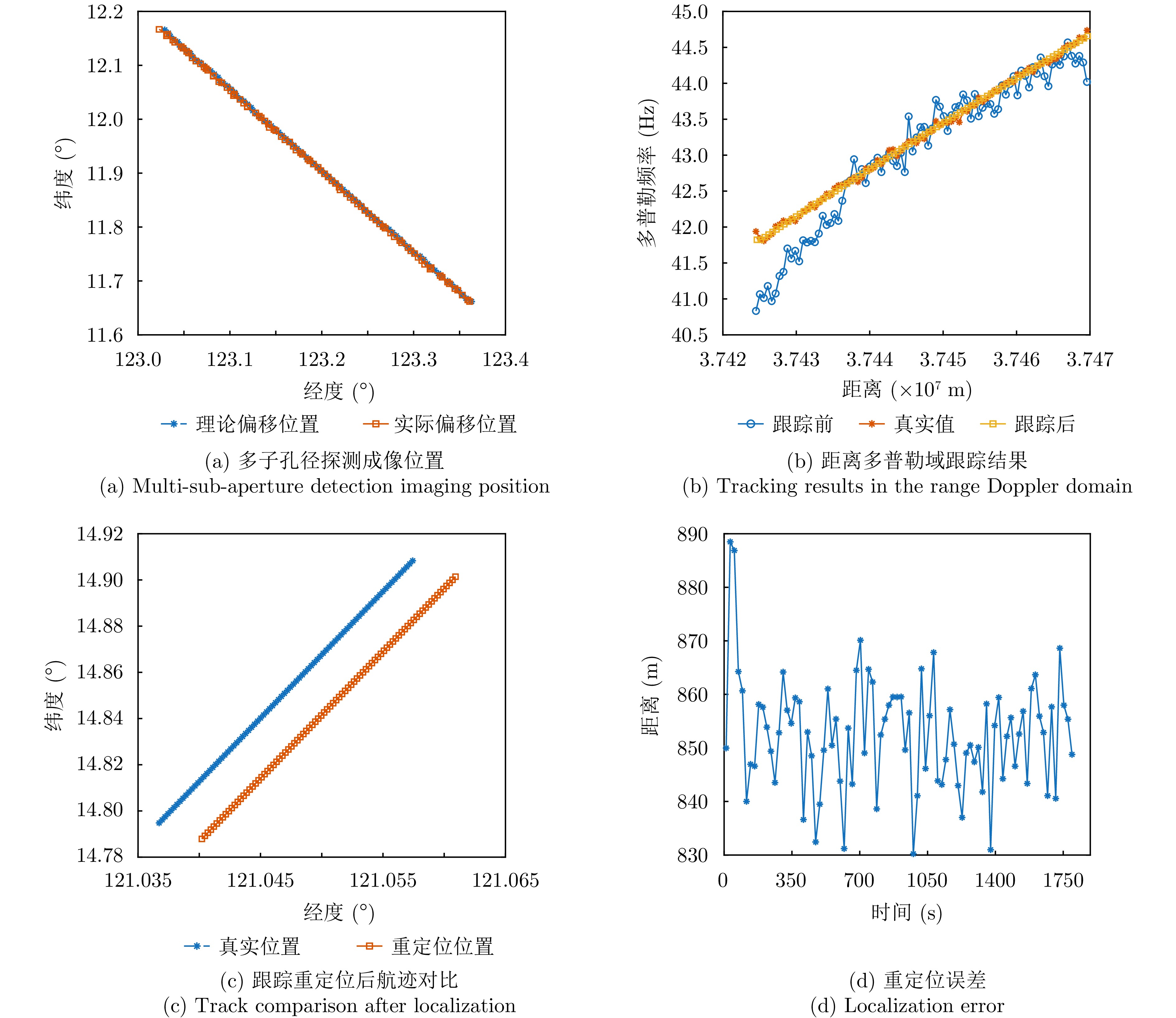 Geosynchronous Orbit (GEO) Synthetic Aperture Radar (SAR) detection ensures persistent, wide-area surveillance. However, this ship-detection method faces significant technical challenges, such as imaging defocusing, low Signal-to-Clutter Ratio (SCR), and large position offsets, due to the long detection distance, long synthetic aperture time, clutter accumulation within a large field of view, and nonplanar observation geometry. To address these challenges, this paper proposes a novel integrated detection-tracking-localization framework for moving-ship targets in GEO SAR. First, a GEO SAR observation signal model is established for moving ships, after which their echo characteristics within the ultra-long synthetic aperture time are analyzed in depth. On this basis, the model realizes target-image detection and long-term tracking localization via optimal subaperture processing. Using an improved back-projection imaging algorithm tailored for moving ships, effective energy accumulation and focusing of noncooperative ships under low SCR are achieved within the aperture. In addition, the relationship between the offset position of moving targets and the Range-Doppler (RD) parameters under GEO SAR nonplanar geometric observation is obtained. Second, under the assumption of short-term uniform ship motion, a bidirectional smoothing filter is applied to track the multisubaperture detection results. The velocity estimation of moving ships is obtained from the long-term tracking results, and the relocation of moving ships is realized using the RD relationship between the offset position and the actual position. Finally, the proposed framework is validated using simulation data and on-orbit GEO SAR satellite test data.