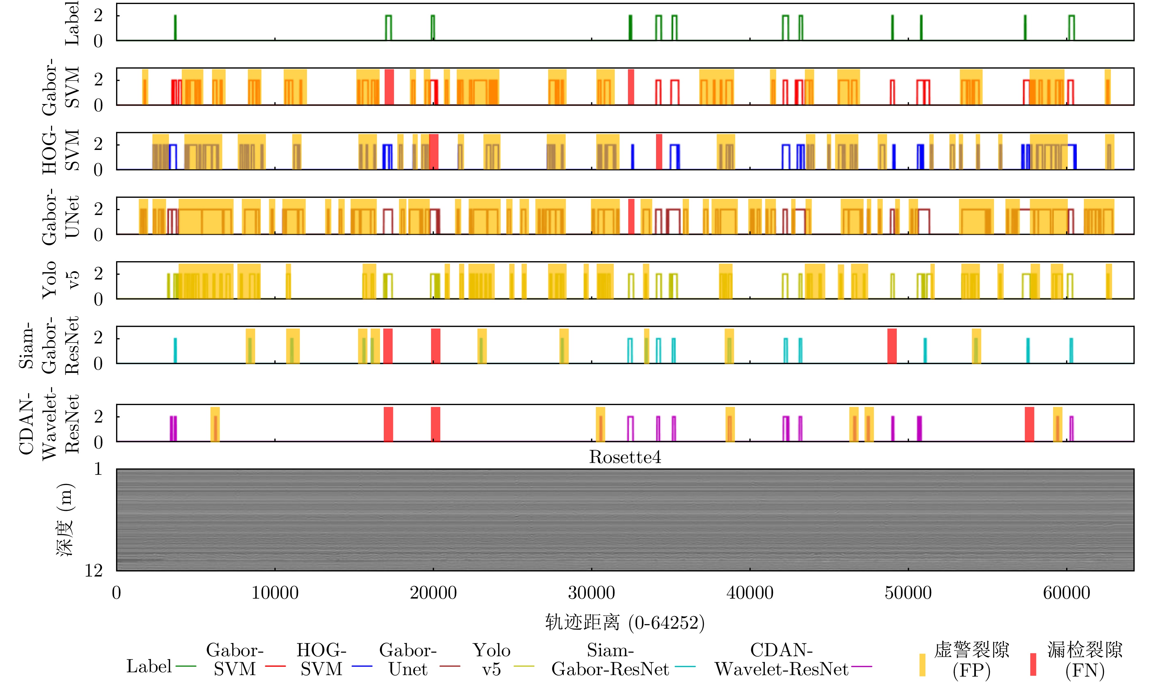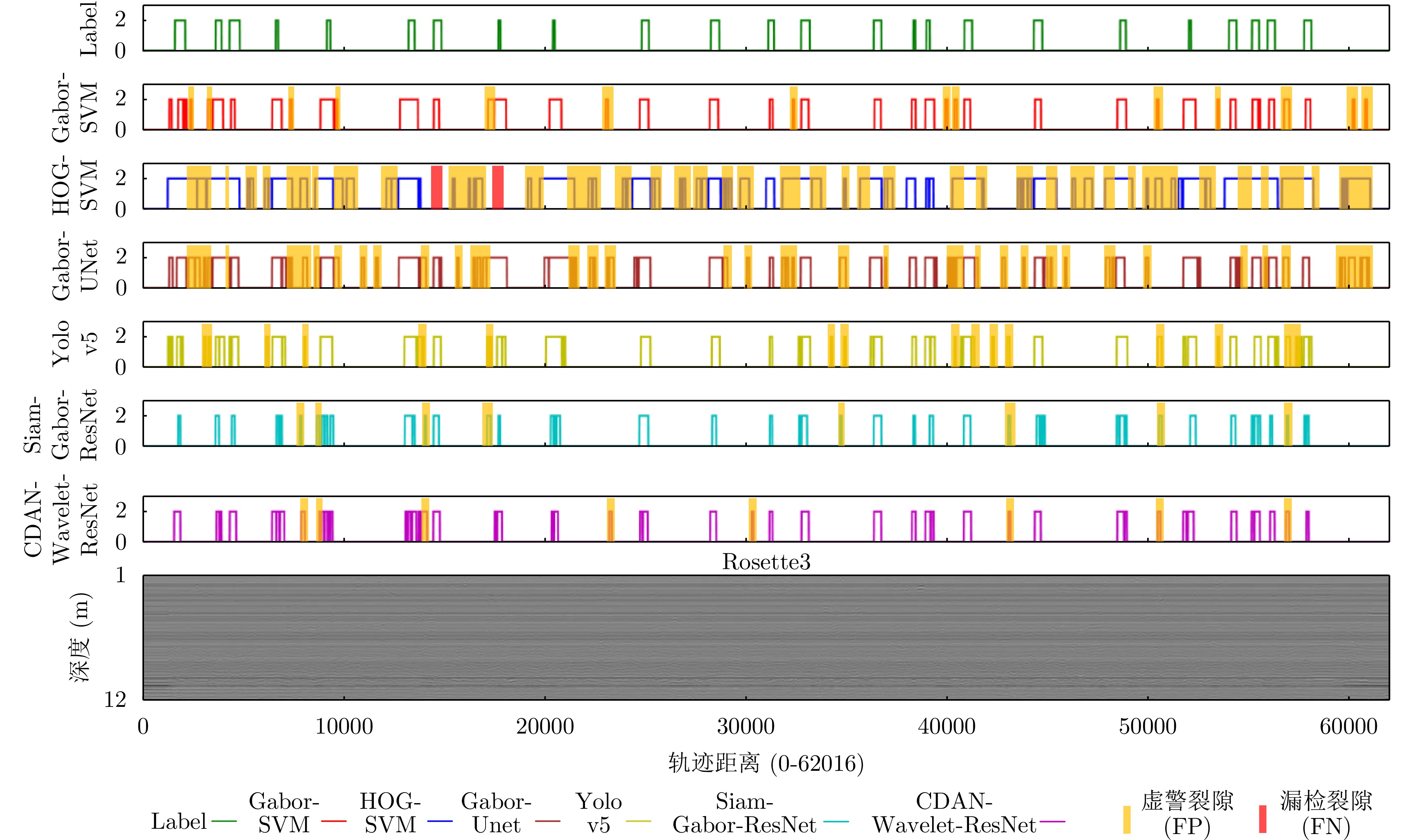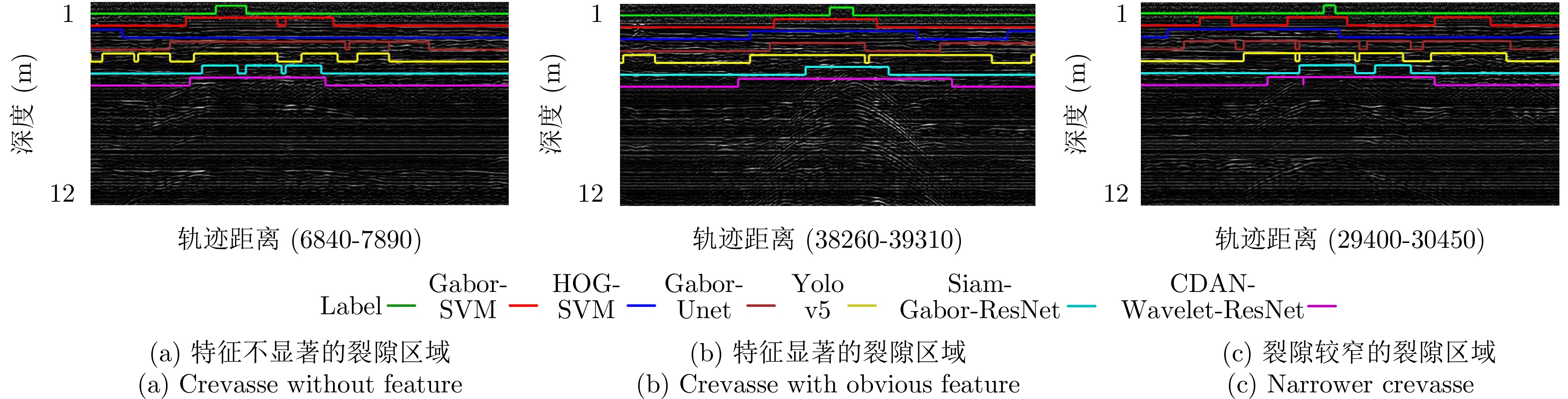 Crevasse detection using Ground-Penetrating Radar (GPR) is crucial for glacier and climate studies and for ensuring safety in glacial regions. To address challenges including large texture variability in crevasses in polar environments, high false-alarm rates, limited real-time performance, and poor generalization, this study proposes a domain-adversarial learning–based automatic crevasse detection method that balances high accuracy and real-time efficiency. Using GPR data acquired from diverse regions and complex scenarios, an adversarial learning mechanism is established between a feature extractor and a domain discriminator, enabling the method to maintain discriminative feature extraction while effectively reducing interdomain distribution discrepancies. This leads to cross-domain feature alignment, enhancing robustness and generalization across heterogeneous data sources. In the feature extraction stage, a wavelet-residual-network-based crevasse feature extractor is designed. By introducing a learnable multiscale wavelet convolution module into the first layer of the residual network, the model adaptively extracts multiscale crevasse features from GPR data, significantly enhancing the separability between crevasse regions and continuous snow layers in the feature space. Experiments were conducted on two GPR datasets: the 2015 McMurdo Shear Zone dataset from Antarctica and a Greenland dataset from the Arctic region. The experimental results demonstrate that the proposed model achieves an average detection accuracy of 95.70%, an F1-score of 95.50%, and a false-alarm rate of 1.87%, with an average inference time of 5.26 ms per sample, thereby meeting the requirements for real-time crevasse warning during field GPR acquisition. Overall, the proposed method achieves a favorable balance among high accuracy, low false-alarm rate, and real-time performance across multiscene and cross-regional GPR data, demonstrating its suitability for safety assurance during Antarctic expeditions and for glacier crevasse detection in polar research.