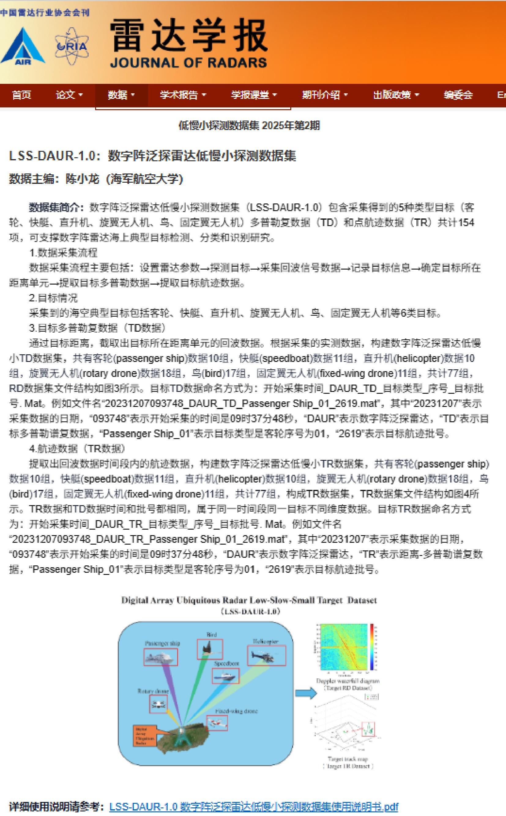 To address issues such as insufficient feature extraction, limited spatiotemporal correlation modeling, and poor classification performance in radar classification of Low, Slow, and Small (LSS) targets, this paper investigates on graph network-based feature extraction and classification methods. First, focusing on digital array ubiquitous radar, a radar detection dataset for LSS targets, named LSS-DAUR-1.0, is constructed; it contains Doppler and track data for six types of targets: Passenger ships, speedboats, helicopters, rotor drones, birds, and fixed-wing drones. Second, based on this dataset, the multidomain and multidimensional characteristics of the targets are analyzed, and the complementarity between Doppler and physical motion features is verified through correlation and cosine similarity analyses. On this basis, a Graph Convolutional Network with Dynamic Graph Construction (DG-GCN) classification method fusing dual features is proposed. An adaptive window adjustment, a hybrid attenuation function, and a dynamic threshold mechanism are designed to construct an adaptive dynamic graph based on spatiotemporal correlation. Combined with graph convolution-based feature learning and classification modules, this approach achieves refined classification of low, slow, and small targets. Validation on the LSS-DAUR-1.0 dataset shows that the DG-GCN achieves 99.66% classification accuracy, which is 6.78% and 17.97% higher than that of ResNet and Transformer models, respectively. The total processing time is only 4.98 ms, which is more than 80% lower than that of the aforementioned comparison models. Hence, the DG-GCN achieves both high accuracy and efficiency. In addition, noise environment tests show good robustness. Ablation experiments verify that the dynamic edge weight mechanism compensates for the lack of spatial feature correlation in purely temporal connections and improves the model’s generalizability.