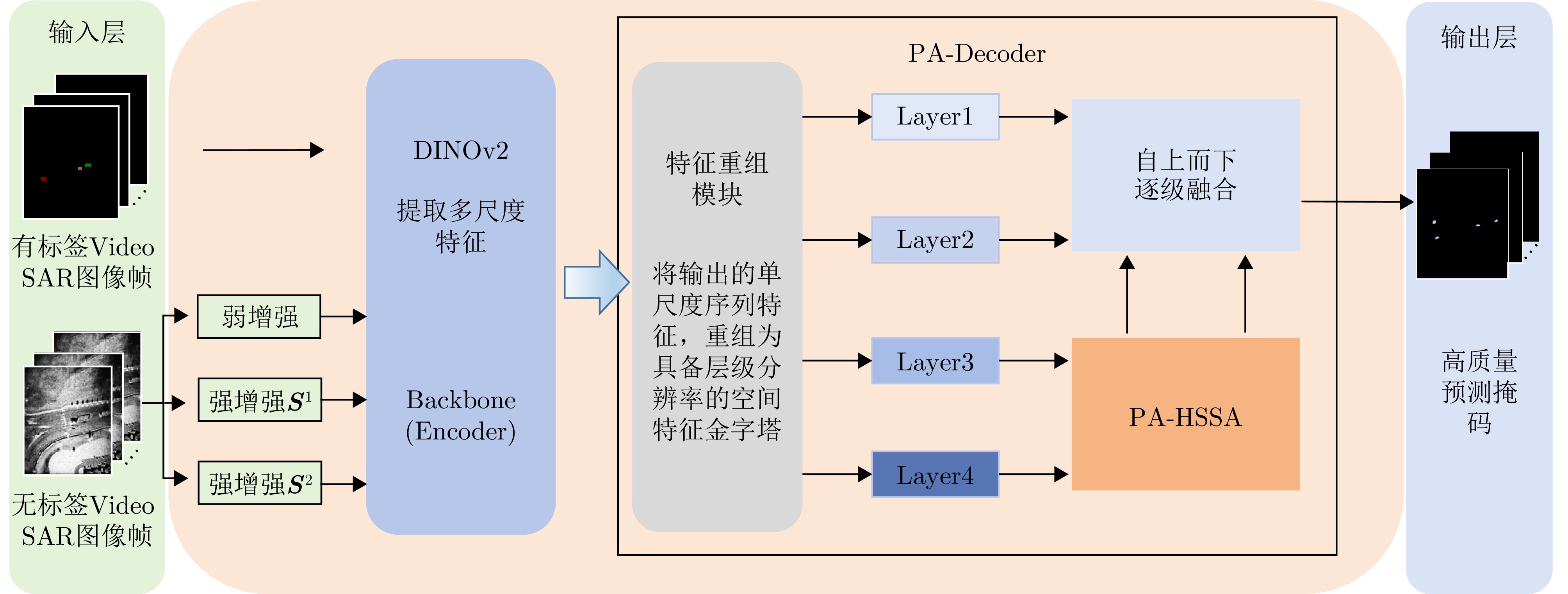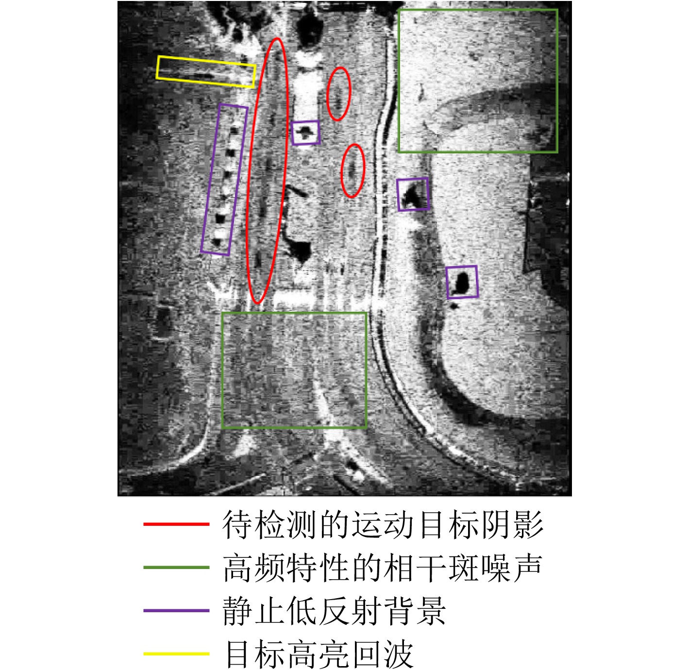 Moving target shadow tracking in Video Synthetic Aperture Radar (Video SAR) faces significant challenges, including strong speckle noise interference, substantial nonrigid target deformation, and a scarcity of supervised training samples. To address these issues, we propose a semi-supervised tracking method that integrates physics-aware spectral spatial attention and kinematic constraints. For the detection stage, we construct a semi-supervised feature enhancement network based on an improved UniMatchV2 architecture. Specifically, to account for the spectral spatial characteristics of SAR images, a Physics-Aware Hybrid Spectral Spatial Attention (PA-HSSA) module is designed and embedded into the high-level feature space of the decoder. This module utilizes its spectral branch to globally suppress wideband high-grequercy interference and its spatial branch to locally anchor the shadow’s geometric structure. A dynamic weight generator is introduced to adaptively fuse the dual-domain features, thereby generating high-quality prediction masks under extremely low annotation ratios. For the tracking stage, we propose a spatiotemporal association framework tailored for semi-supervised uncertainty. The framework includes a kinematic prior gate based on a Linear Gaussian State Space Model (LGSSM) to smooth and correct jittery detection edges. Subsequently, a multidimensional cost matrix integrating kinematic residuals and geometric consistency is built to resolve association ambiguities caused by target maneuverability and deformation. Experimental results on measured data from Sandia National Laboratories (SNL) demonstrate that the proposed method achieves a Multiple Object Tracking Accuracy (MOTA) of 64.19% using only 1/32 of the labeled data, outperforming baseline methods by 6.73%. This method effectively addresses the challenge of robustly tracking weak and small shadows in heavily cluttered backgrounds.