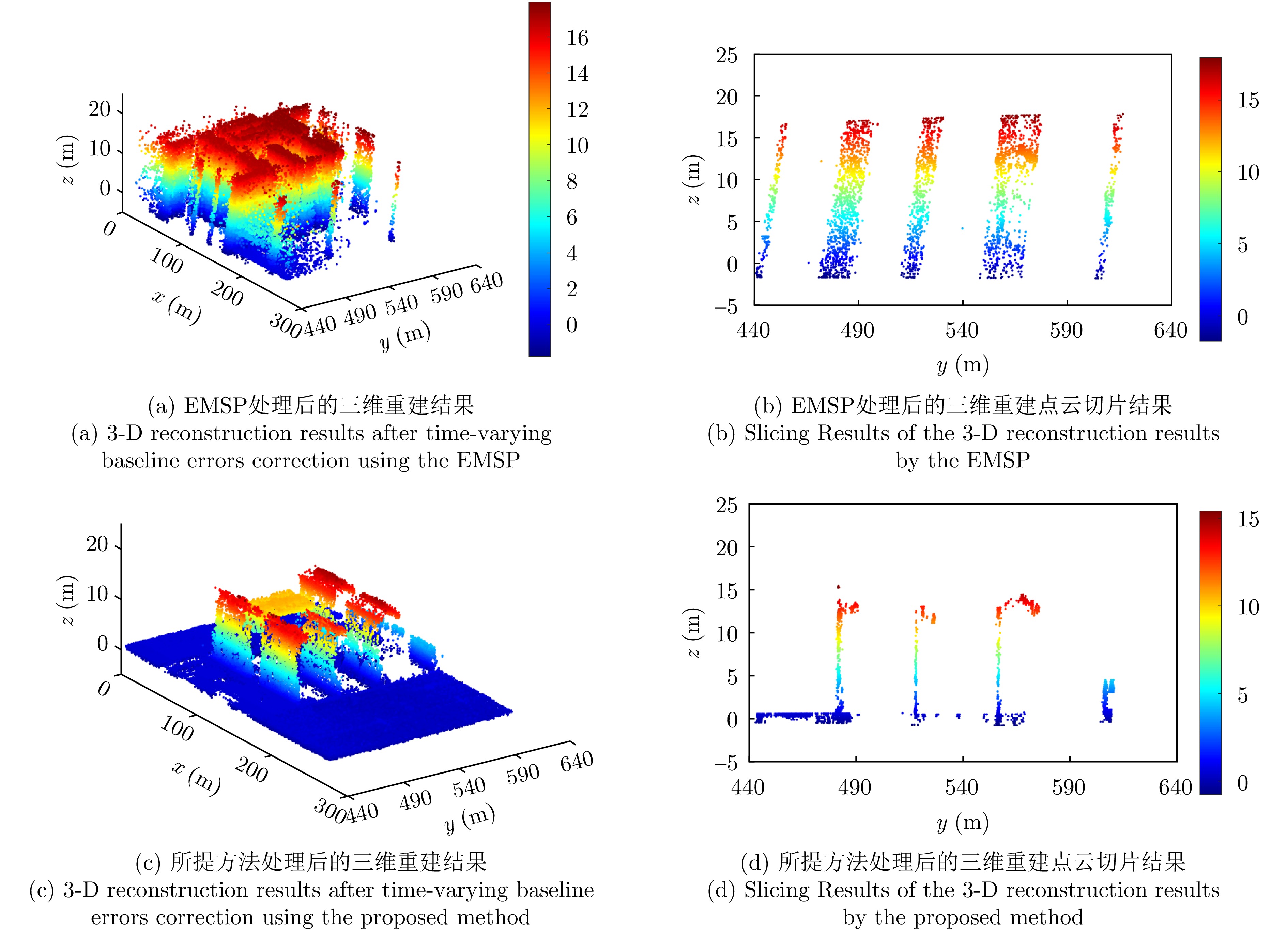 Small unmanned aerial vehicle (UAV)–borne distributed tomographic synthetic aperture radar (TomoSAR) systems exhibit remarkable residual time-varying baseline errors due to the limited precision of the position and orientation system on small UAV platforms. These errors critically degrade the performance of three-dimensional (3D) target reconstruction. Compared with airborne repeat-pass 3D synthetic aperture radar (SAR), distributed TomoSAR mounted on small UAVs imposes stricter compensation accuracy requirements for time-varying baseline errors because of the altitude constraints of the carrying platform. Under the conditions of low signal-to-noise ratio and substantial time-varying baseline errors, existing estimation methods often fail to provide stable and reliable results. In this paper, a two-step time-varying baseline error estimation method based on image azimuth displacement is proposed. The method sequentially estimates the low-frequency component through the co-registration of the master and slave images and the high-frequency component using a multisquint algorithm. Iterative refinement is applied to enhance estimation accuracy. The experimental results obtained from real C-band small UAV-borne distributed TomoSAR data demonstrate that, compared with the enhanced multisquint processing method, the proposed method considerably reduces the root mean square of differential interferometric phases across most channels, thereby effectively improving interchannel coherence. In addition, the elevation-direction standard deviation of the reconstructed point cloud is reduced from 5.16 to 1.33 m, and the height reconstruction error of building targets is less than 0.5 m, validating the effectiveness and superiority of the proposed method.