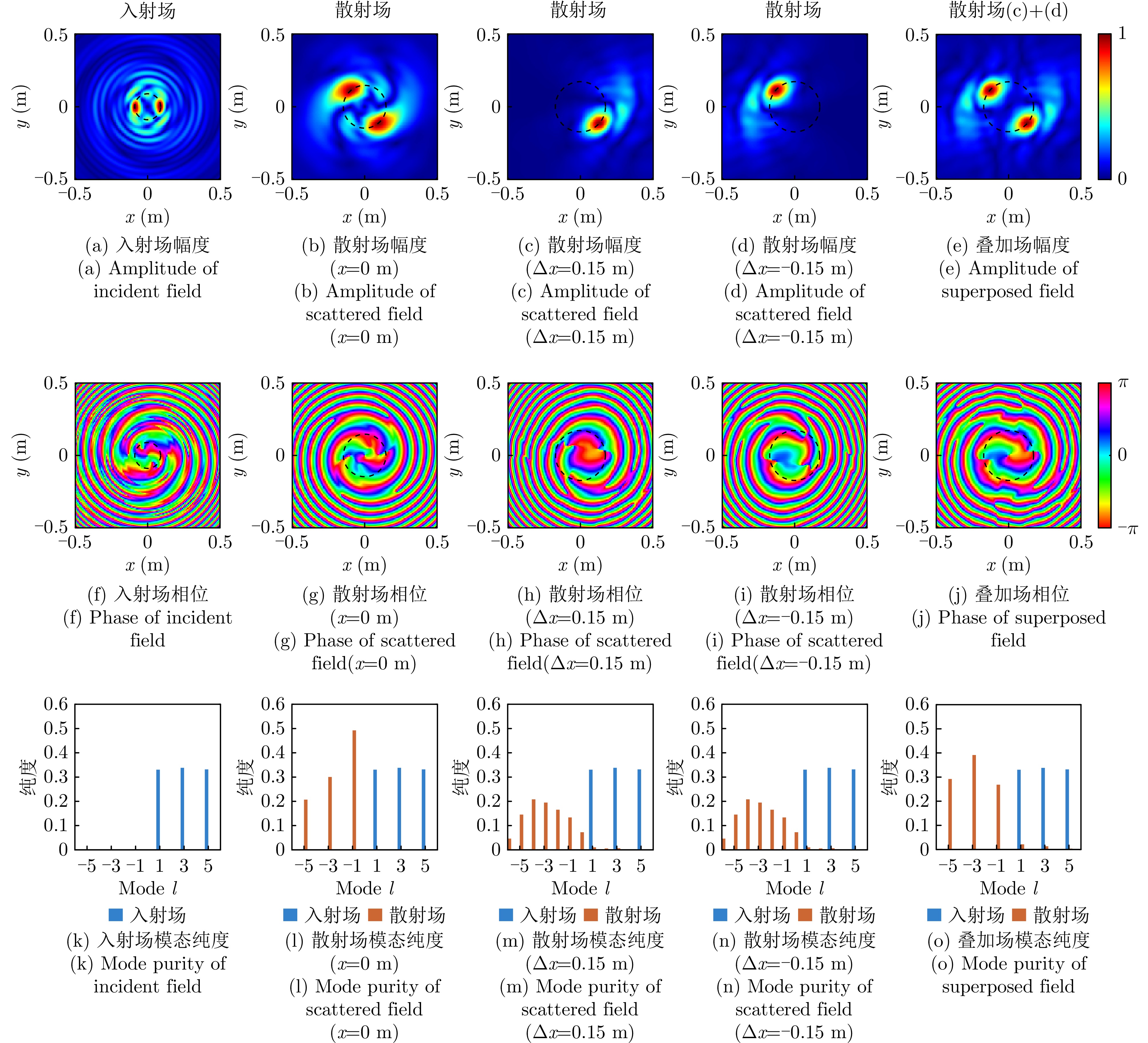 Multimode vortex electromagnetic waves, which carry mutually orthogonal Orbital Angular Momentum (OAM), have attracted extensive research interest in communications and radar systems due to their unique amplitude and phase characteristics. This study investigates the near-field scattering characteristics of metallic plate targets under the incidence of multimode vortex electromagnetic waves. First, an incidence model for multimode vortex waves is constructed based on annular aperture radiation theory, and the near-field scattering field of a perfect electric conductor circular plate is derived using the physical optics method. Subsequently, the effects of target longitudinal distance, transverse displacement, geometric features, and mode combination parameters (initial mode, mode interval, and number of modes) on the scattering characteristics are quantitatively analyzed, and the multimode near-field OAM radar cross section is calculated. The research results demonstrate that compared to plane wave incidence, the coherent superposition of multimode beams provides richer spatial feature information. The target’s efficiency in intercepting high-order mode energy significantly decreases with increasing propagation distance. Although the transverse displacement of the target induces substantial mode spectrum crosstalk, the original scattering features can be effectively reconstructed through vector superposition of scattering fields at symmetrical positions by exploiting spatial complementarity. Furthermore, the geometric shape of the target produces fine modulation on the scattering field when its size is comparable to that of the main lobe, and this modulation effect gradually diminishes as the target size increases. The theoretical calculations closely align with the simulation results, showing a main mode purity deviation of less than 0.0207 and a root mean square error of 0.054 in the scattering field amplitude distribution, thus verifying the accuracy of the theory. This study reveals the interaction mechanism between multimode vortex waves and targets, providing theoretical support for target recognition and imaging system design in future multimode vortex radar systems.