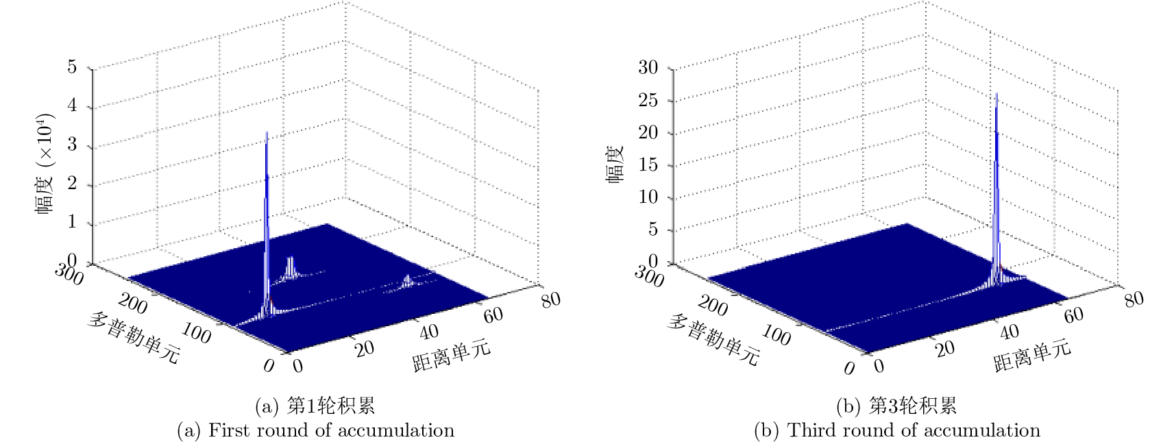 进一步,关于k作相参积累可得距离-多普勒谱: