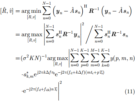 将其代入式(9),则距离和速度参数的最大似然估计为: